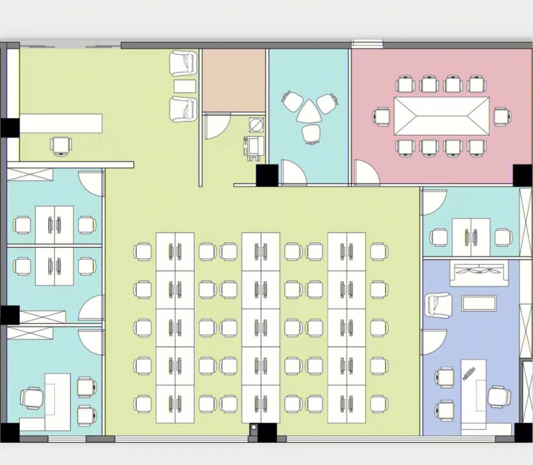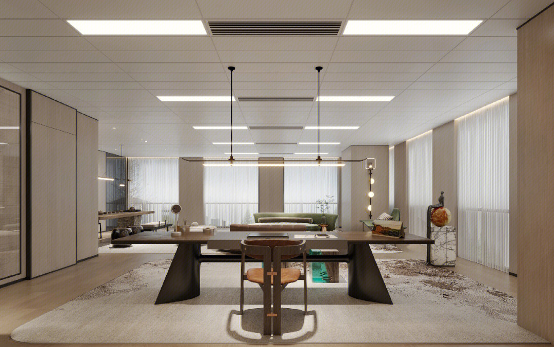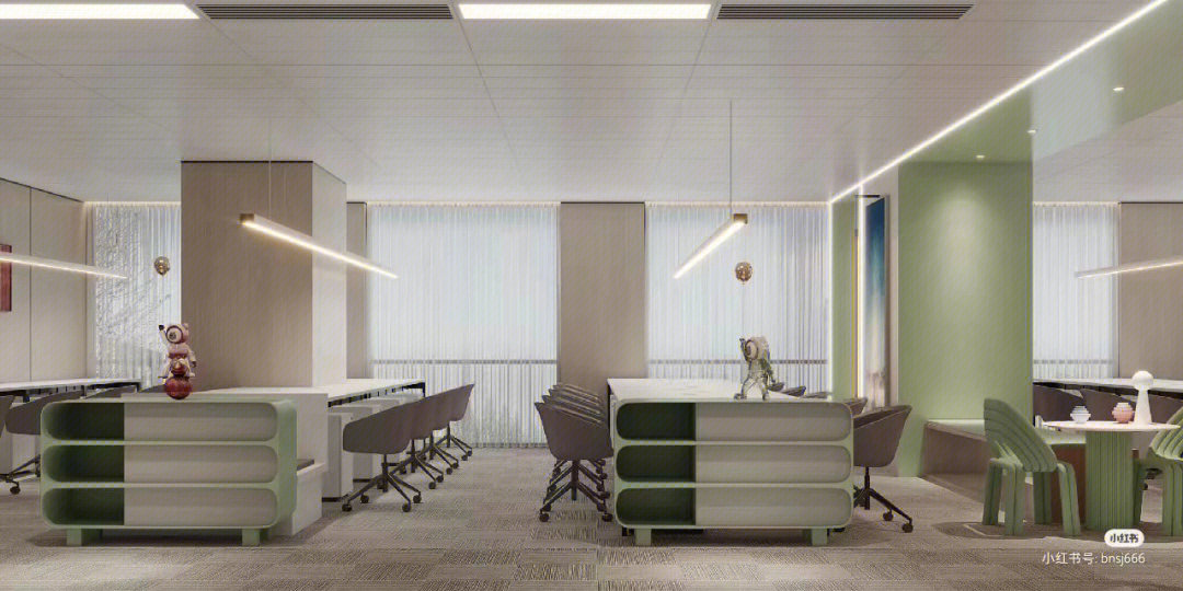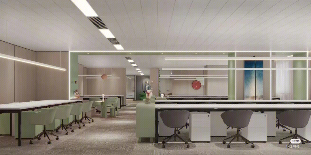 开放式的茶水间,引申到更为广阔的休闲区,风格统一的原木色系,环柱而设的收纳柜与弧形卡座的设计,柔化了整个空间。不仅增加了空间的收纳功能,还可以展示企业文化。