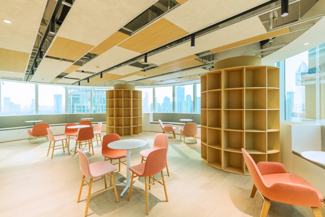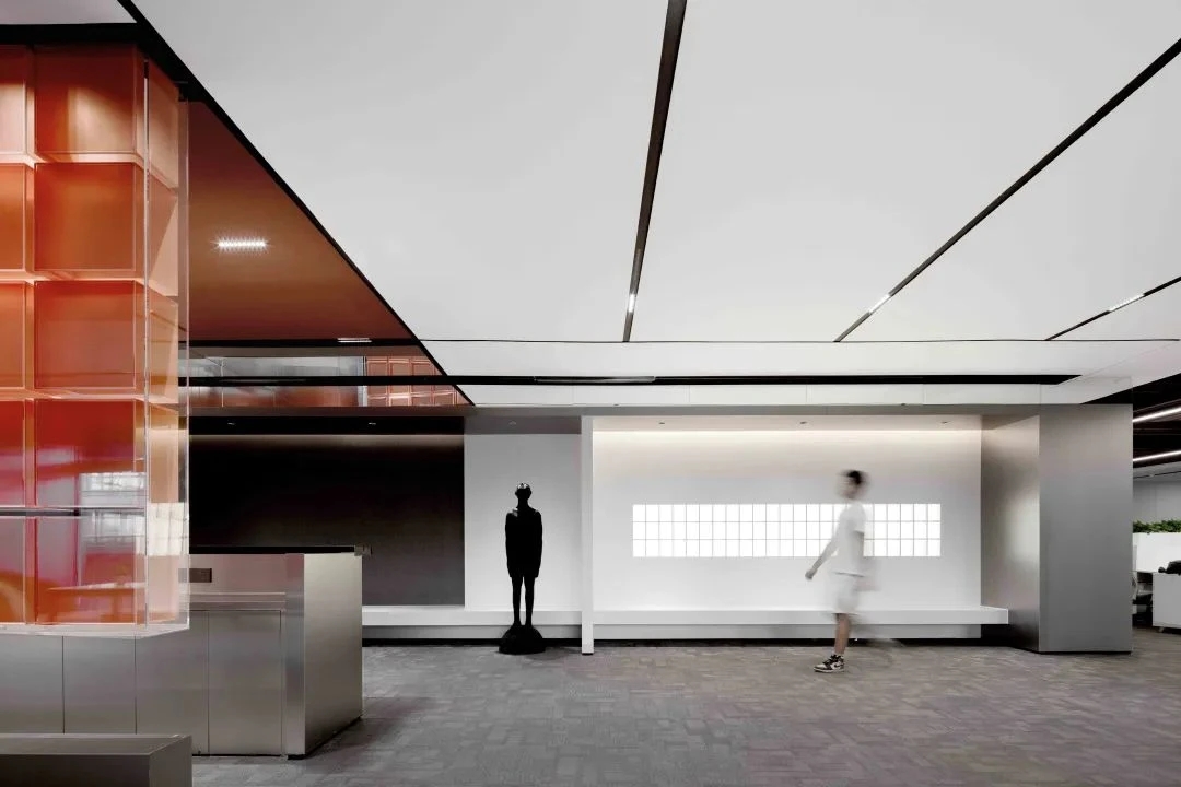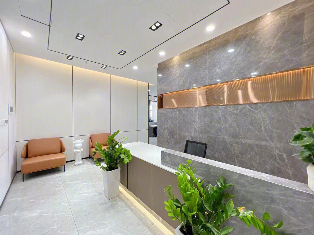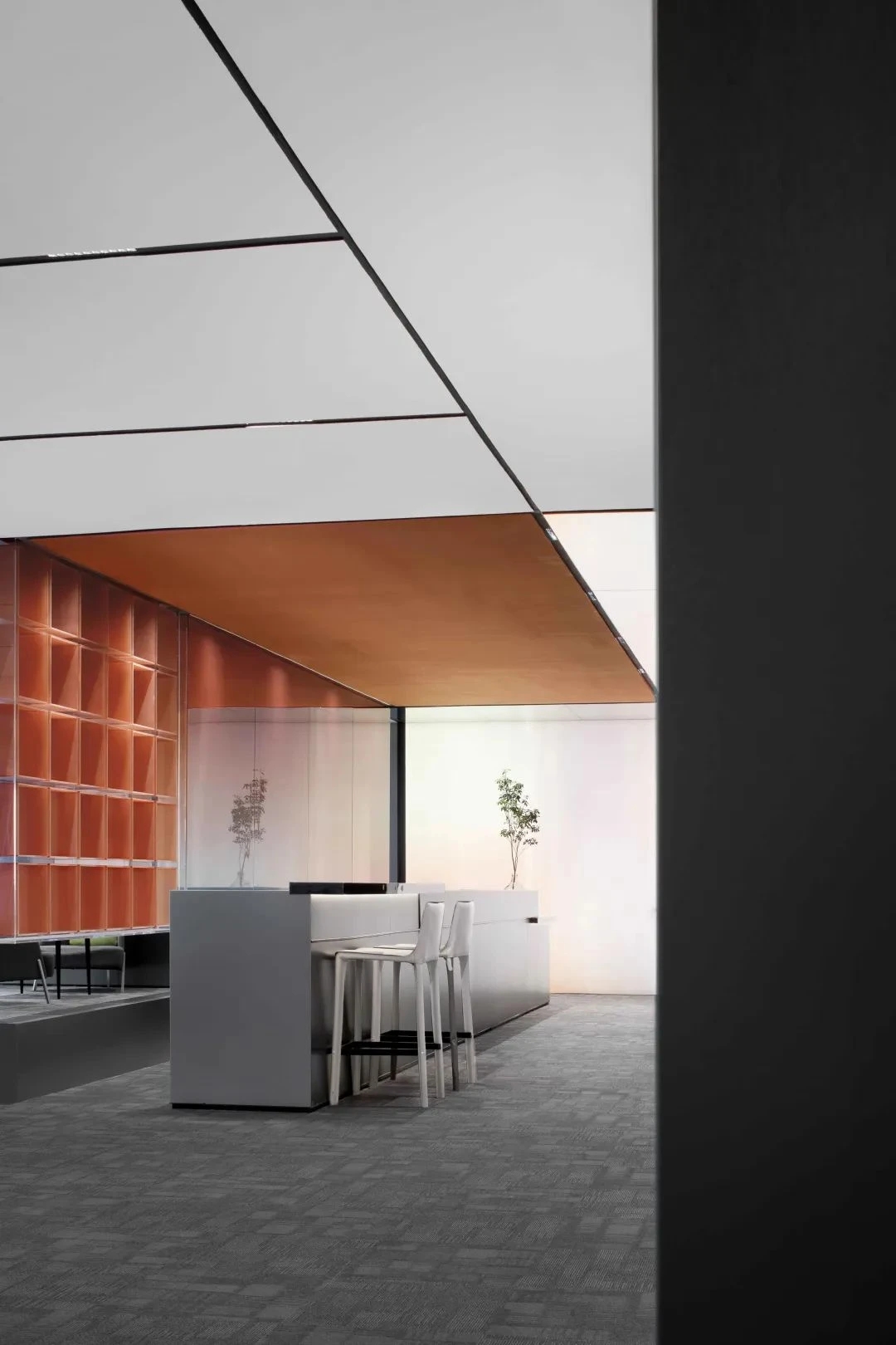 设计打破传统办公色彩,接待台采取亮色作为空间主色调,突出新时代氛围的同时,感受独特的办公体验与多元化的社交生活场景。