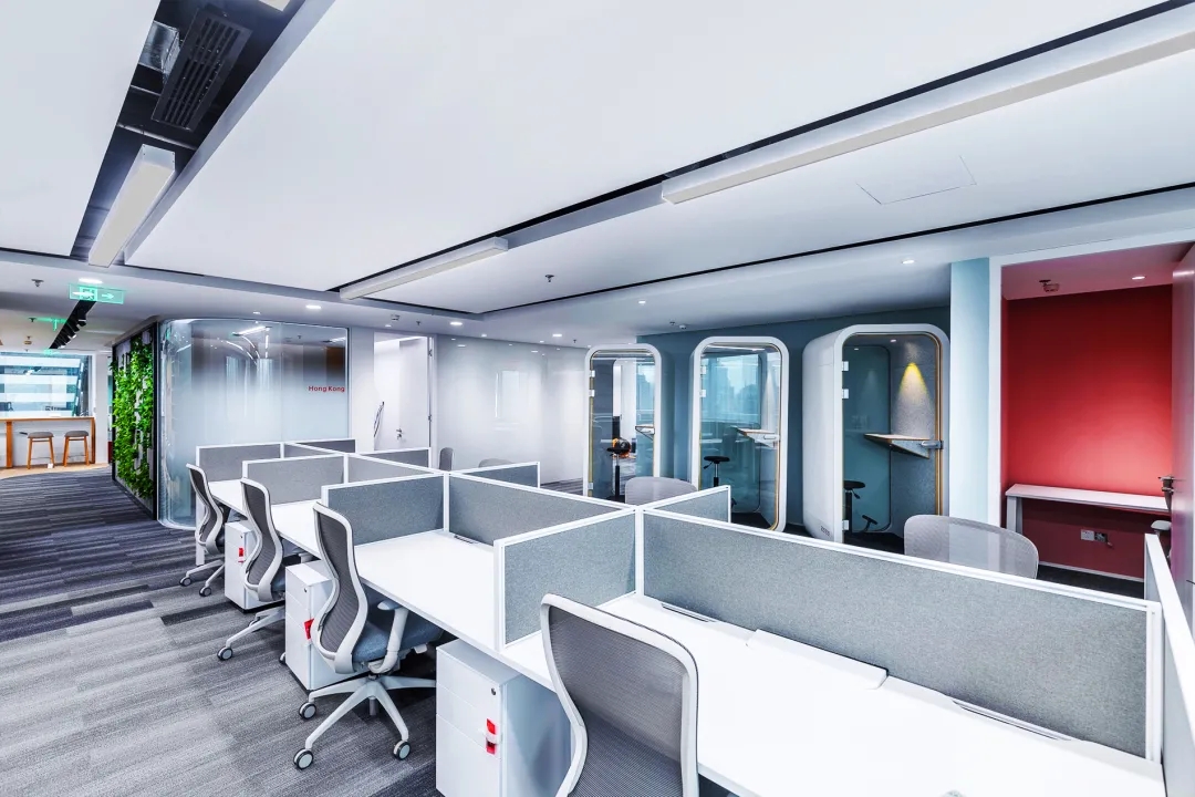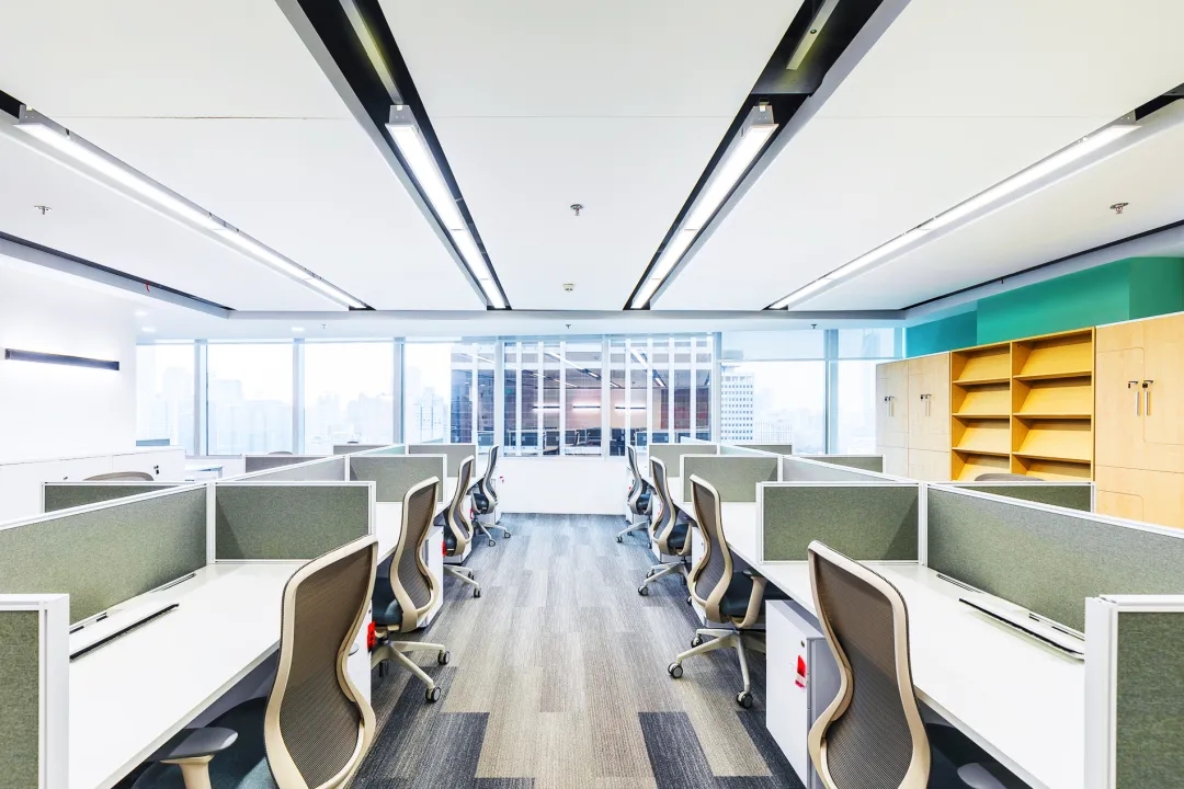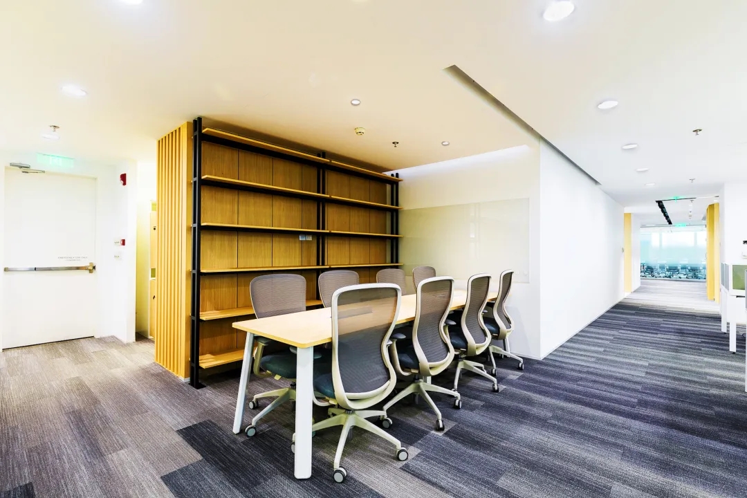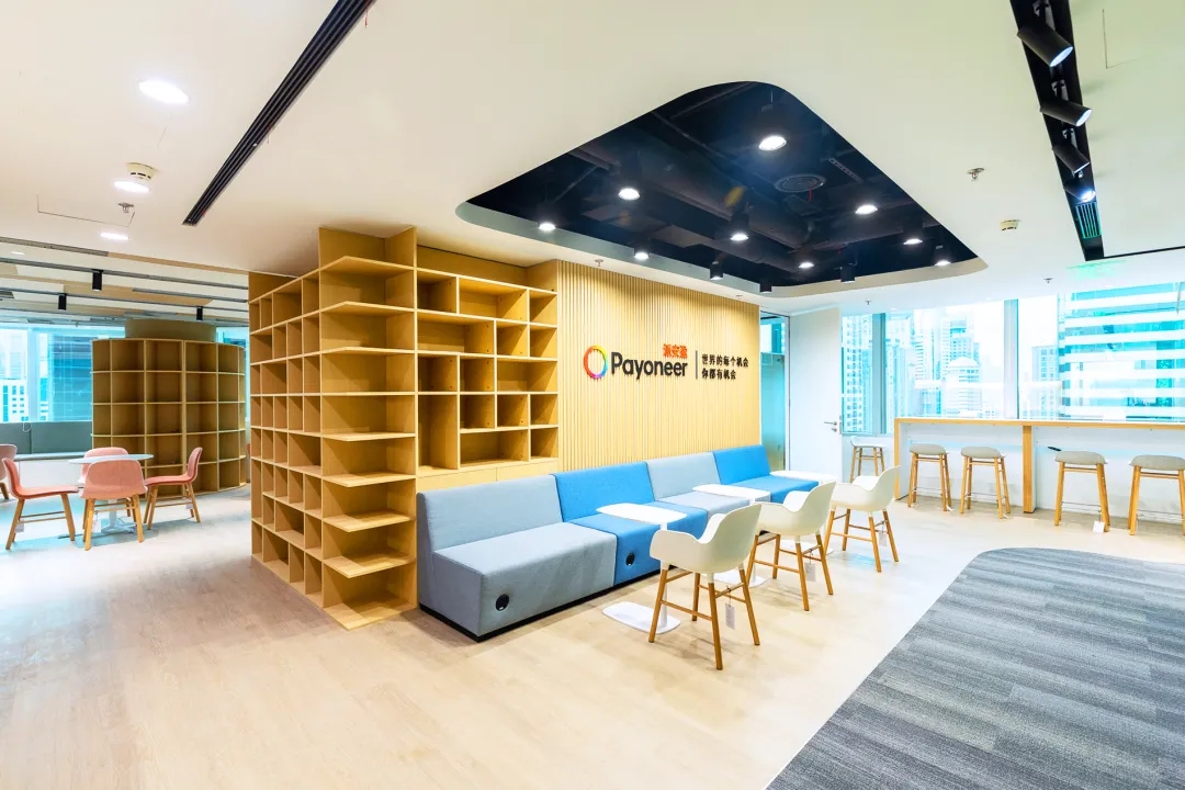 设计打破传统办公色彩,接待台采取亮色作为空间主色调,突出新时代氛围的同时,感受独特的办公体验与多元化的社交生活场景。