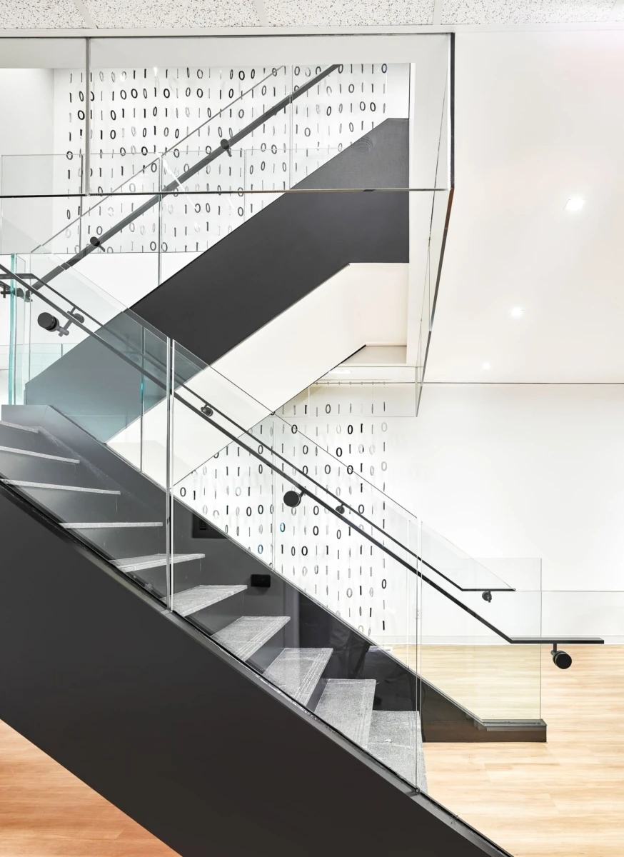 为所有工作人员提供了新的工作站,低矮的面板使自然光线和不间断的视线贯穿整个办公室。一个相互连接的楼梯连接了这个空间的两层,它拥有独特的照明功能。完成的空间是明亮的,反映了Eckler品牌。自然光线笼罩在北约克的位置和整个空间的独特功能,如这个由计算器制成的Eckler标志,为他们的团队提供了一个有趣和欢迎的空间。