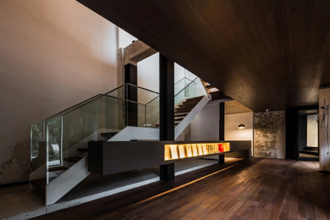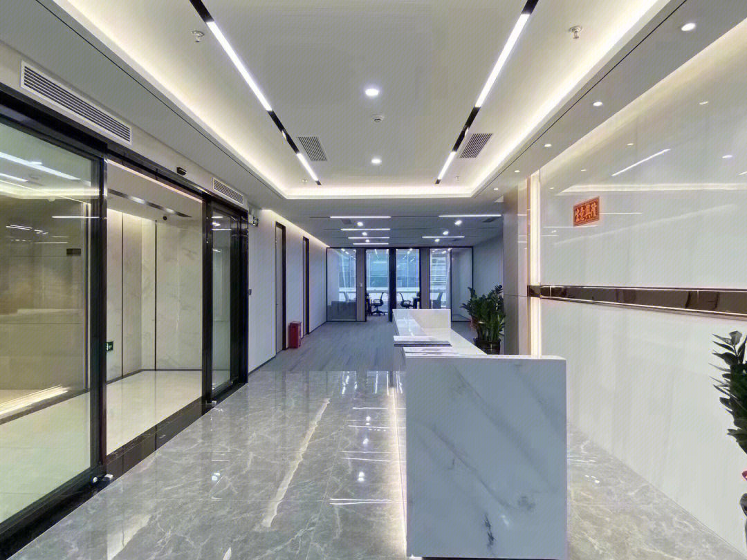 地面、墙面、天花上均以条形LED灯带勾勒,形成强烈的空间进深感、结构性的视觉初印象。