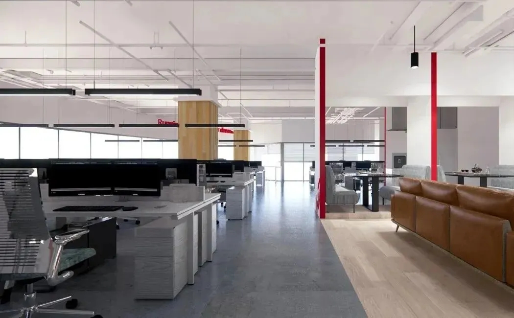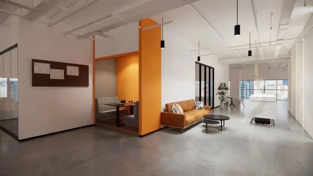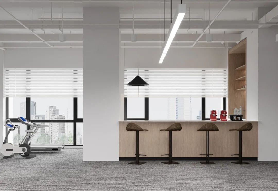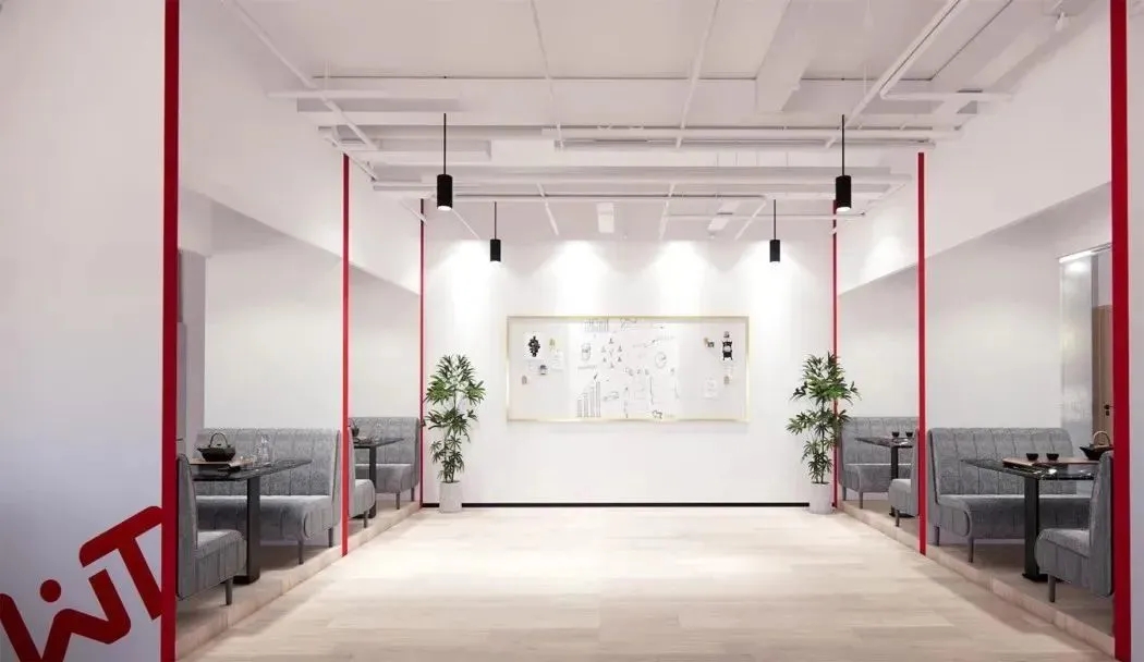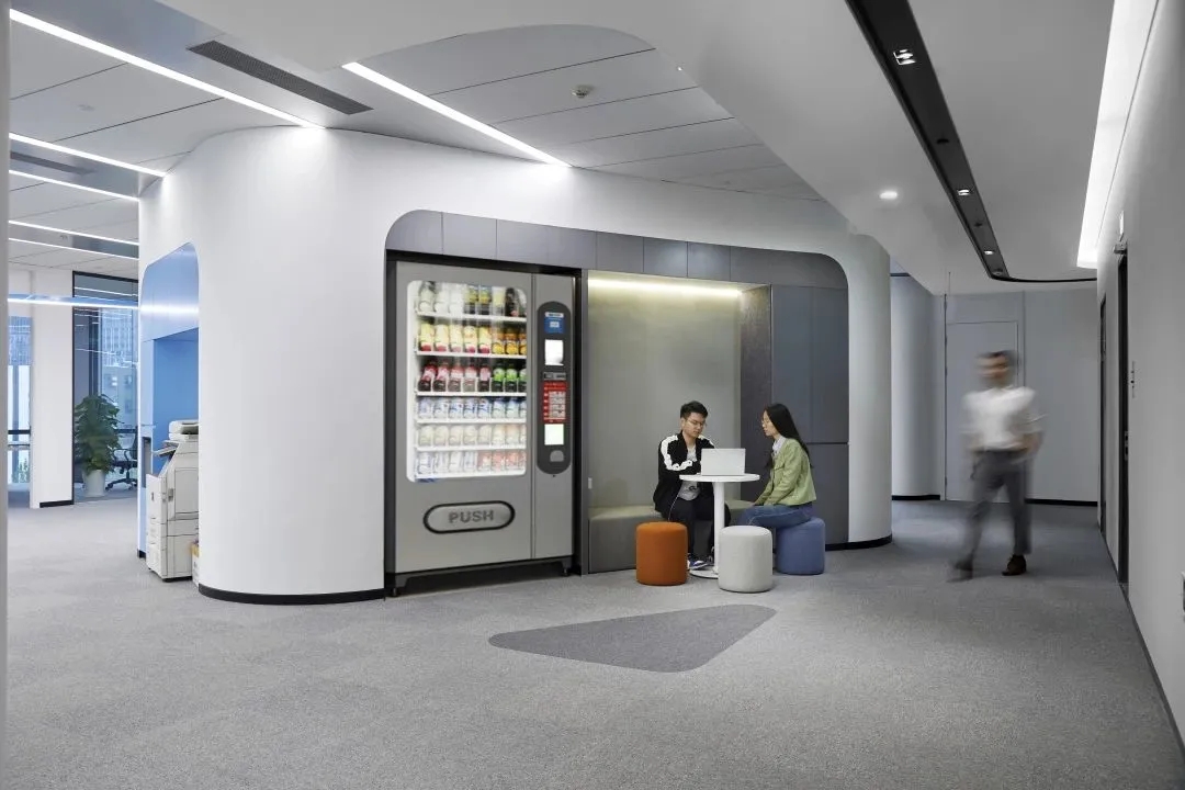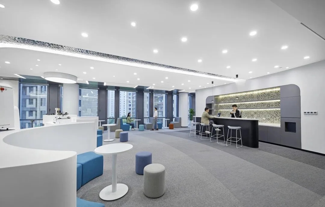 相对于空间的隐私性,甲方更希望能够随时兼顾到企业员工的工作状态。因此设计师从功能性的角度考虑,选用雾化玻璃作为隔断,既保证了空间的隐私性,又让使用者对空间拥有了更灵活的掌控感。