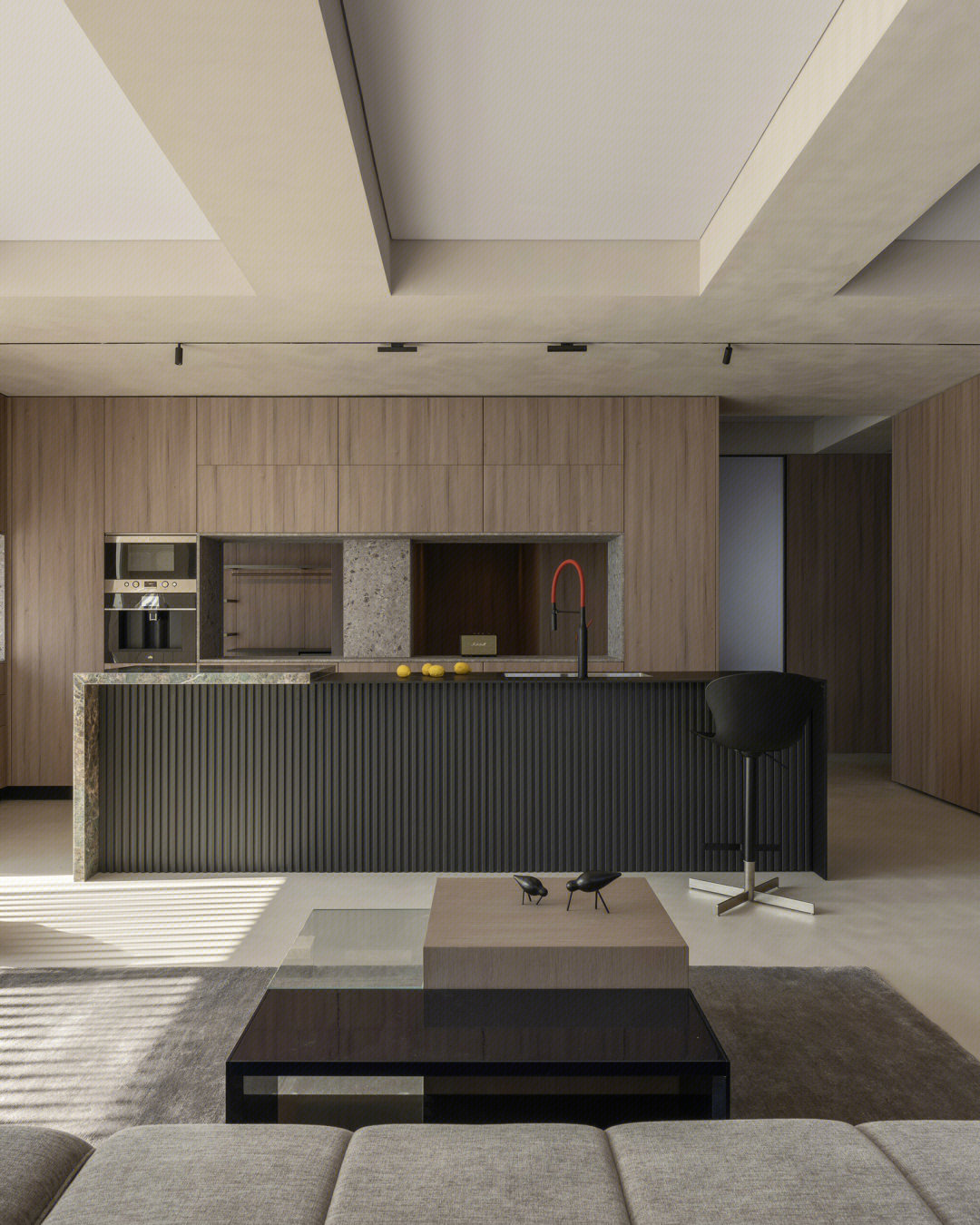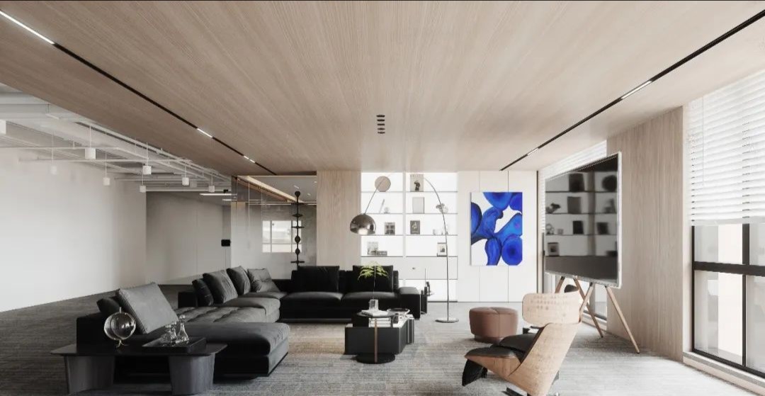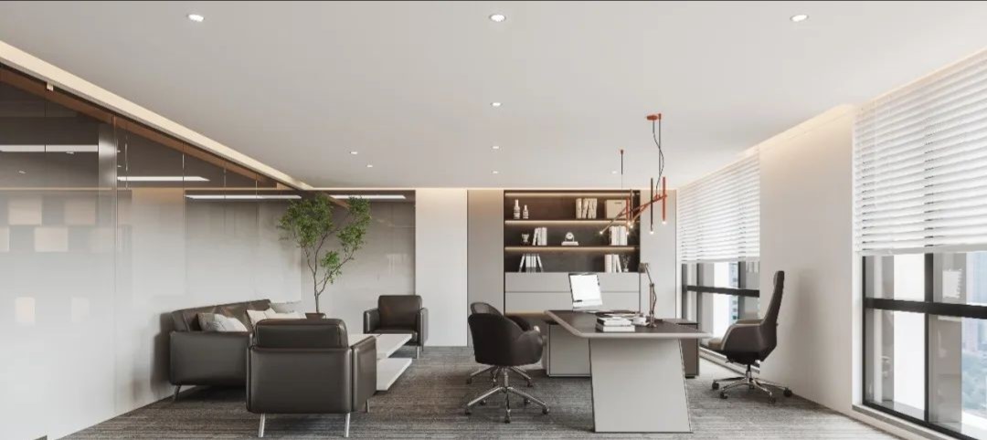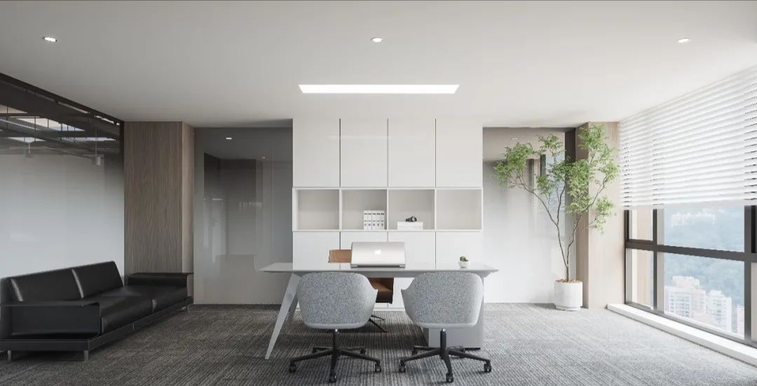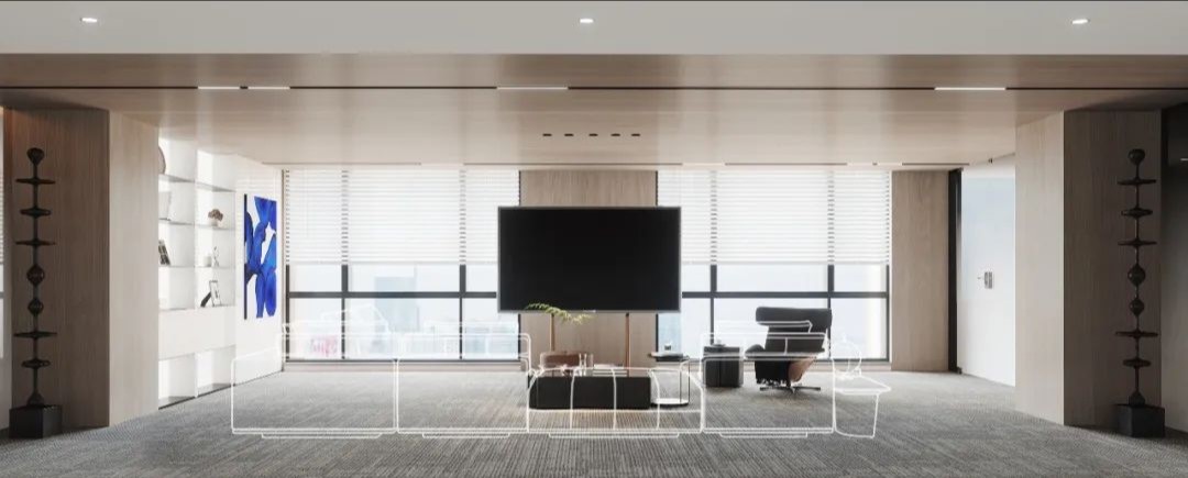 在总经理办公室的塑造中,设计师继续强调“横宽比”。空间内部采用了现代简约的开间布局,并将不同的装饰材料的组合衔接,使空间呈现出张弛有度且层次分明的艺术的办公氛围。