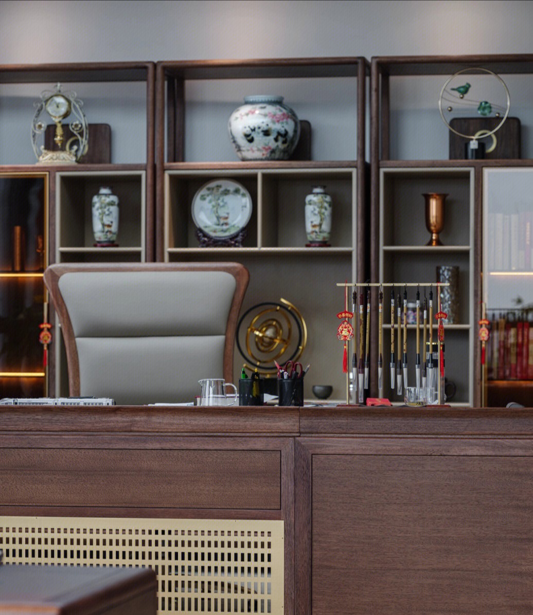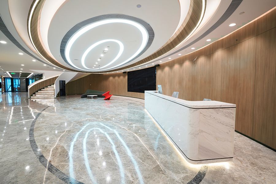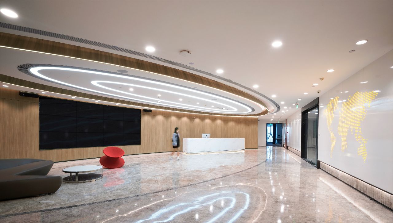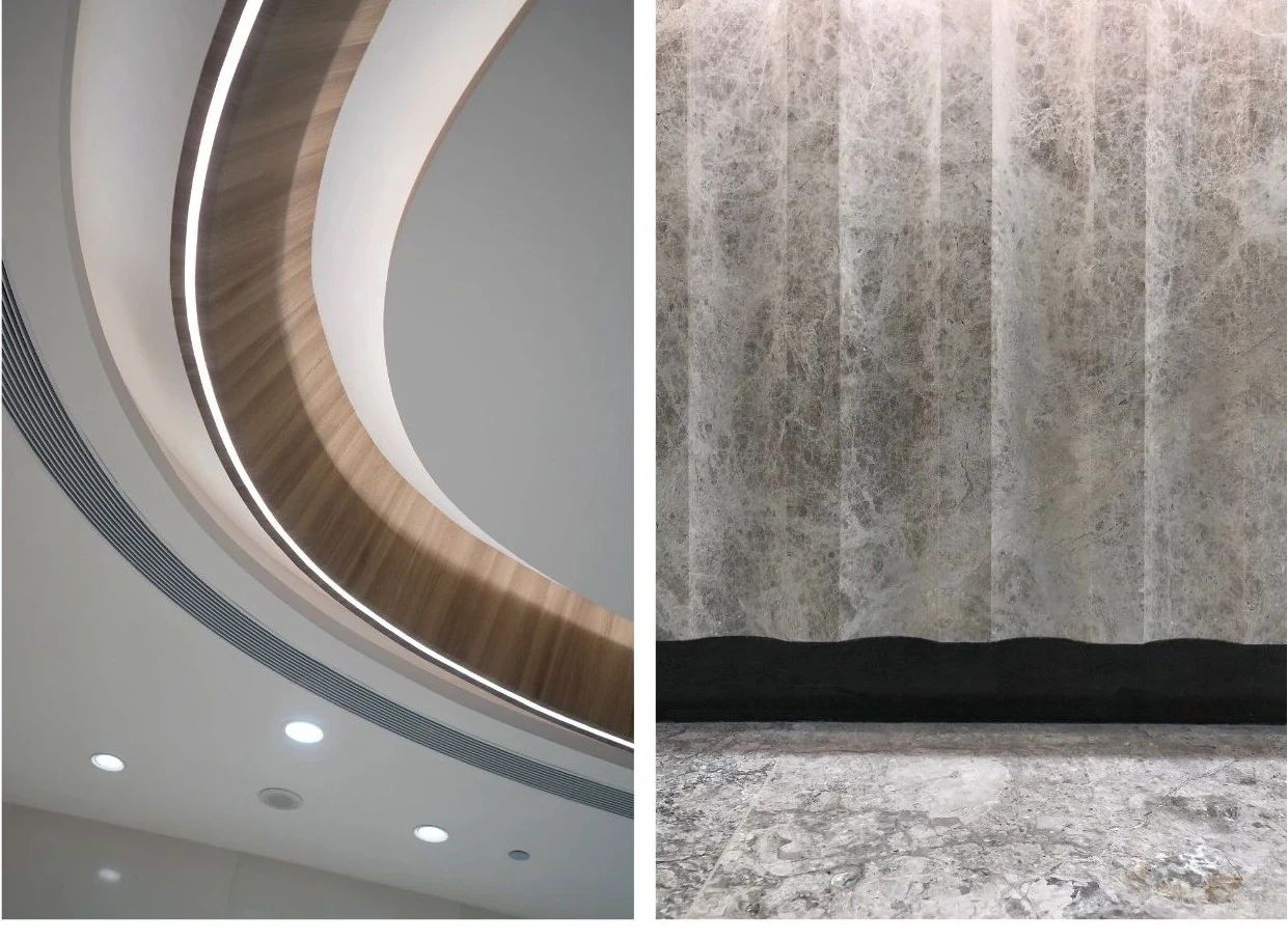 传统的律所给人一种严肃、古板的感觉,正因如此,我们在大厅以太极为灵感,设置了旋转楼梯,以一种柔和的线条拉近了律所给我们的一种距离感,让两层空间有了延伸,交叠呼应,营造出了多维的视觉效果,同时打破对办公室的刻板印象,拥有宽敞开阔的待客区域,层次、纹理、美感、功能性、丰富而厚重.
