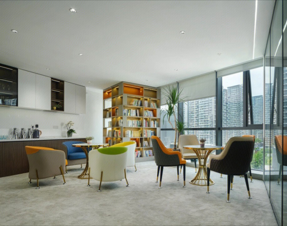 满足从接待、会议到培训交流等多元化的休闲功能;容开放与隐秘,变无序为有机,创造一个既提供员工专享私密空间又向公众开放的沙龙区.