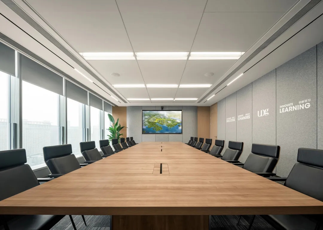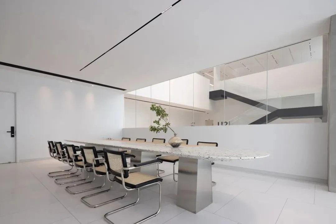 蓝色象征沉静运用在了会议空间;红色象征激情则运用于交流空间;黄色象征开朗与创意脑暴空间与之相应,而使人放松的绿色则用于休憩空间,在既定的空间中色彩的运用也显得尤为重要。