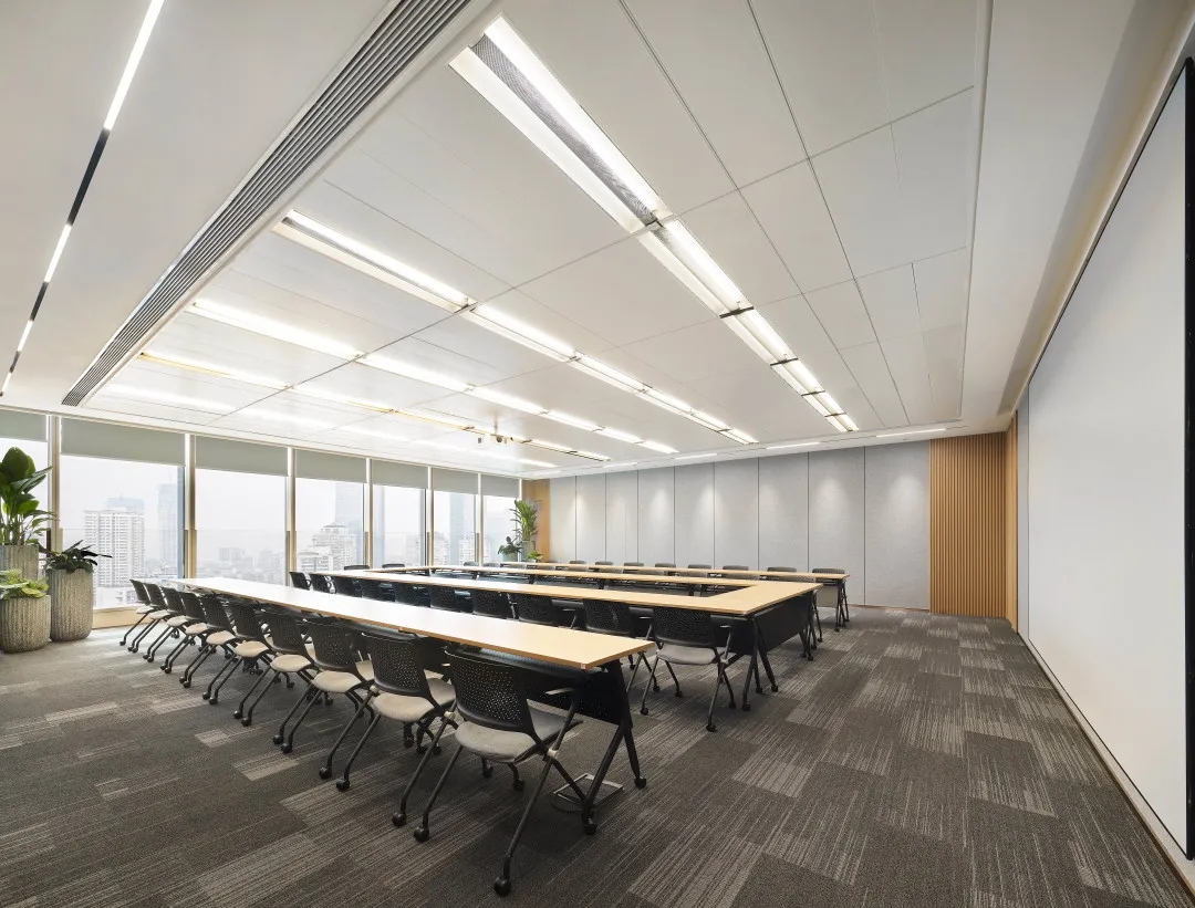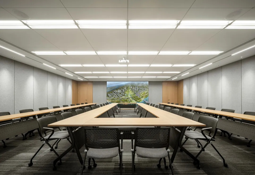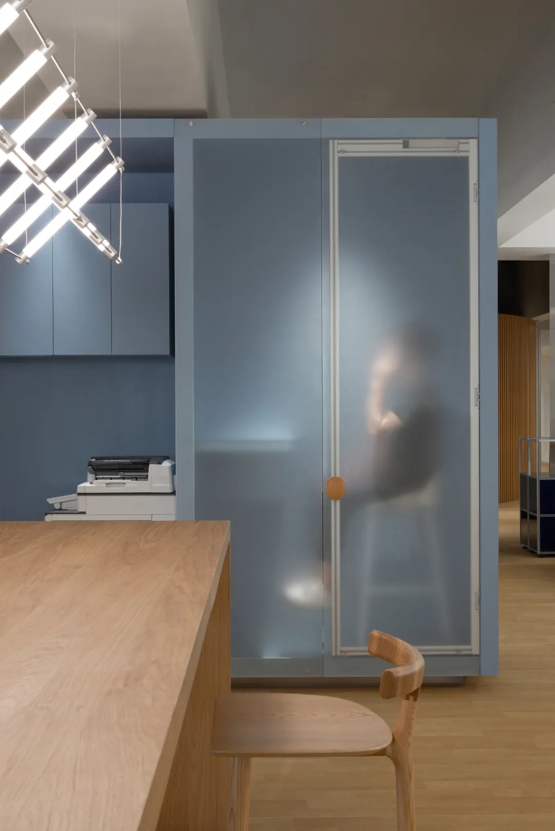 空间中大面积的使用了松下的品牌蓝色,不同色阶的蓝色为空间带来层次感。say对于办公空间的色彩运用都是有迹可循的,不同的色彩点缀标明了空间特殊功能。