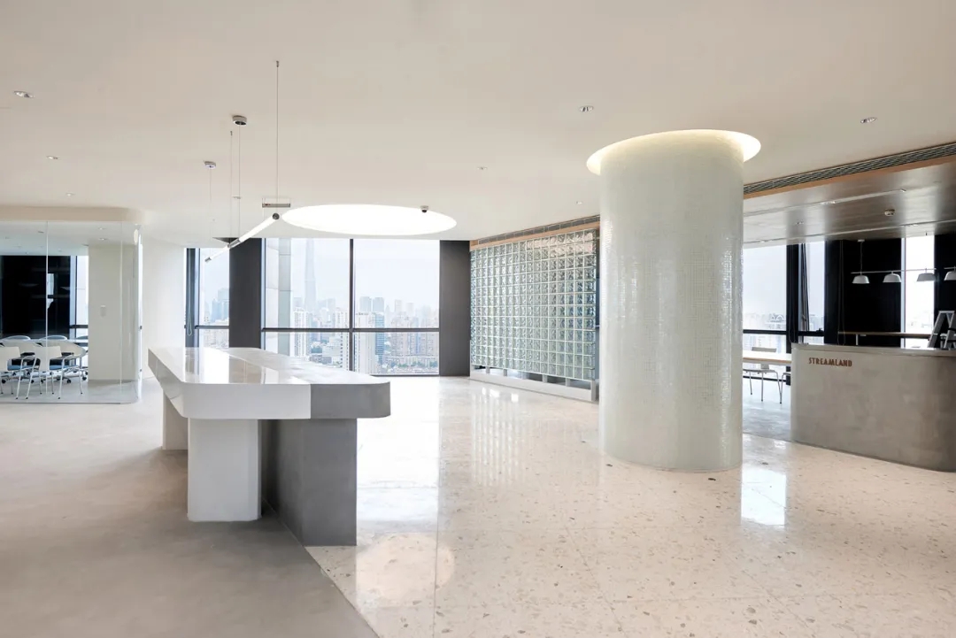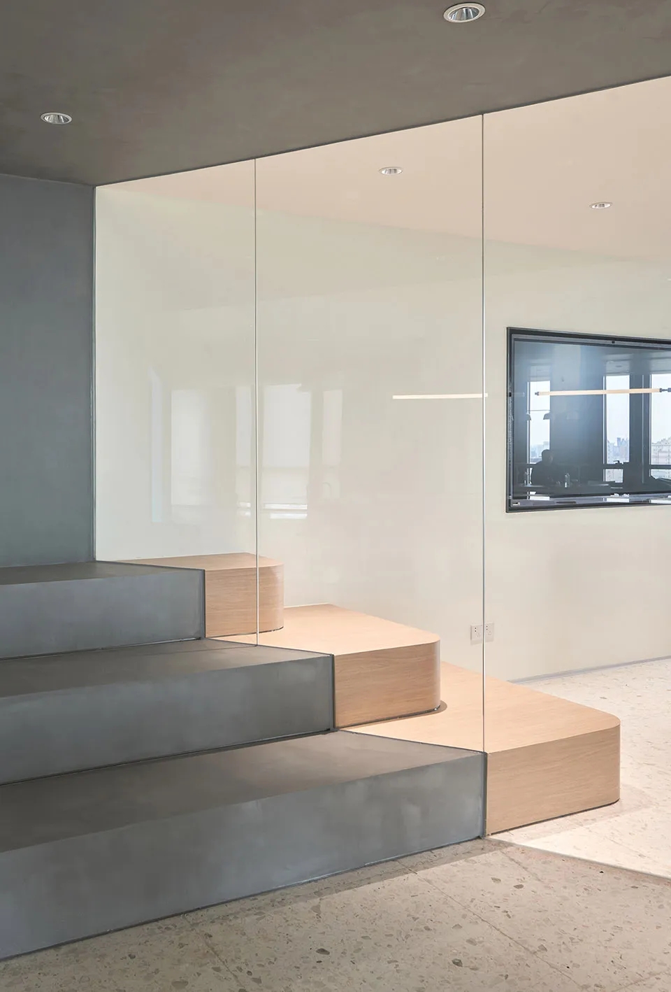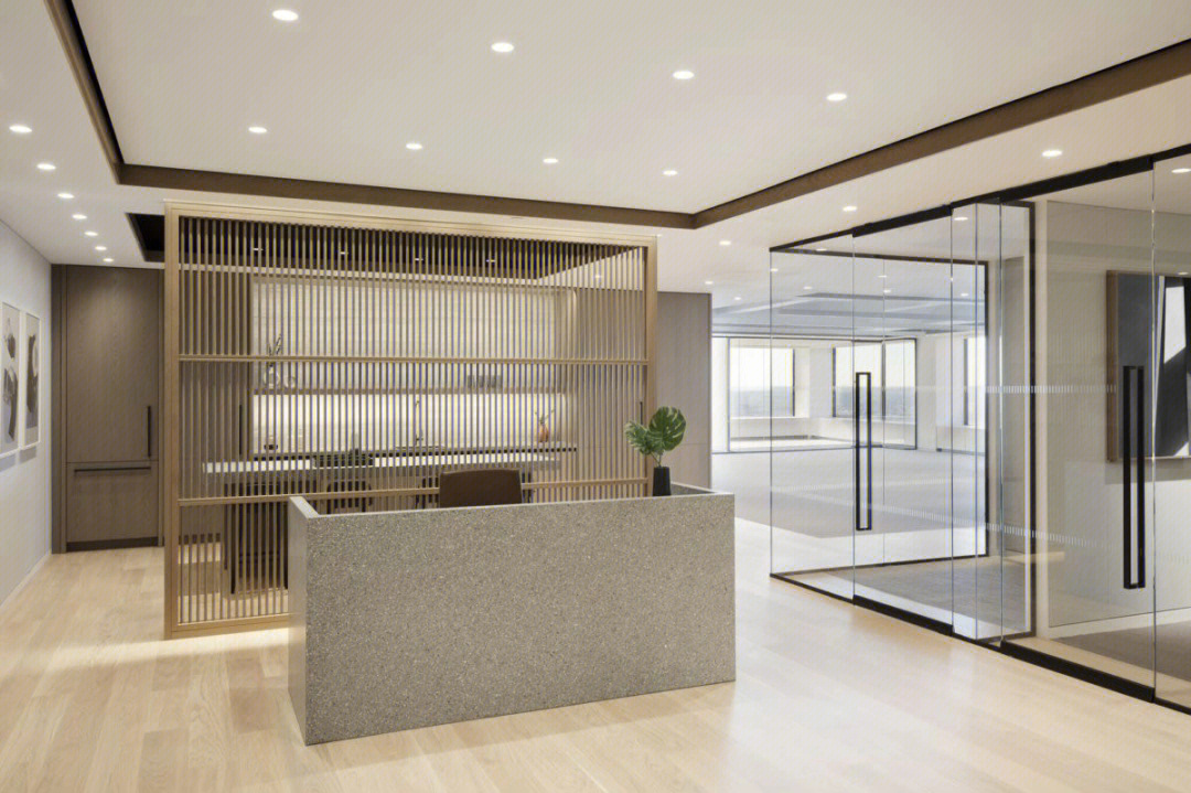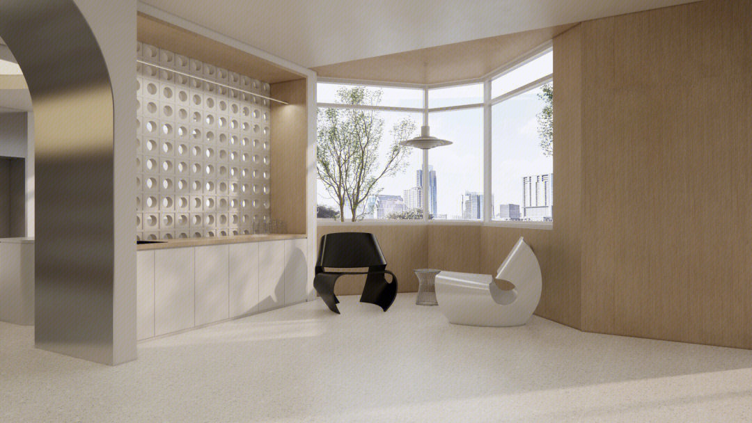项目在方案阶段花了较多时间推敲,最初期空间概念设想为从本身公司名称所给予的寓意着手,以流动灵动的曲线元素为基础型态,呈现一个舞台感的核心空间。 中期方案加入了将接待空间同时作为开放式社交空间的概念,并简化了型态为直线与弧线的组合,使社交流动的空间型态也更为动态,静态办公空间空间型态则较为理性。