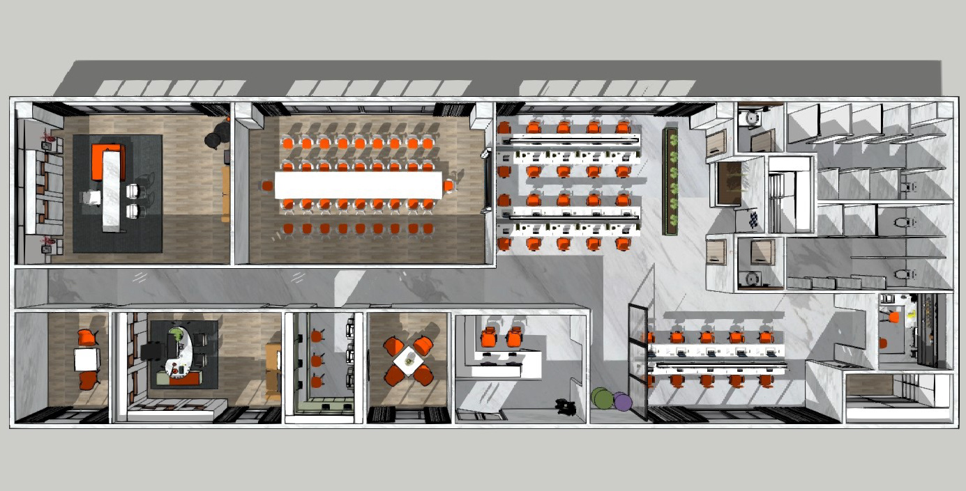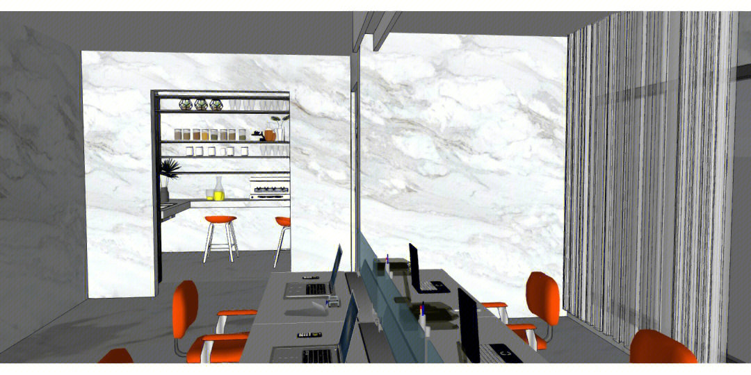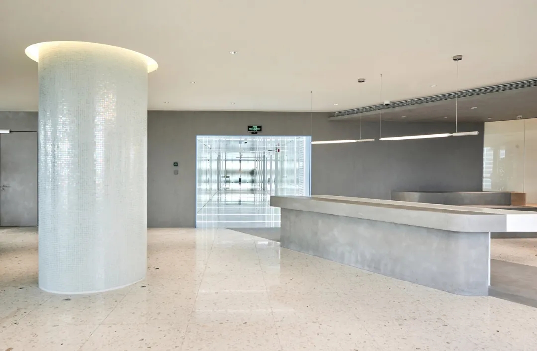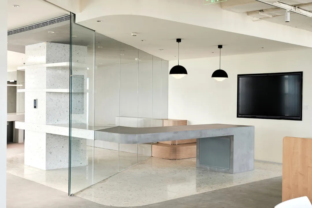项目在方案阶段花了较多时间推敲,最初期空间概念设想为从本身公司名称所给予的寓意着手,以流动灵动的曲线元素为基础型态,呈现一个舞台感的核心空间。 中期方案加入了将接待空间同时作为开放式社交空间的概念,并简化了型态为直线与弧线的组合,使社交流动的空间型态也更为动态,静态办公空间空间型态则较为理性。