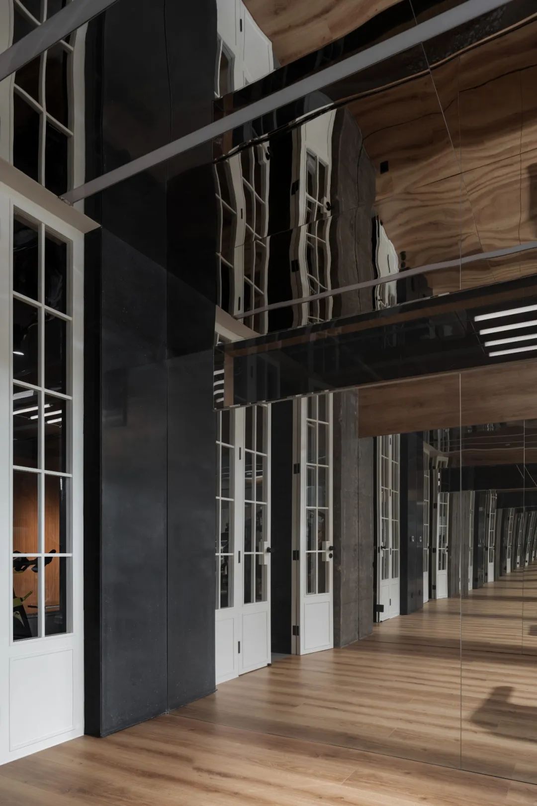 深色木饰面、木地板,简单的漆面,省略了无谓的加工和装饰。随着时间自然流逝,就像试图展现力量与美的本质,尊重了每块材料的完整性和独特性。构造尽量简单而直接,无一不在诉说这空间的隐秘力量,强化凝聚了它原本的气质。