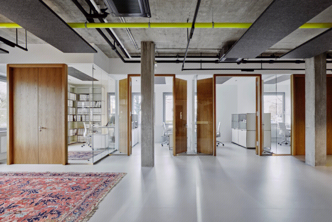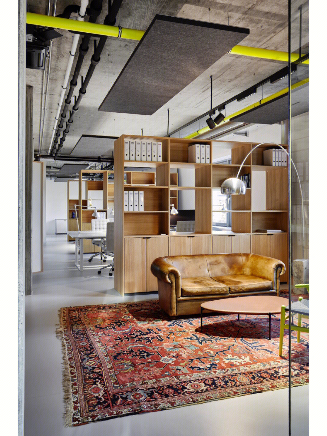 突然跳跃出来的黄色、绿色、橙色等又打破了工业空间的呆板沉闷,尽显活力和创新突破。