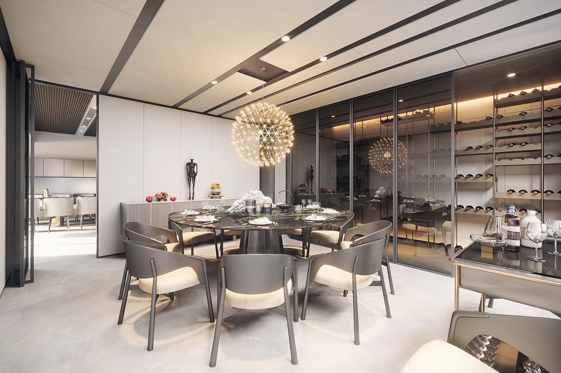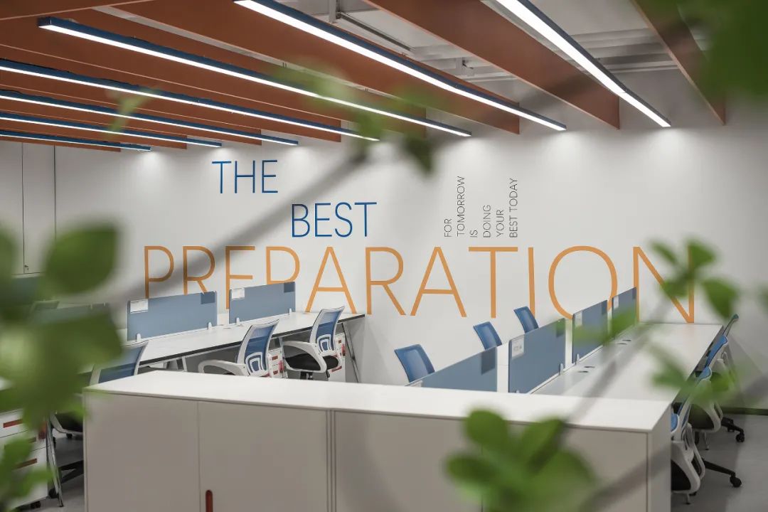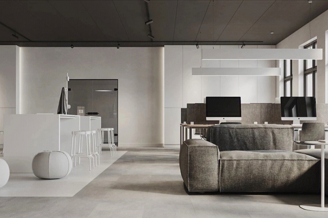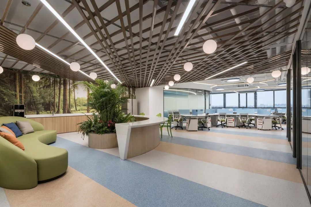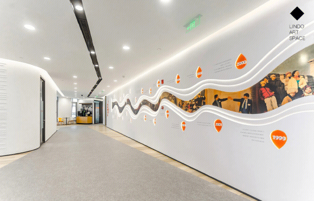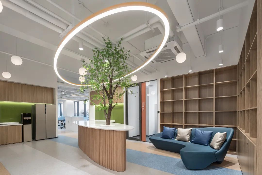 前厅顶部,镜面质感与光带反射,使空间得到延伸、重叠呼应,营造出多维的视觉效果,同时打破科技办公室设计的刻板印象,拥有宽敞开放的前台设计、待客区,层次、质感、丰满而厚重。