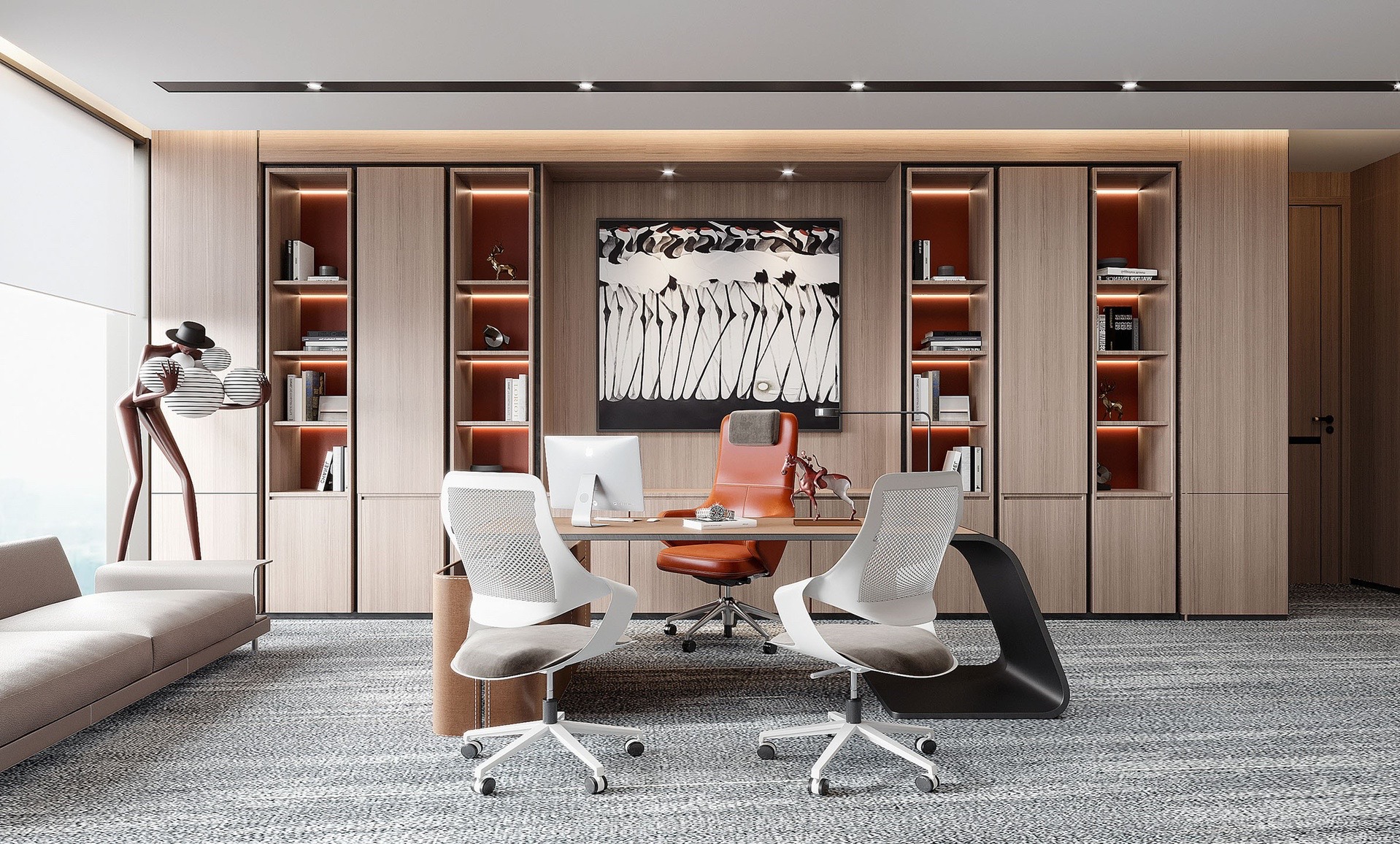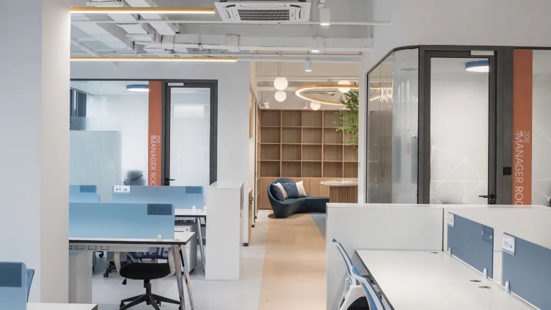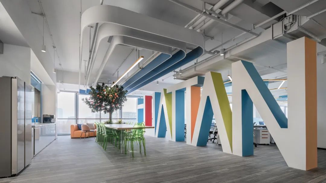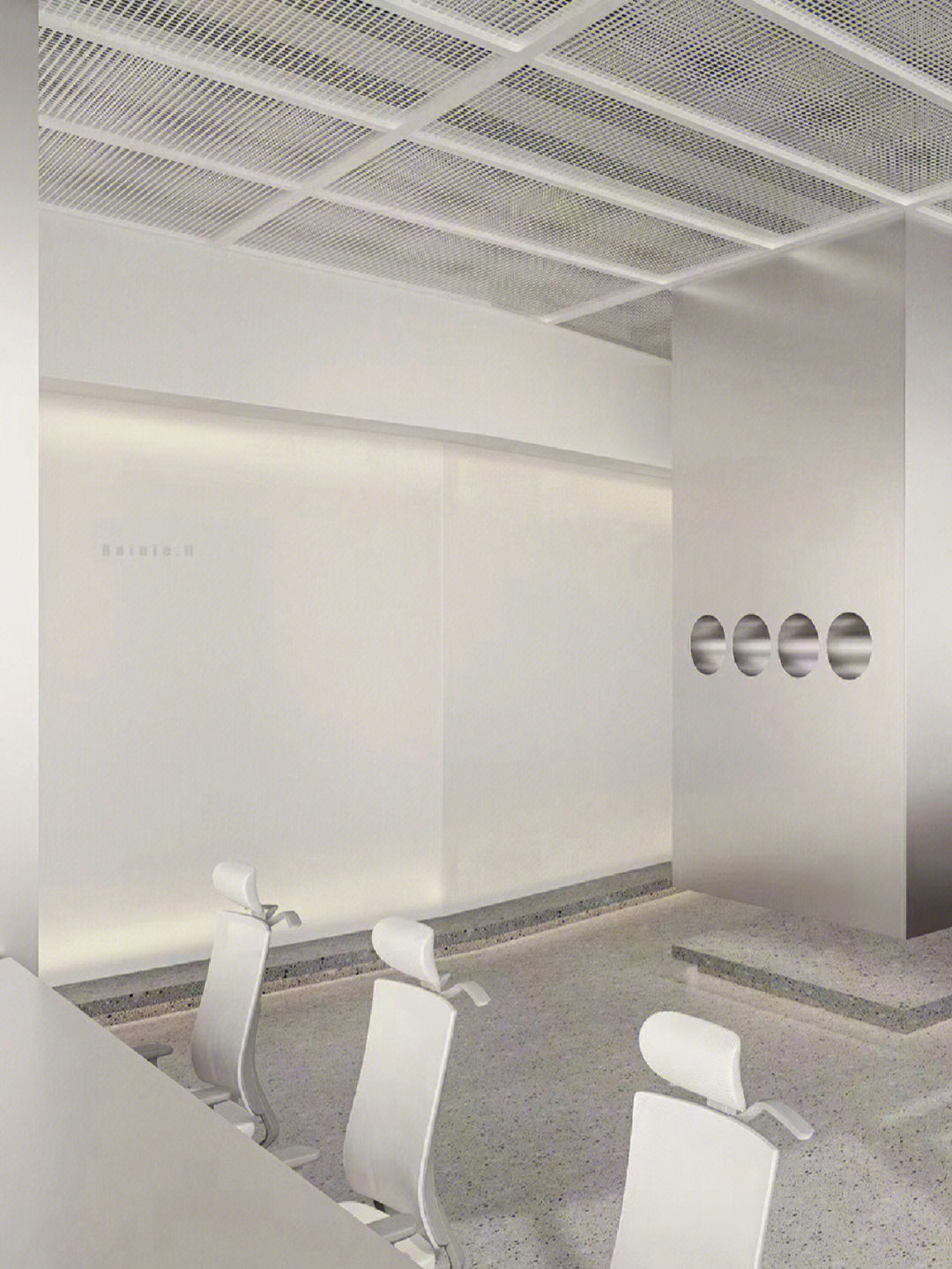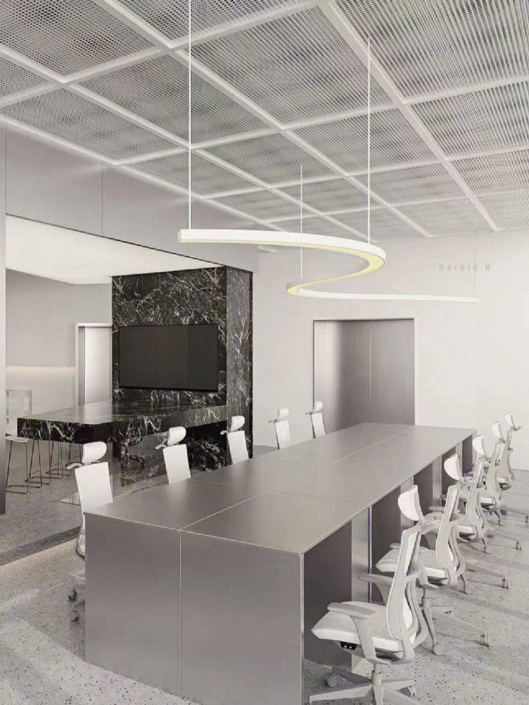笃定至繁归于至简的纯粹使用的场景同样是一种重叠交错的思考方式,几何型炫彩会议室自由切换,解决开会和培训上课等多种使用场景需求。设计团队通过精妙配色、材质肌理、利落的几何造型用对比手法营造出精致、又富多元的动态会议环境。