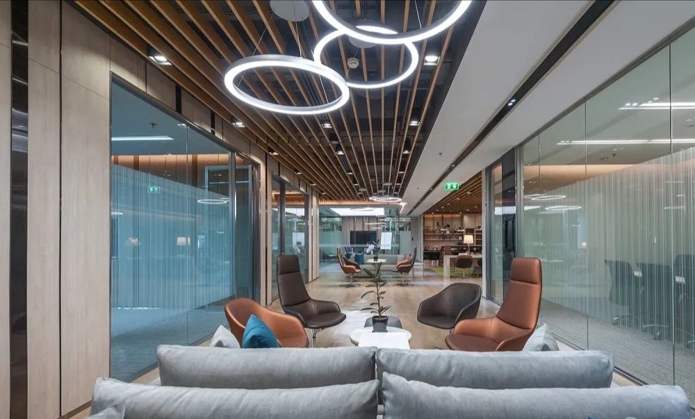 在会议室或开放式空间等区域使用蓝色,可以产生一种平静的感受,这反过来又有益于让员工在更长的时间内保持专注。