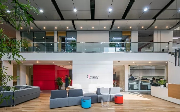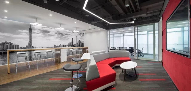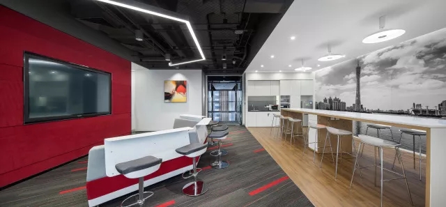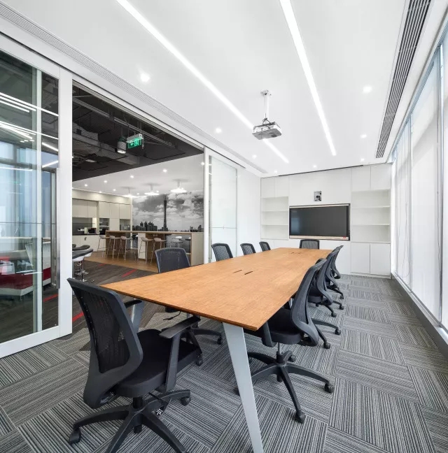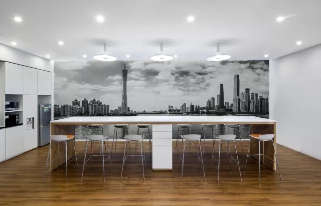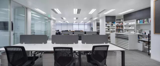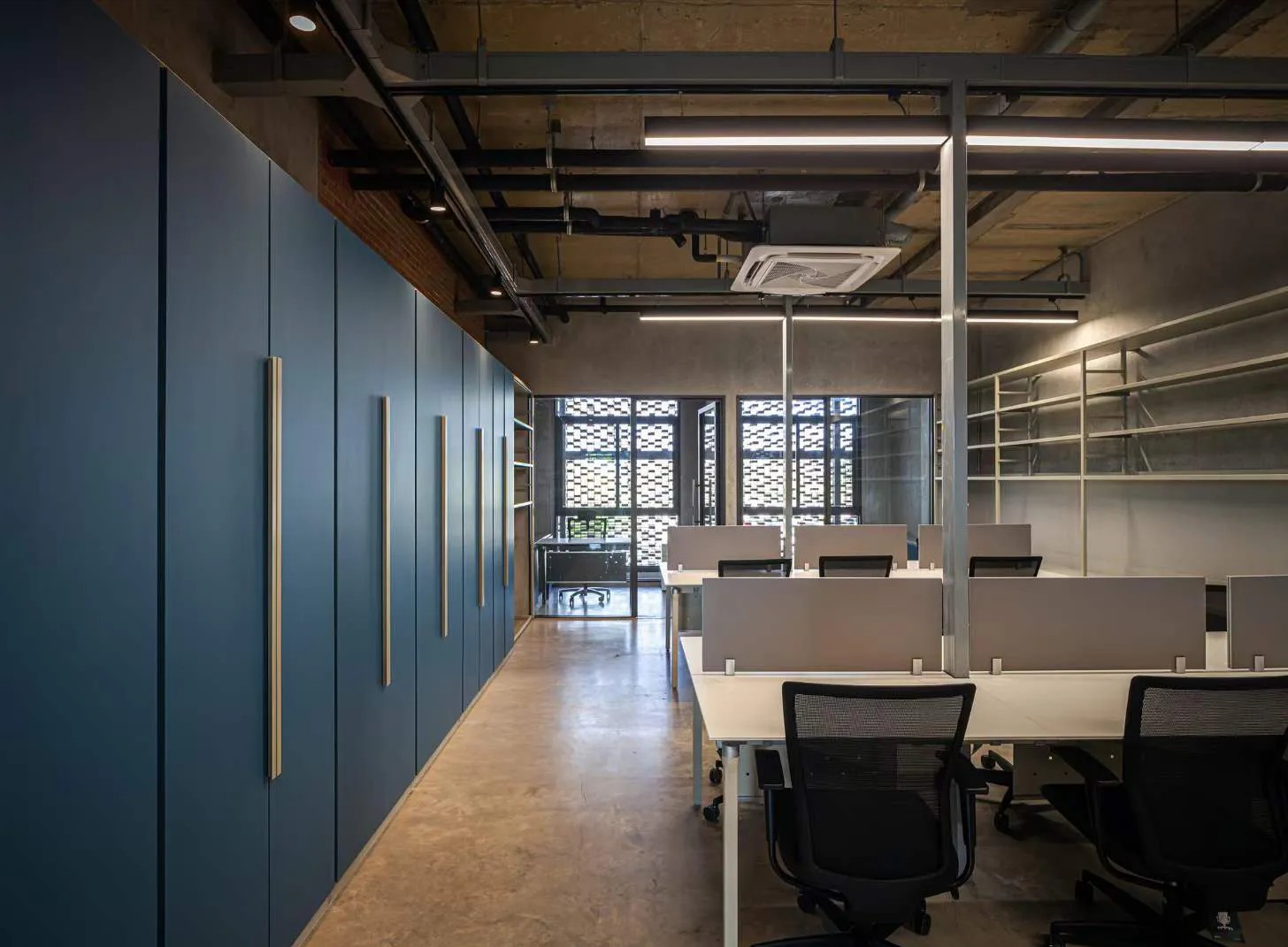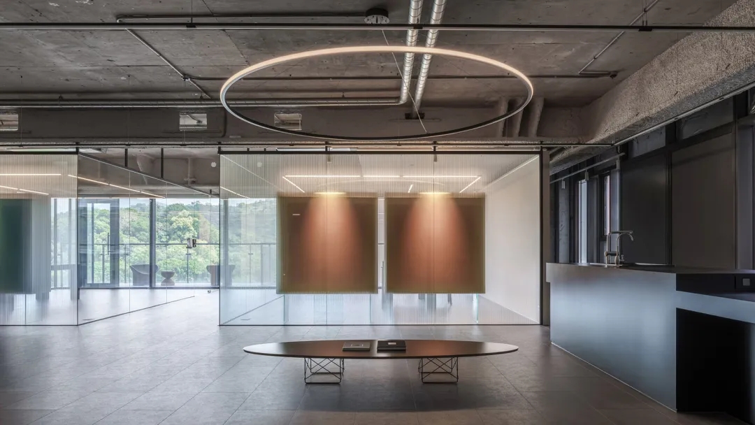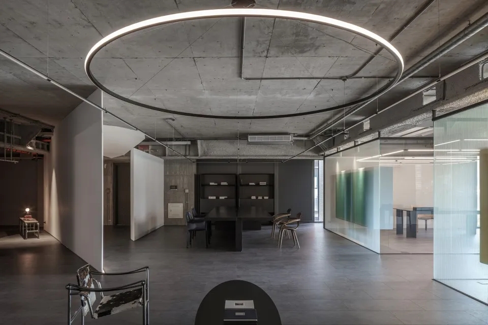 企图消弭办公座位的制式分割,释放空间至坐谈区、走道、轻透层次,将机能元件如工作台面、吧台描绘为几何块面;墙与柜体分割线如画里的隐性线条,衬托作为主体笔触的灯具与色块柜体,立体派多视角的创作符号拼组简净纯粹、宽阔驰放的中性场域。