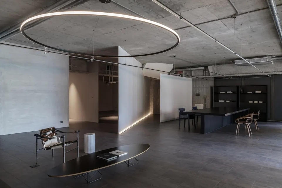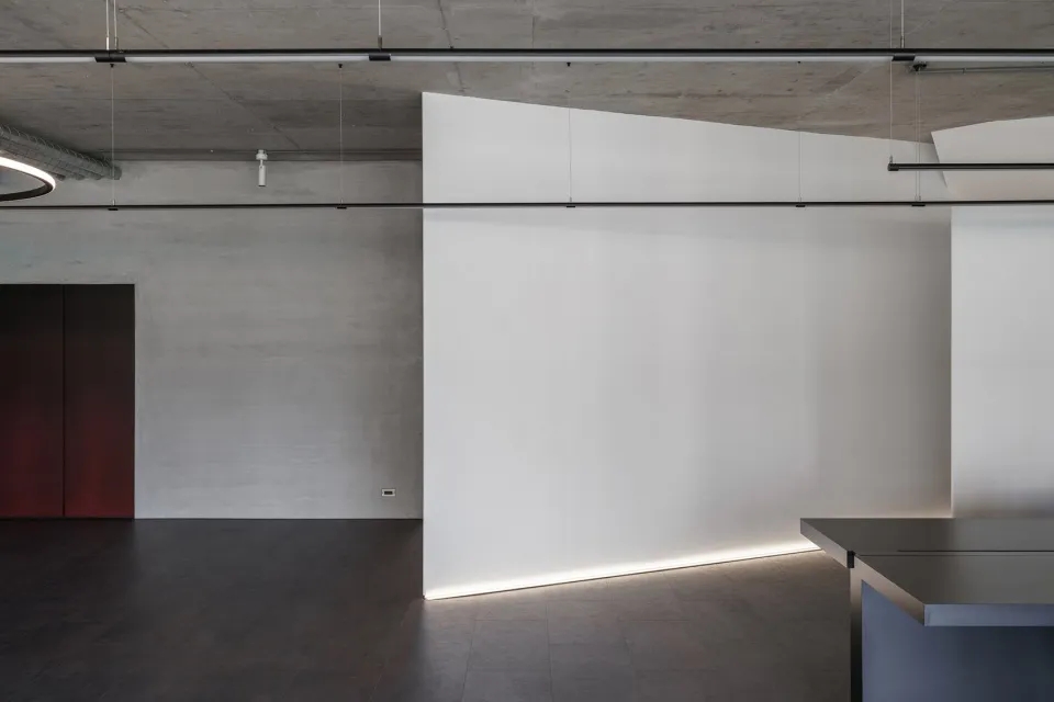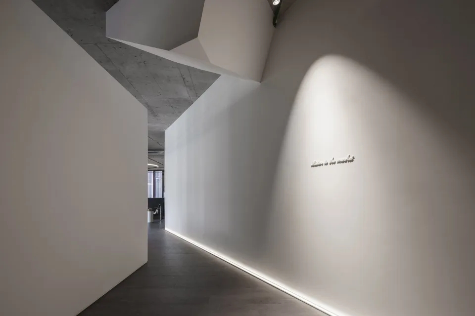 打破制式分隔空间的惯性,室内让出更自由的平面,少量而形体俐落的家具延续几何语汇。如艺廊的环境属性,使既存机能构造隐退到素净的表面之后,视觉自然定焦于令喧嚣沉静的艺术品上,即便静止,也能迸发出强大的叙事力量。