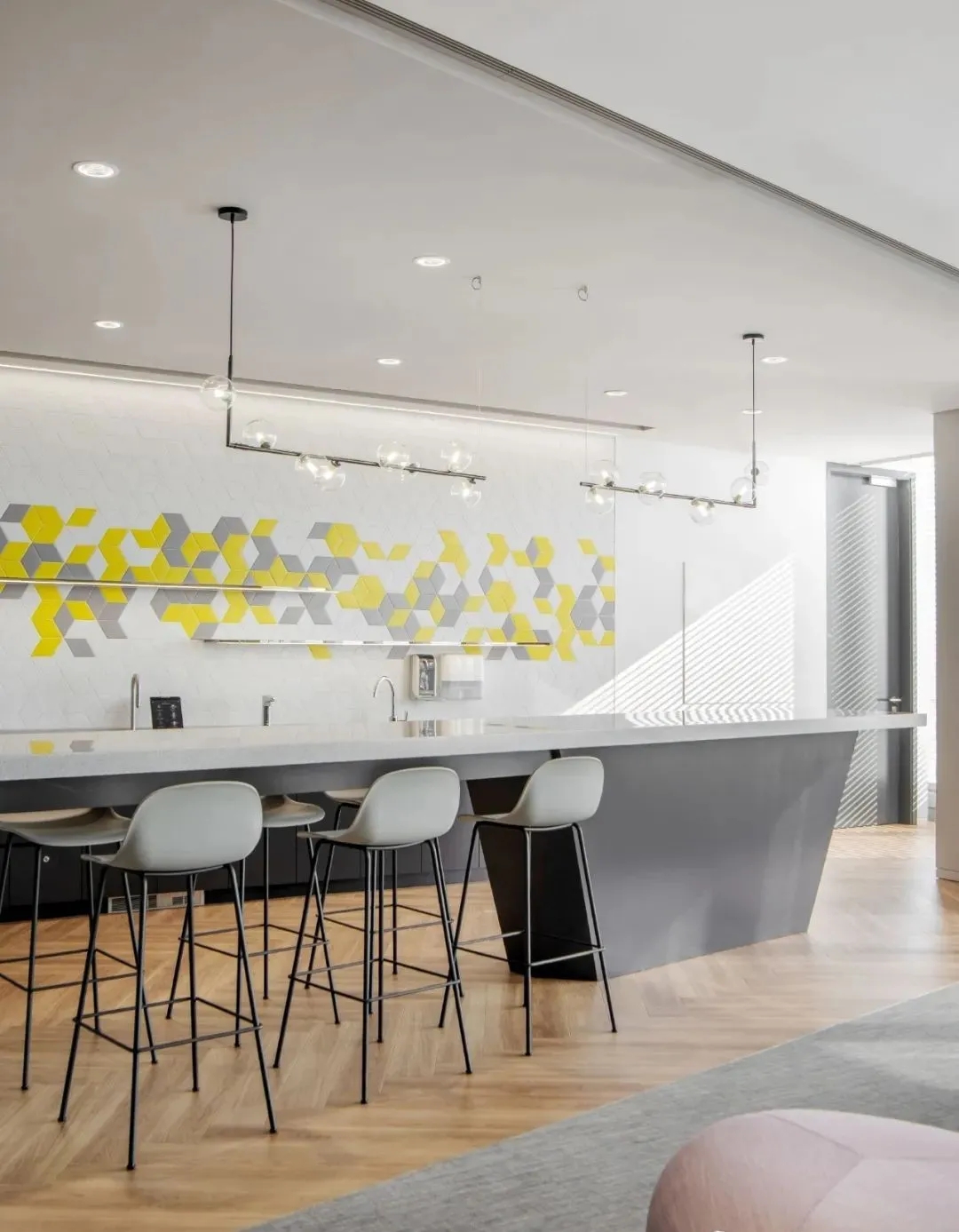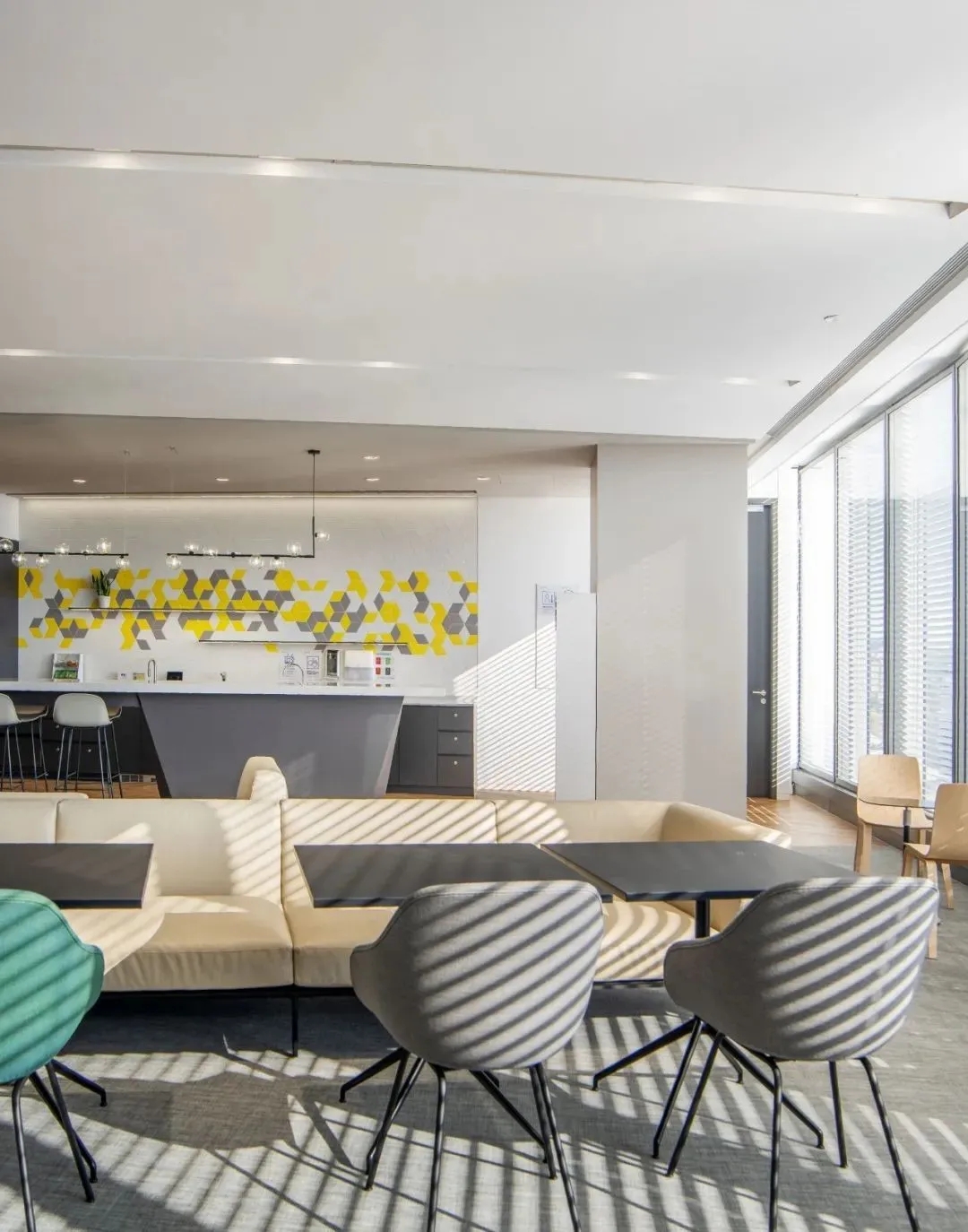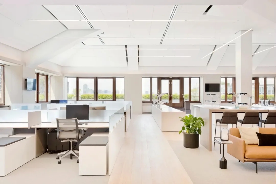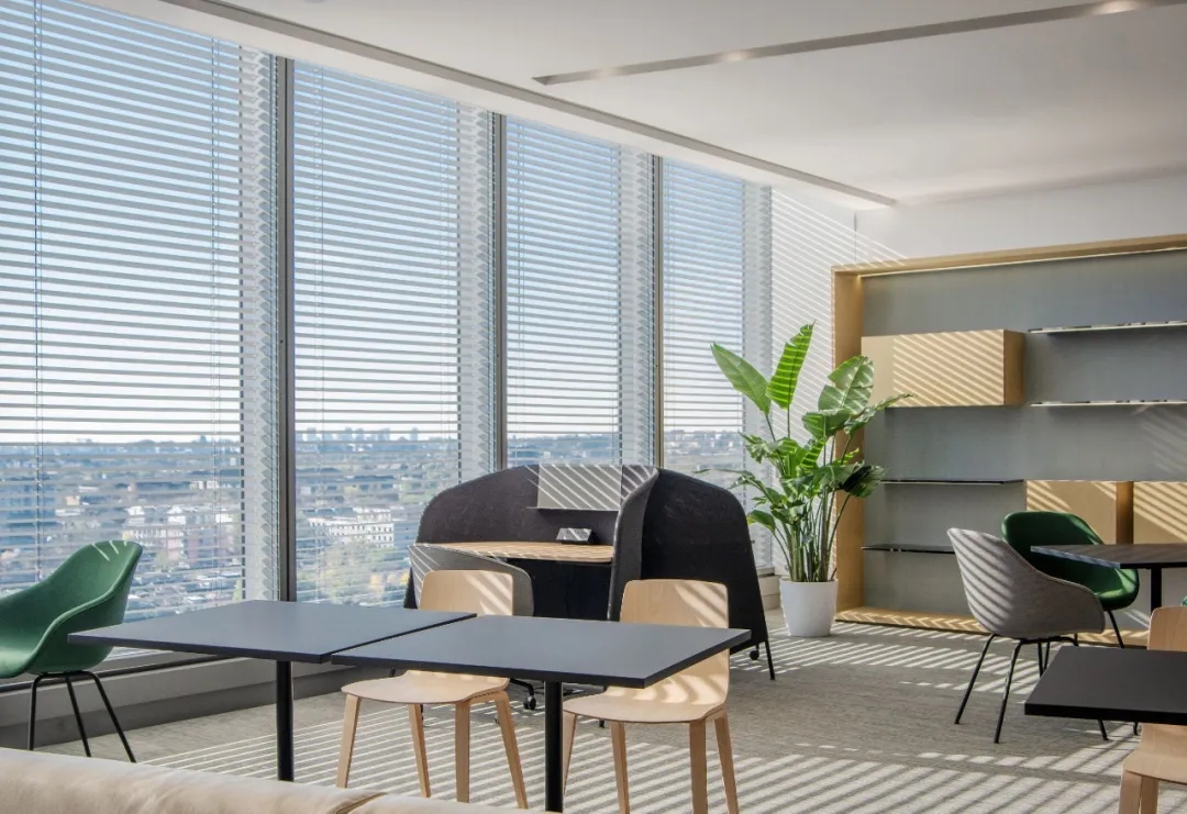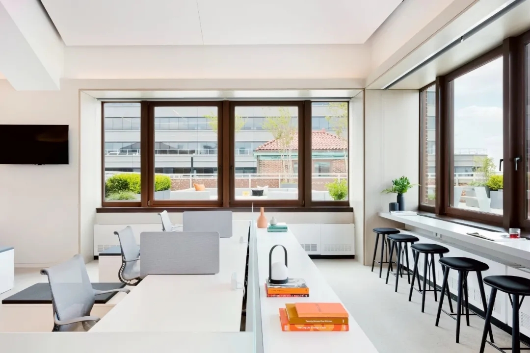 宽敞的吧台和各种座位形式为员工提供了多样社交、协作、放松或专注于工作的机会。除了在咖啡协作区享有地坛公园的美丽景色,从办公室的其他区域,包括在电梯厅的窗边休闲区,都能欣赏到户外的自然美景。