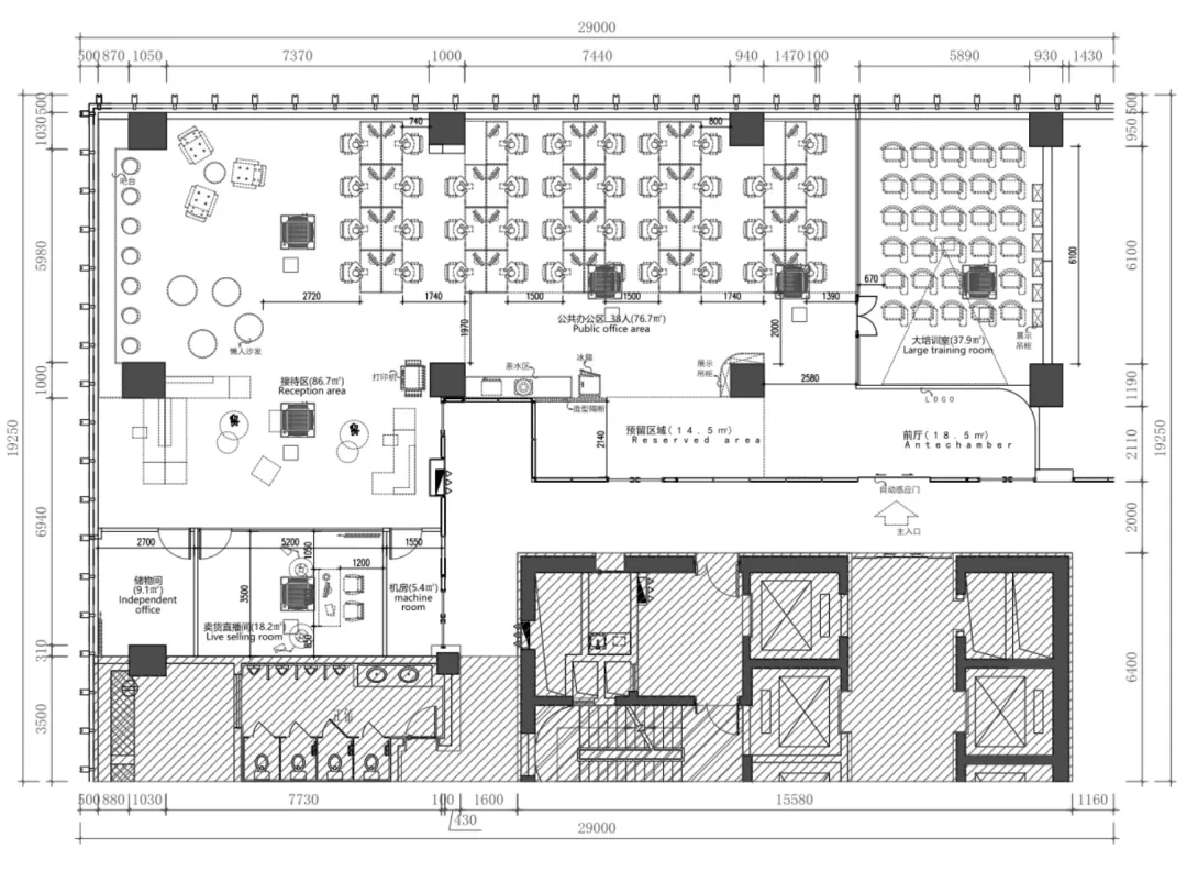 整个空间中,除了卫生间和水区,完全没有任何固定墙体,所有的办公室和会议室以及家具都是可移动的,以支持各种团队在执行任务时的各项工作需求。