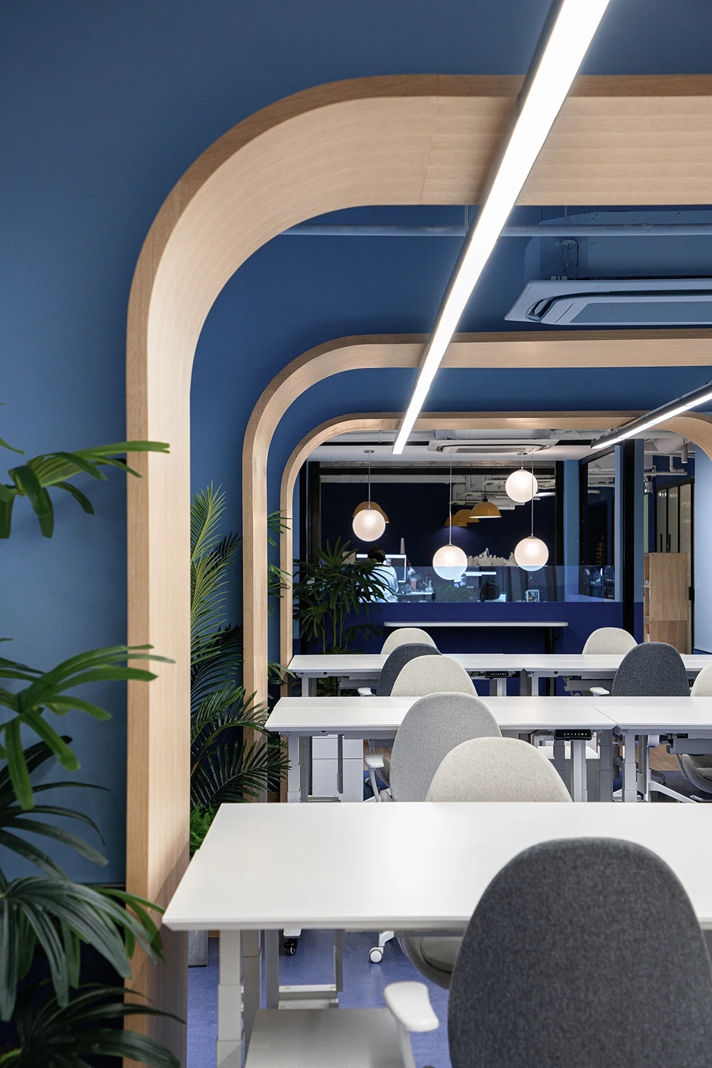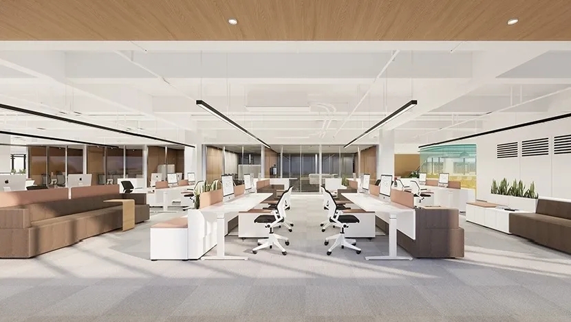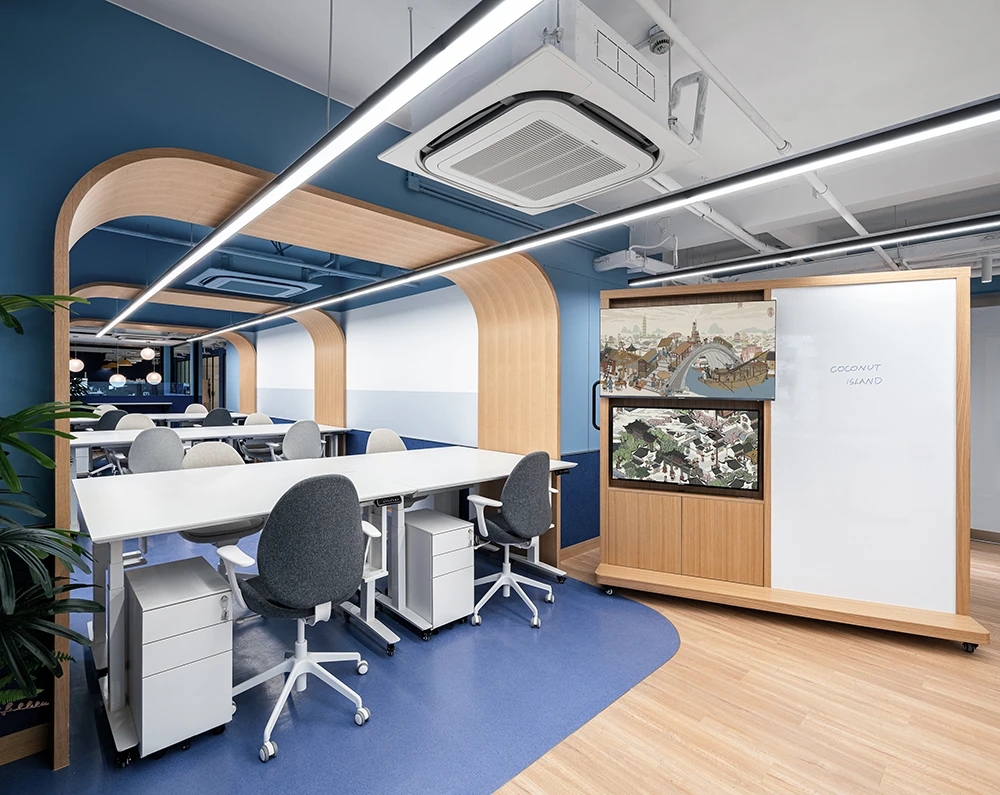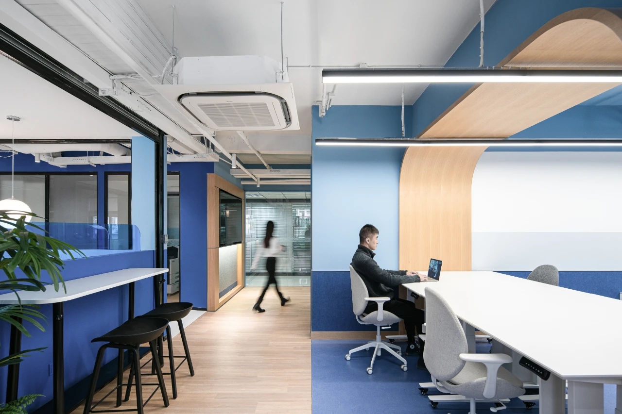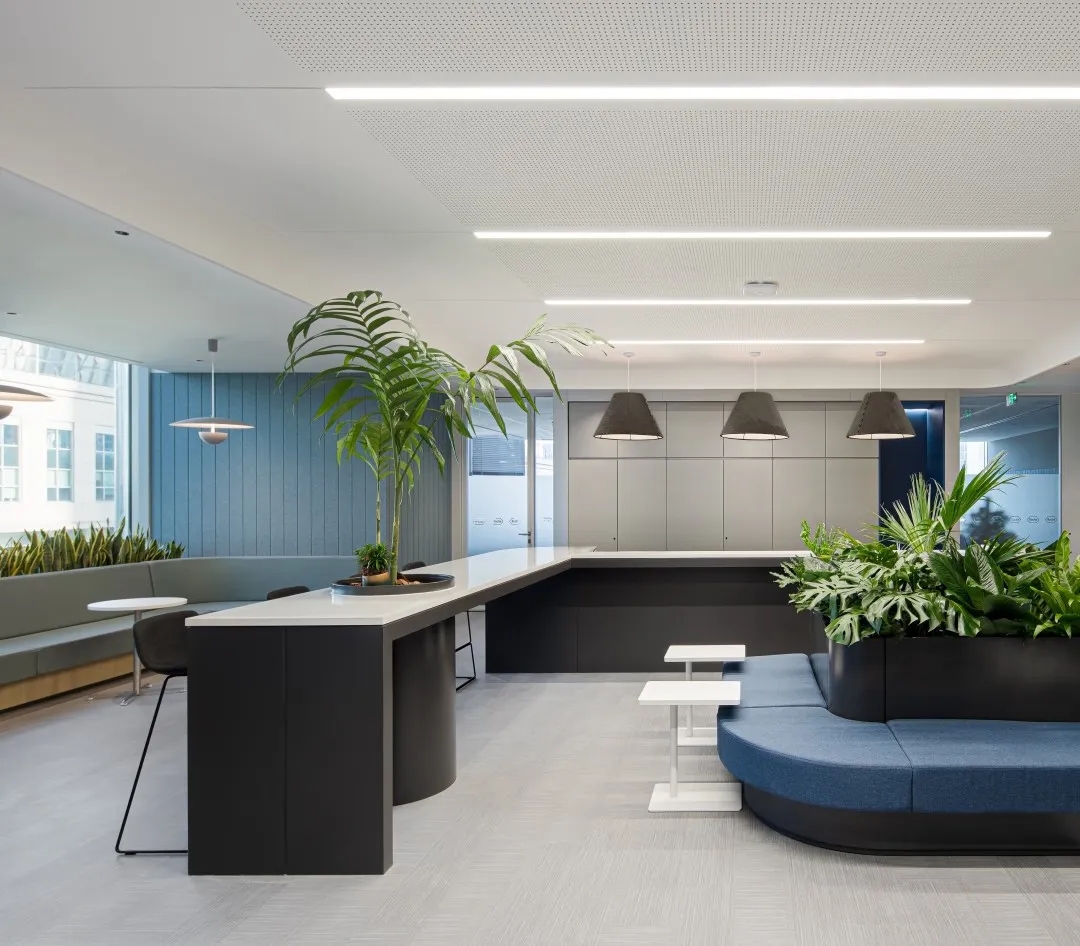 入口前厅是人们对空间感知的第一印象。在这里,FTA引入“办公厨房”概念,将传统接待台升级为一个强连接的社交中心,把现代人追求自由、灵活多变的工作方式与社群归属感融于一身。
