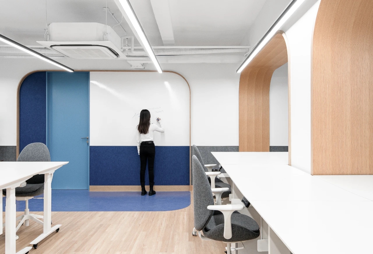 “净化”二字便是FTA为Brita空间寻找的诗意答案,2000m2的办公室被塑造成一个净化心灵的场地。