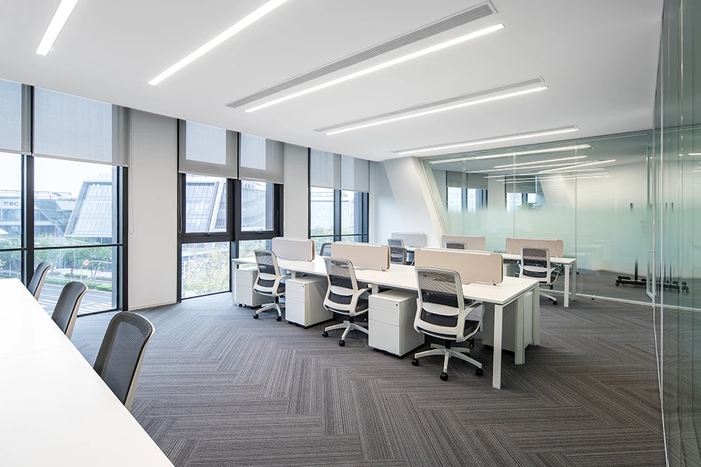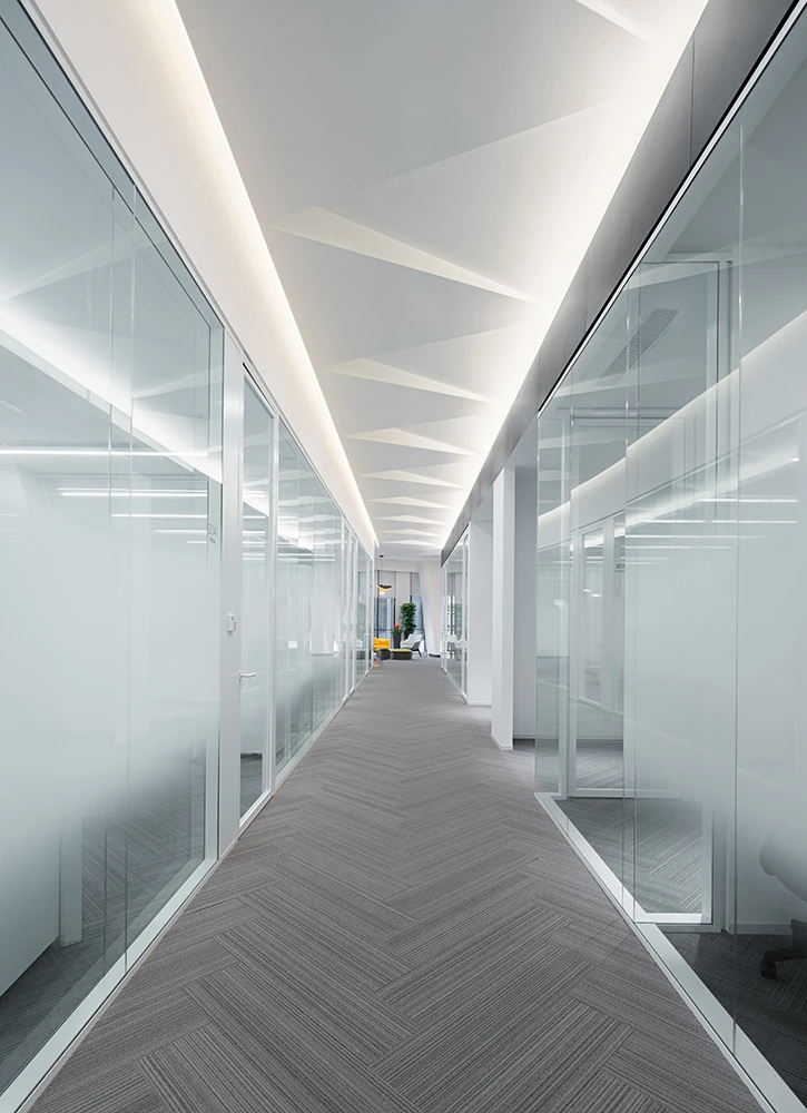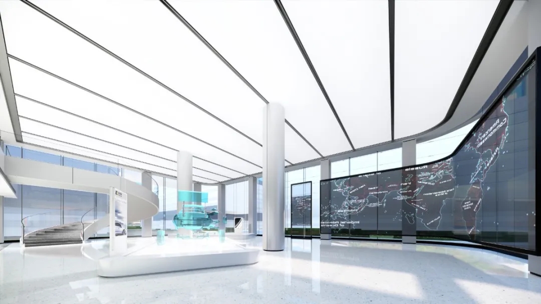 进行功能空间及行人动线的安排,兼顾办公的私密性与开放性。在相对便捷的一、二层,布置展示、接待、会议和交流的需求;三至六层更具私密性,则作为研发部、联合办公、高管独立办公室,以及一间能实时监控全球27间海外工厂的智能中控室单元。
