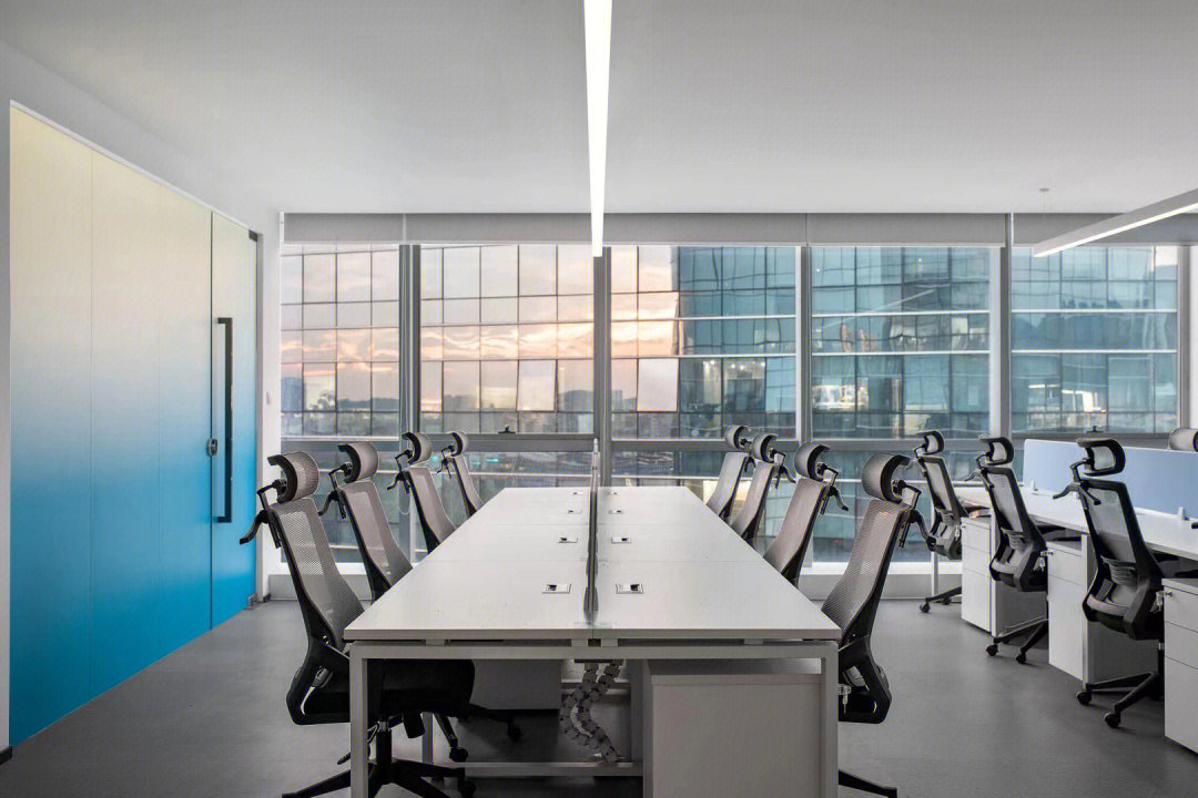 抽象的Brita品牌标识被幻化为水滴形吧台,恰如一颗镶嵌于空间里的发光宝石。Brita的经典滤水产品无缝地嵌入吧台之中,员工得以在咖啡的醇香中开启美好的一天。夜幕降临时,临窗的多功能区还可以变身为网络直播间。在璀璨夜景的映照下,FTA的复合空间设计与数字化时代的传播特点完美相融。