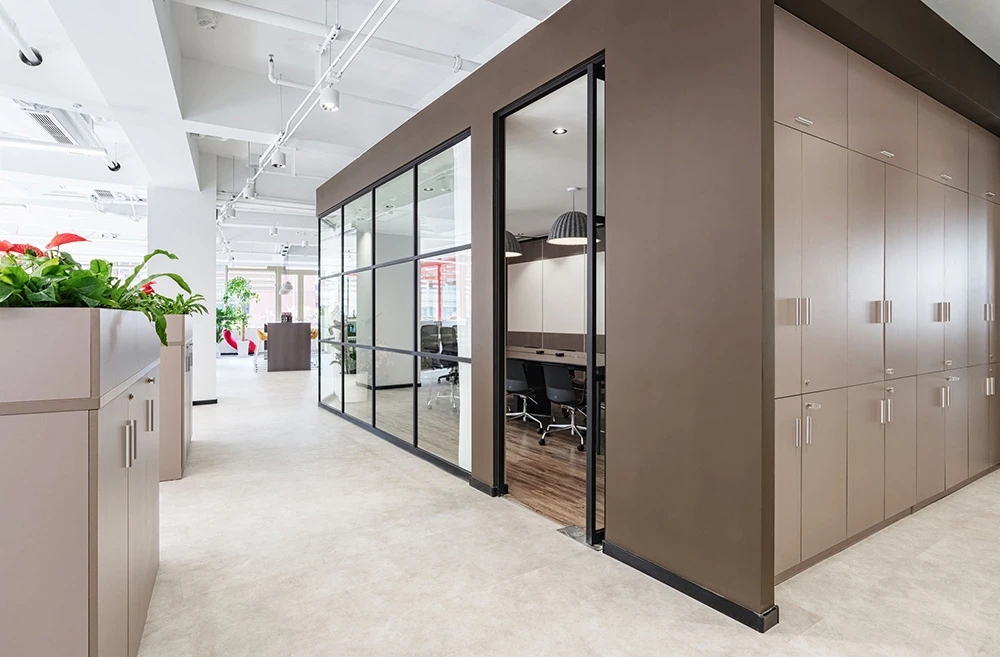 设计试图为惠怡及其雇员营造一个温馨家庭一般的工作环境。在办公区域应用如白色、灰色等浅色色调,在最优化自然光照效果的同时也体现色彩对比,而在日常功能区域,例如前台、会议室和茶水间,则选用类似其主营产品的深棕巧克力色涂料——多乐士奢华巧克力色——以作功能区分。