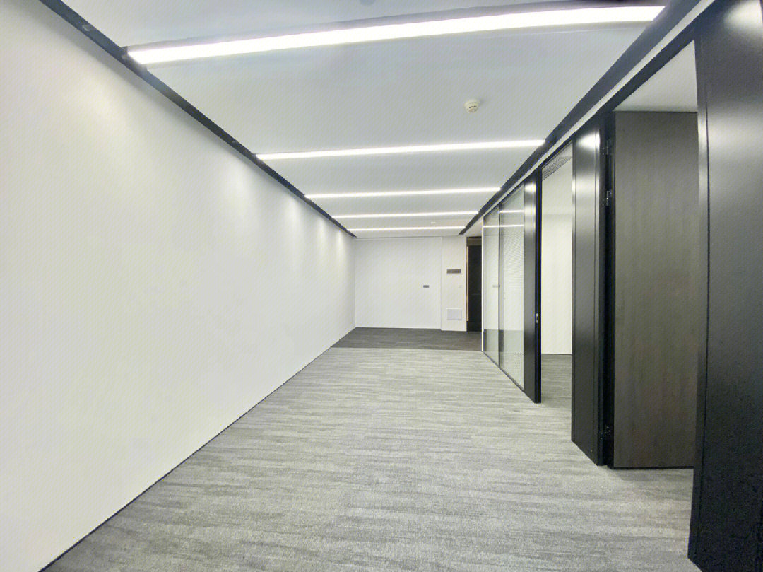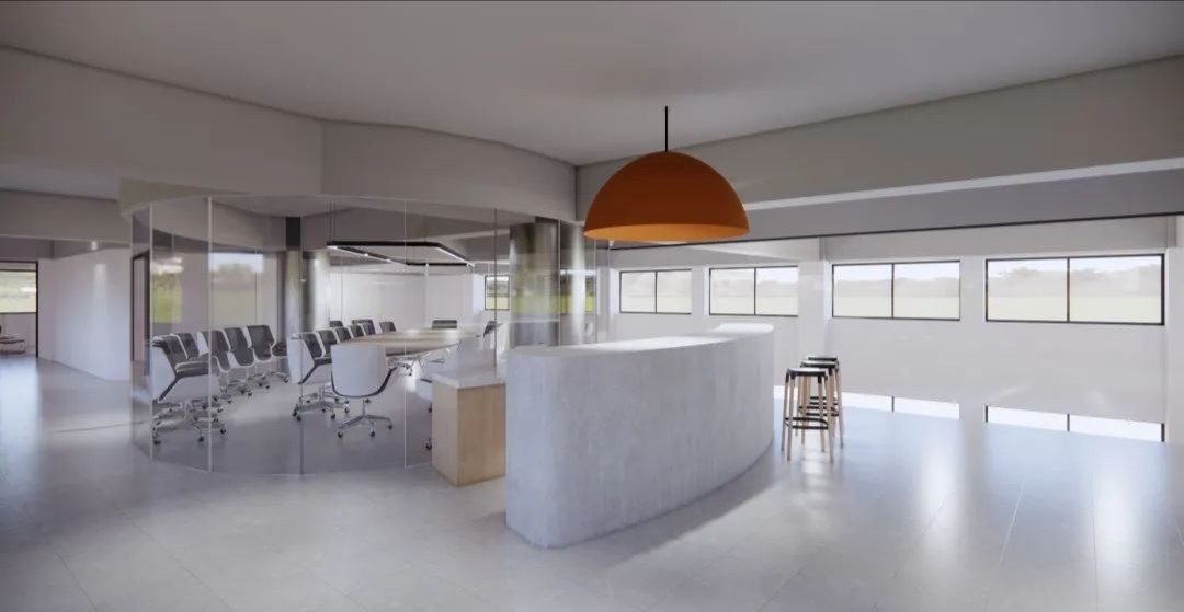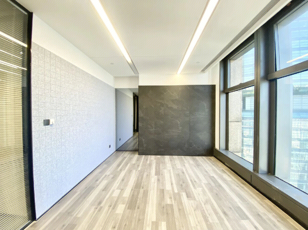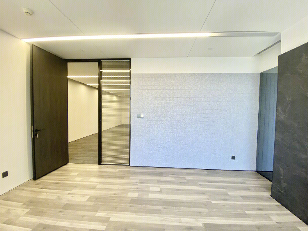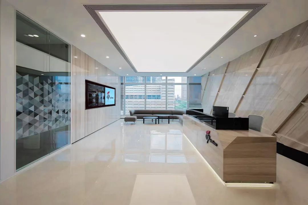 处于不同位置时,可将空间细化为不同的使用场景,充分满足员工需求的同时,形成了几何形极强的趣味构成空间。办公区走道将入口空间和办公空间形成分隔的同时,也形成了动线上的引导,从入口空间可进入会议室与董事长办公室。