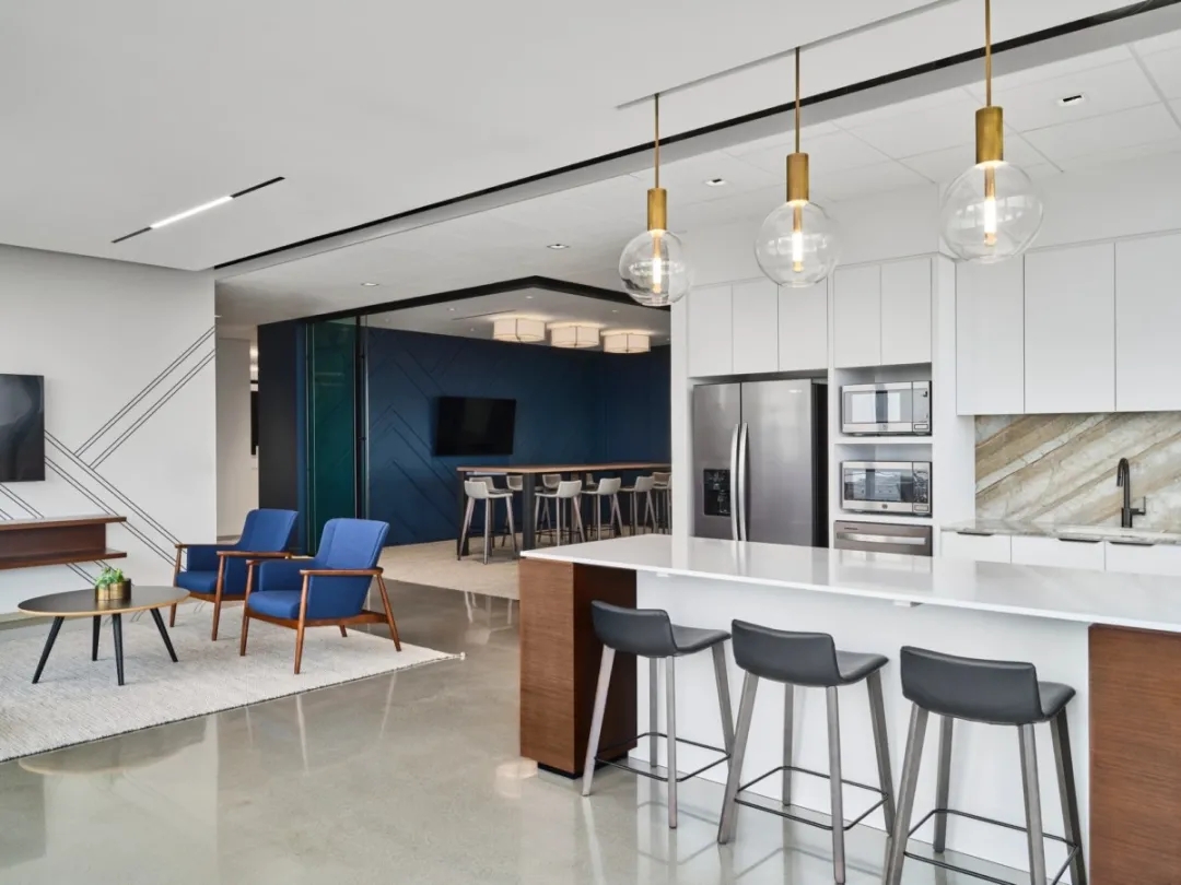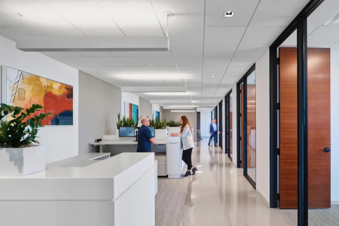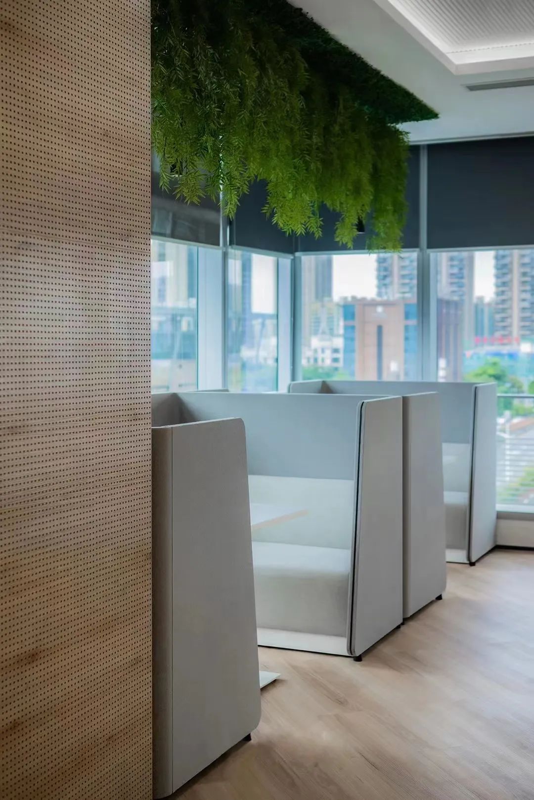 办公空间整体上得以高效利用,空间中设置了丰富多样的讨论工作圈,可以满足不同团队的讨论需求,让团队协作的组成模式呼应到办公空间的每一个角落。公共空间可以更好地支持共同协作、团队合作、知识共享以及人际互动。私人空间简单灵活,充分满足员工不同的办公需求。在这样的办公环境下,既可以支持个人办公,也是团队协作的绝佳场所,实现工作模式灵活多样化,优化高效办公环境,可谓实现了商务颜值与高效灵活的“双重升级”。