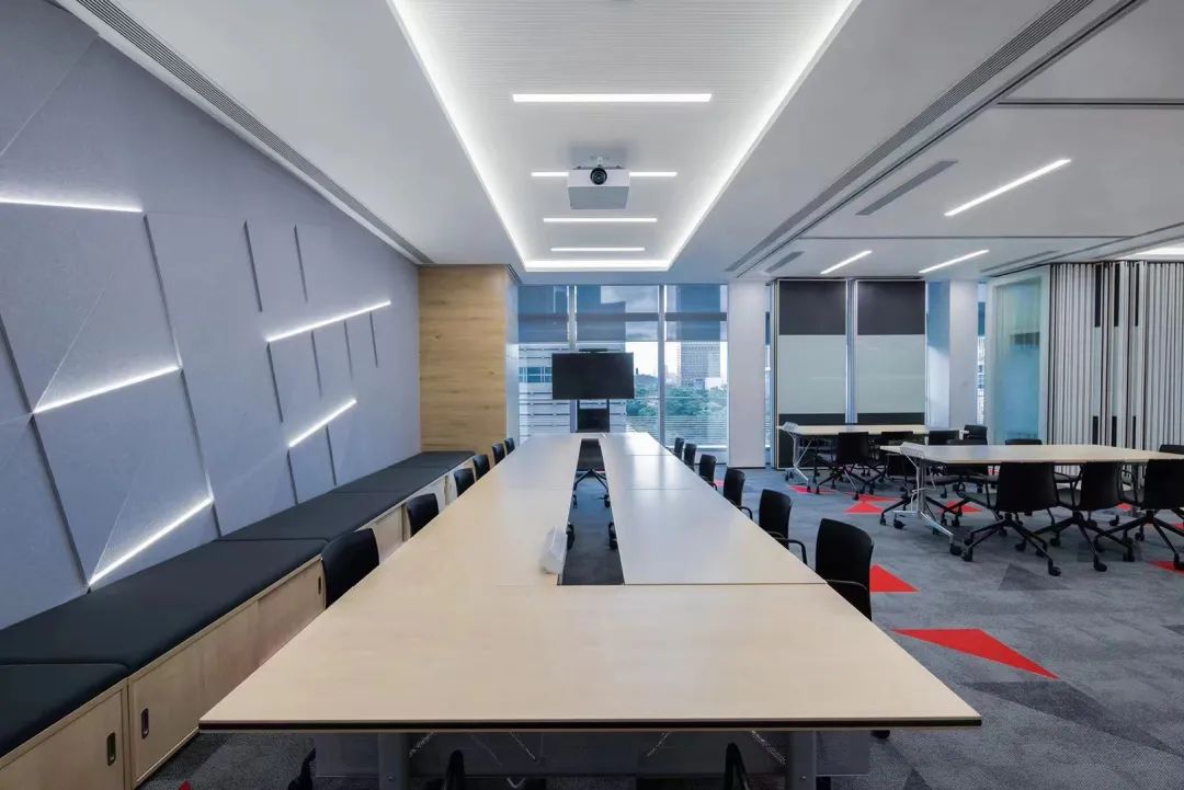 整个怡和的办公空间都带着一种想法在这里生根发芽和百花齐放的感觉。大量的红色装饰总能给予人们强烈的视觉冲击和热情活力,再搭配天然木材色调和灰色地毯均衡和软化其在办公空间中的优雅呈现也是极具挑战性的,突出了办公室的公用设施和协作空间,并将空间的开放明亮与激情活力更加完美极致地展现出来。