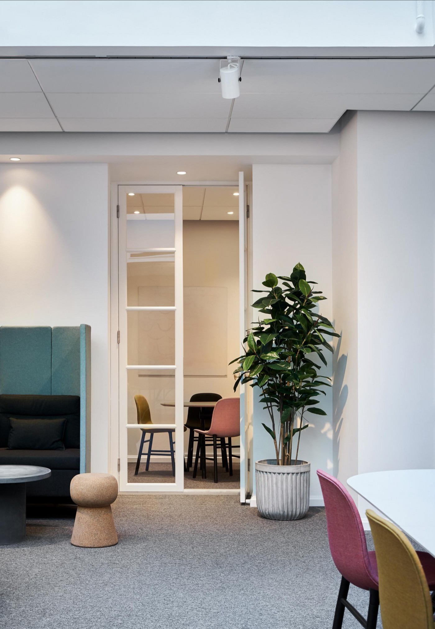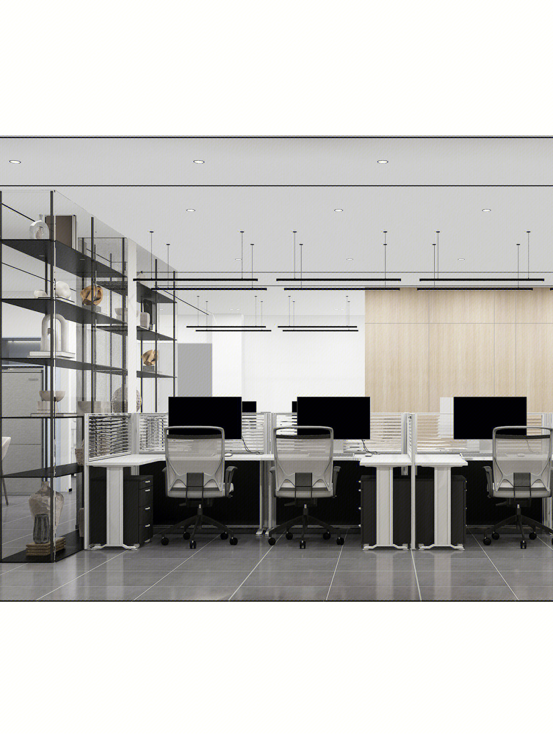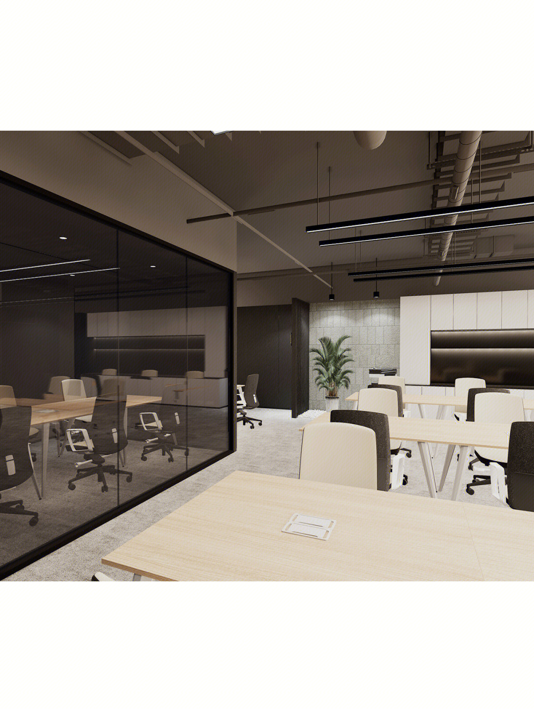 独立办公空间在用色上延续纯白主基调,同时增添了大面积深棕色、原木色,传递出领导者稳健大气的态度。通过减少装饰保持极简风格,以此创造一种舒适高级的品质感。