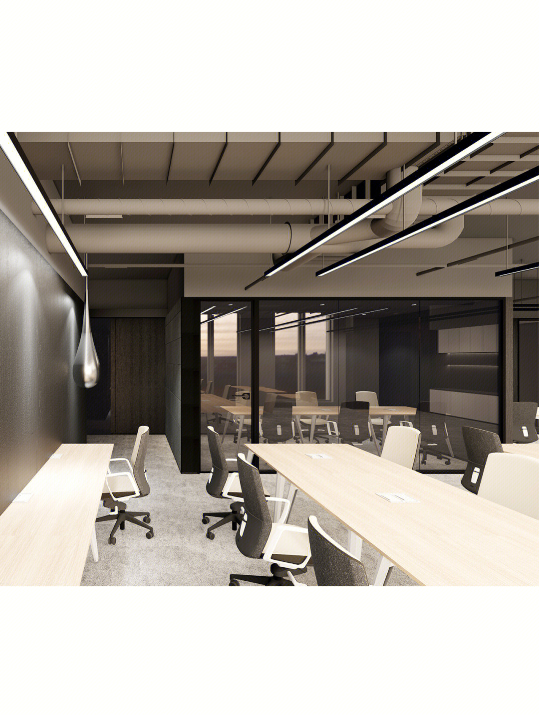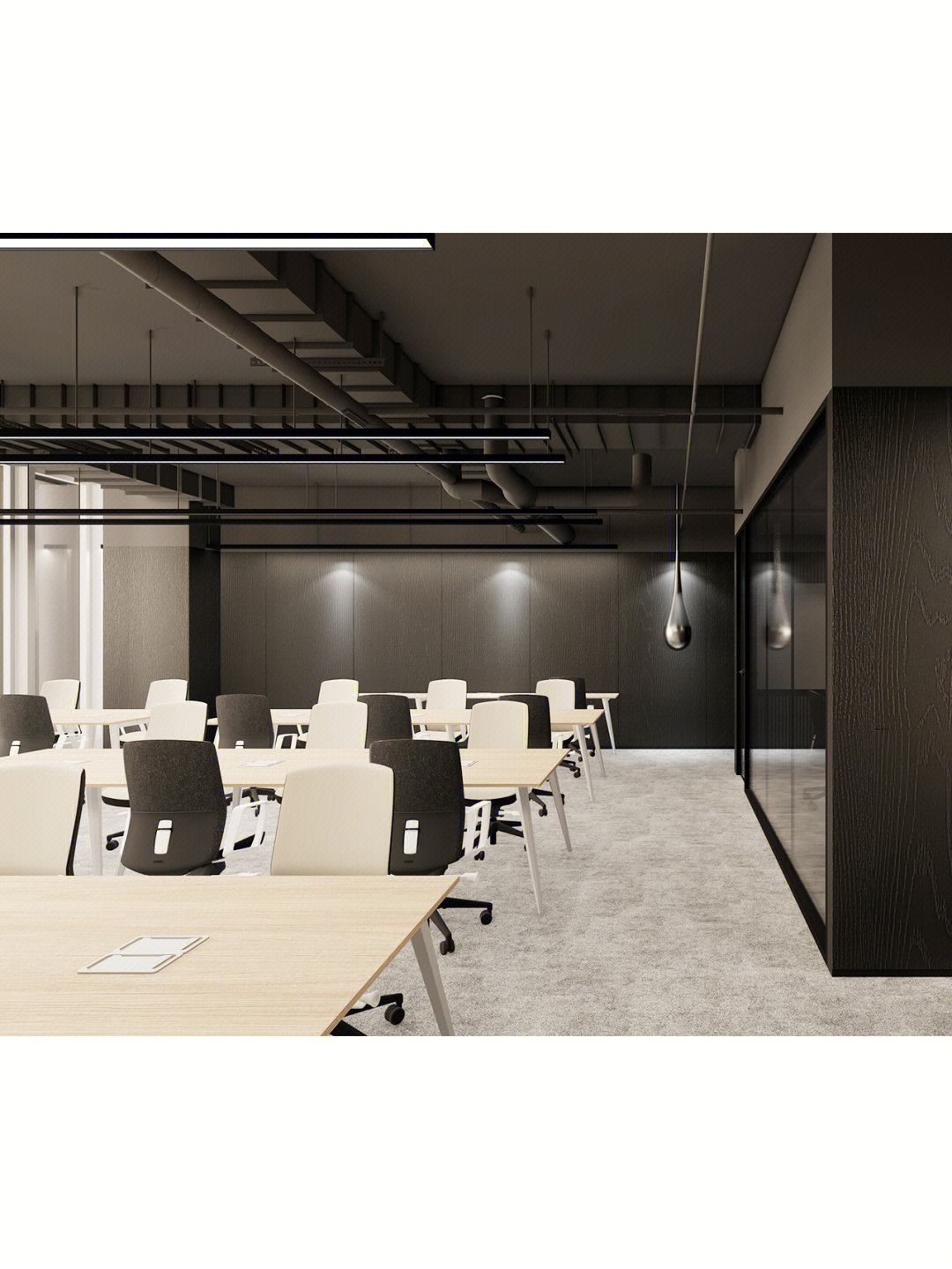 空间设置开放工位区,以满足新增灵活工位需求,创造可以延展的可持续空间。在流线上将办公区和公共区进行适当分离,以满足用户对私密性的需求。