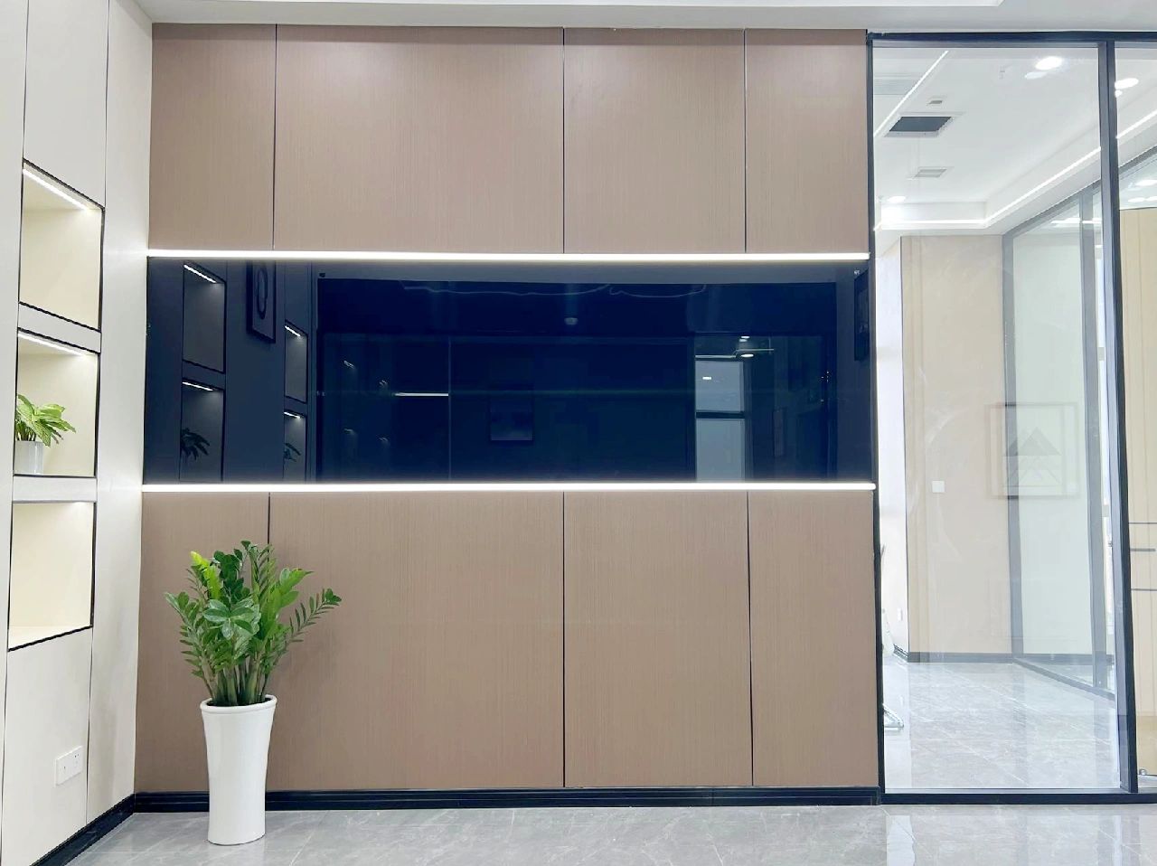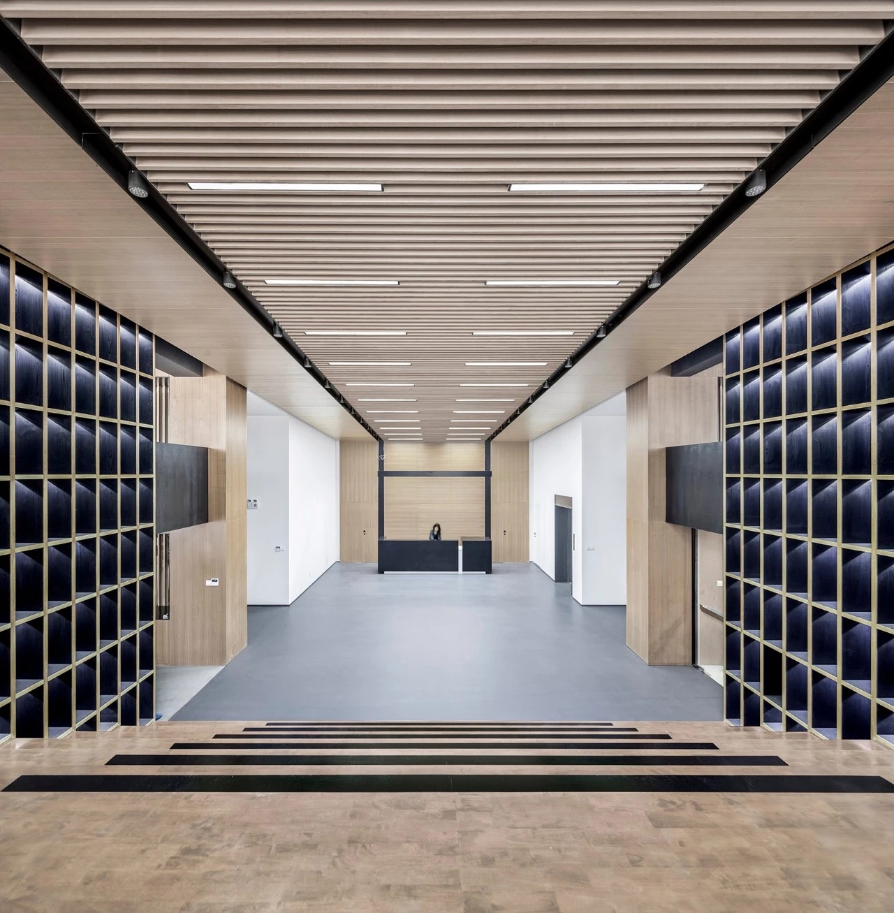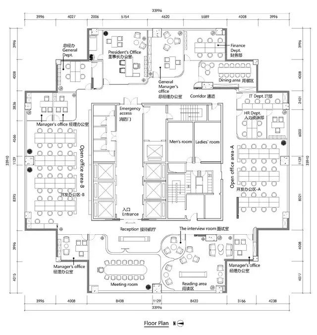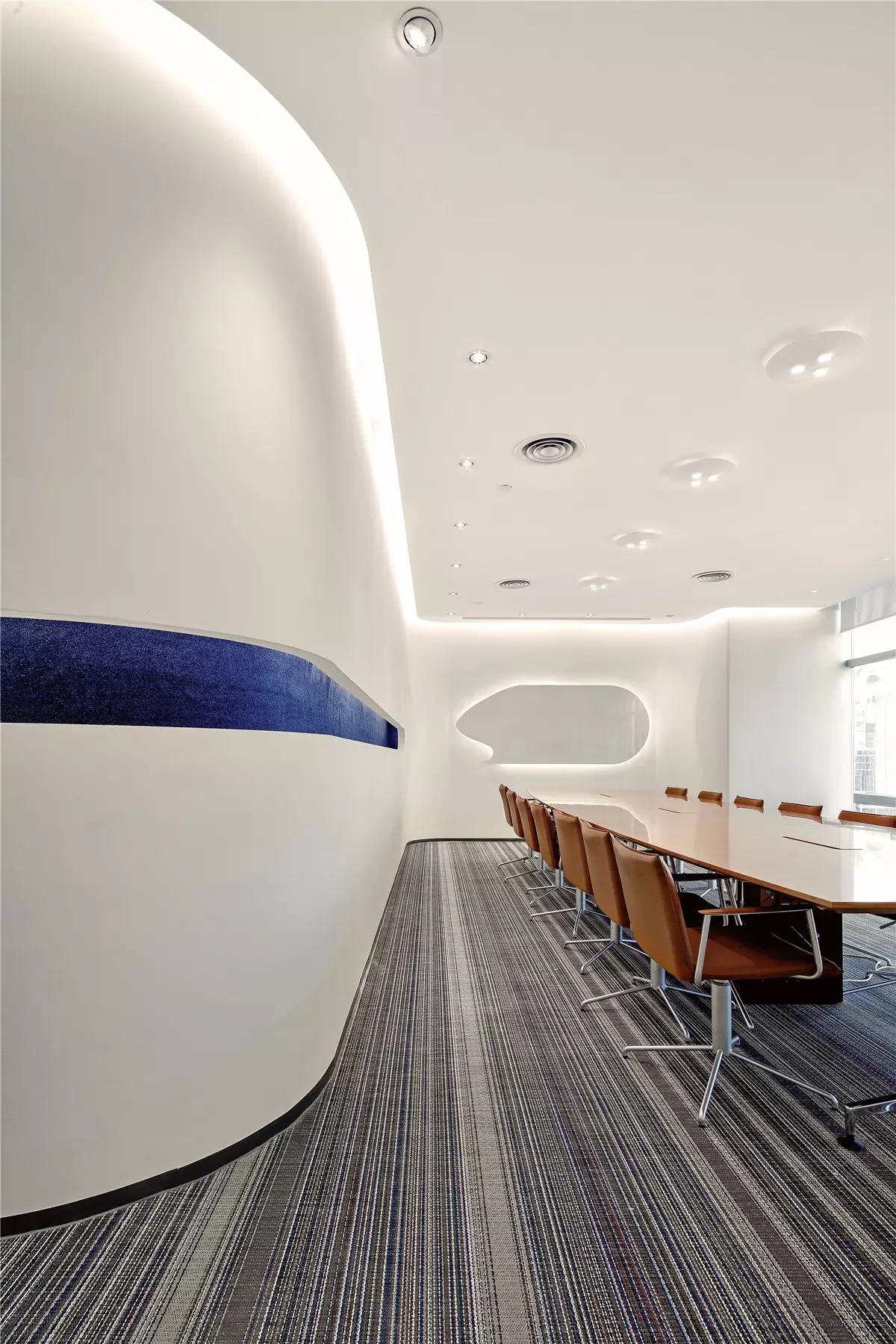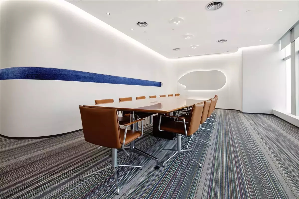 源于建筑结构的特有性,平面布局中我们以建筑塔楼为中心,设置了游走全公司最短距离的回形通道,简单的动线使空间利用率最大化,更有利于各部门的协同工作。回形走道作为主要通道的同时,部分墙面还展示了企业产品所用的皮质物料。