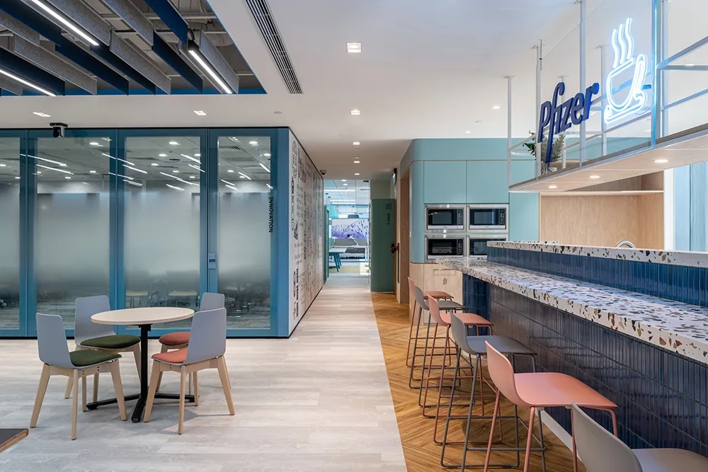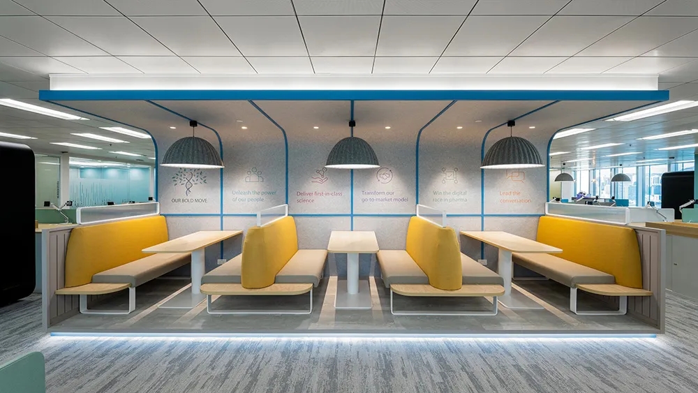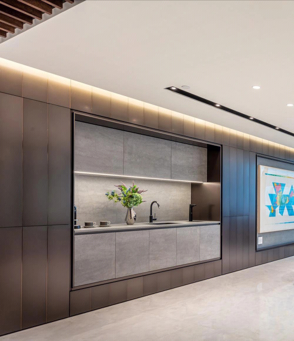 接待区往往是给客户留下第一深刻印象的关键区域,除了它应具备的热情好客的氛围,还是传达创新与活力文化、建立强大品牌印象的地方。为了创建一个积极向上的工作环境,在一些区域的墙面上引用了一些哲学名言,展示公司的价值观,也不断激励员工斗志。丰富的场景设计,优化并增强了多样化的工作方式。各种家具形式构建的工作站,让员工自主选择喜爱的工作方式;电话亭、车厢座和安静的房间为工作场所提供了更多的私密与专注空间选择;而协作空间则以无比灵活的设计支持创新交流、培育社区意识、增强凝聚力。