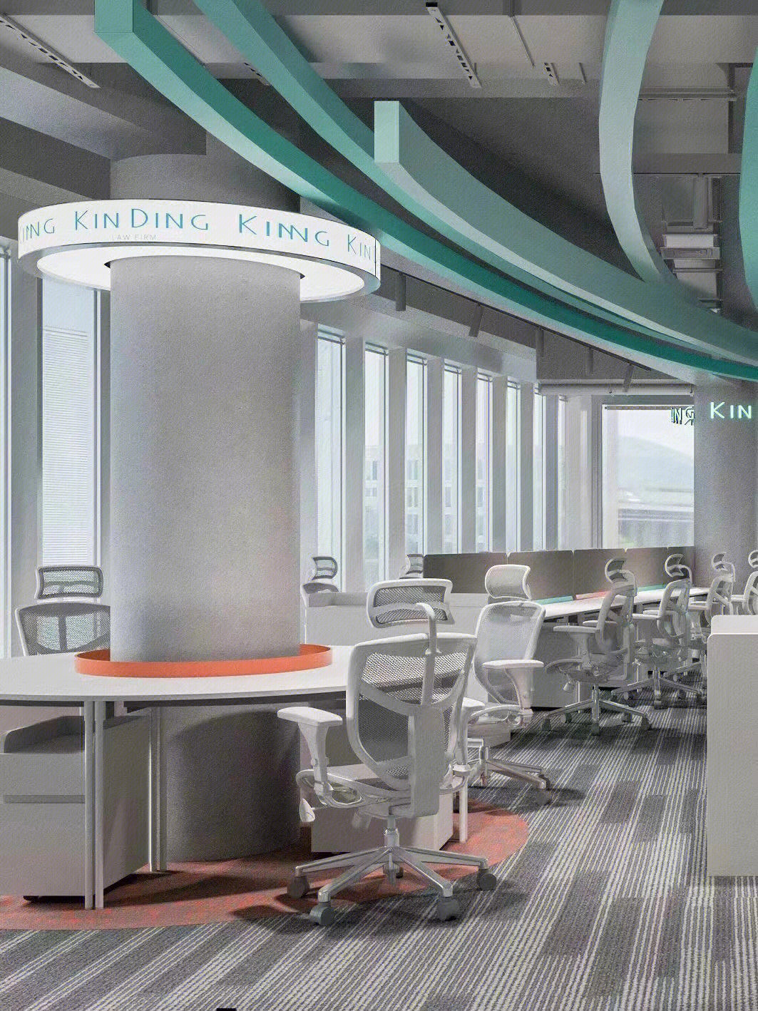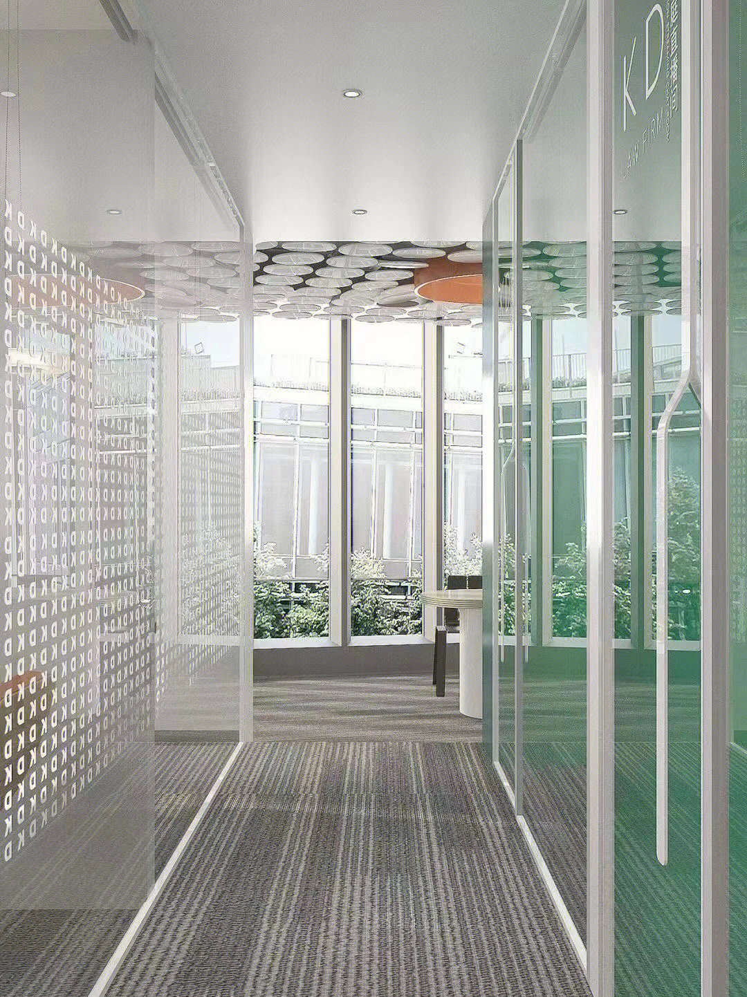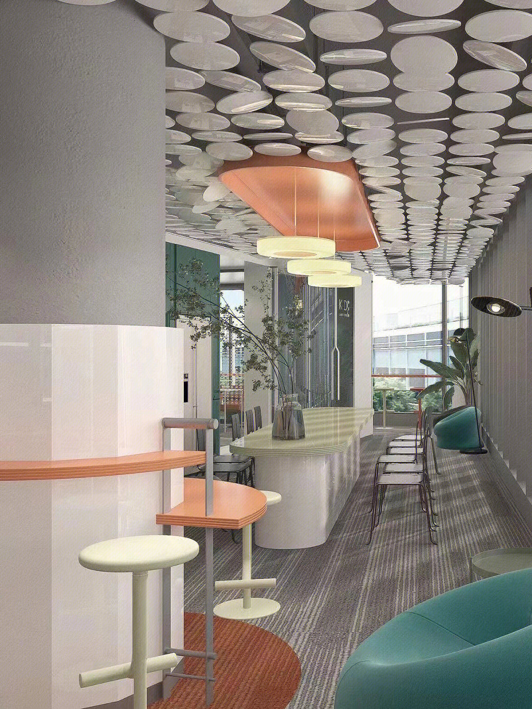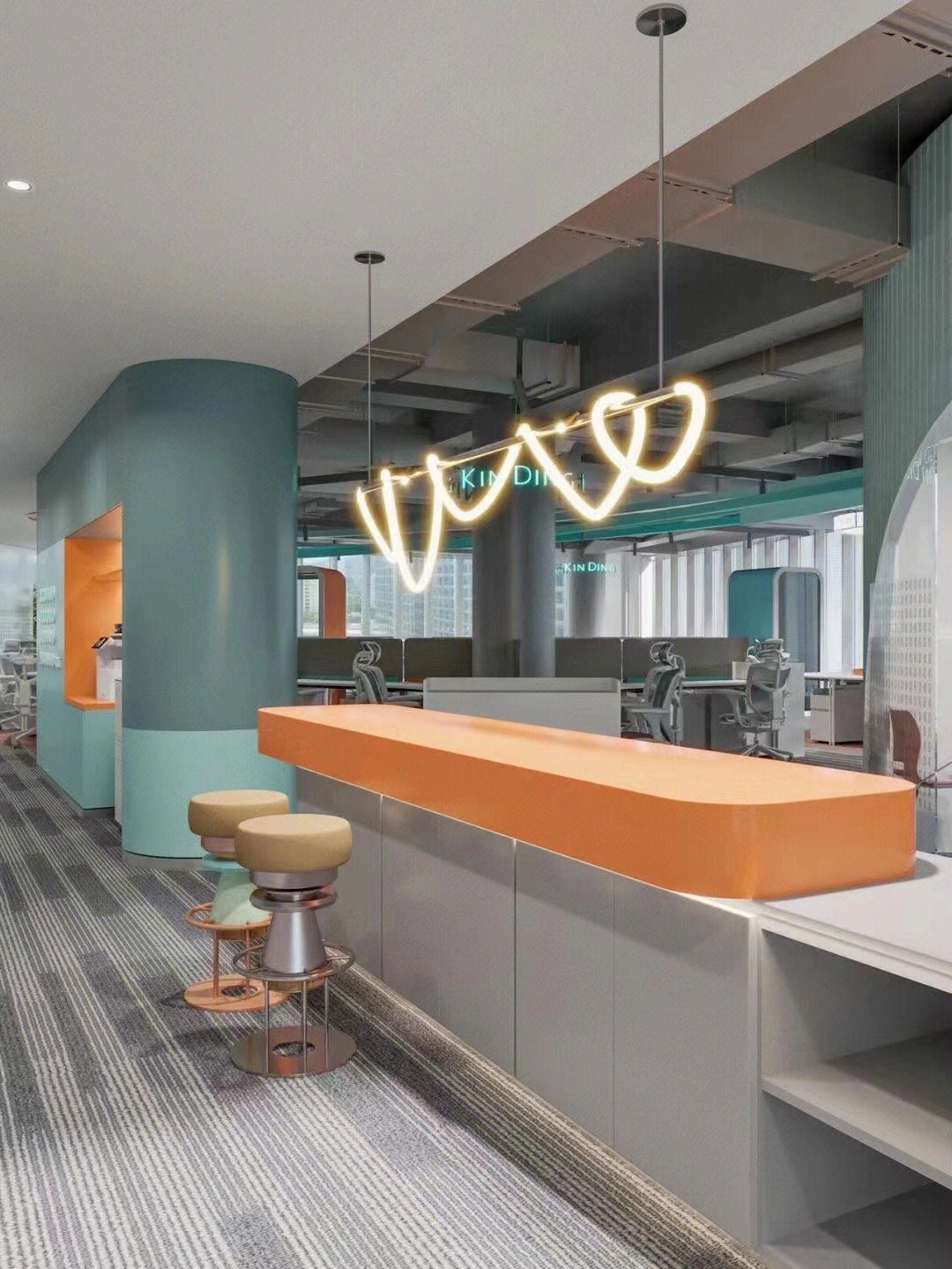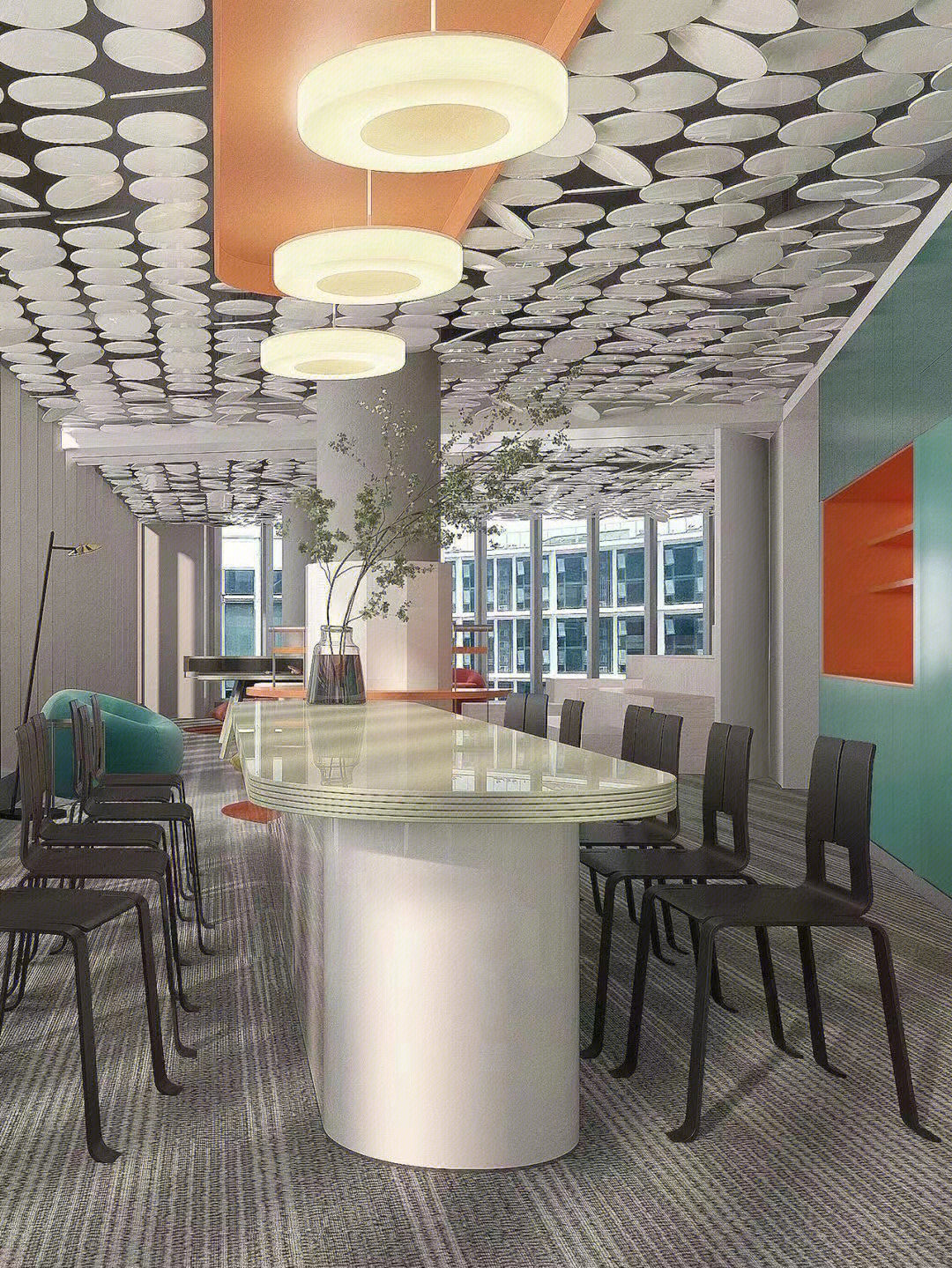 该办公室利用空间来传达年轻、进步和不断发展的公司文化。绿色和自然元素贯穿始终,与透明的材质并置,为办公室营造出开放、连接的感觉,并允许充足的自然光。极简主义的调色板和鼓舞人心的图形激发了创造力并展示了 对创新的承诺。