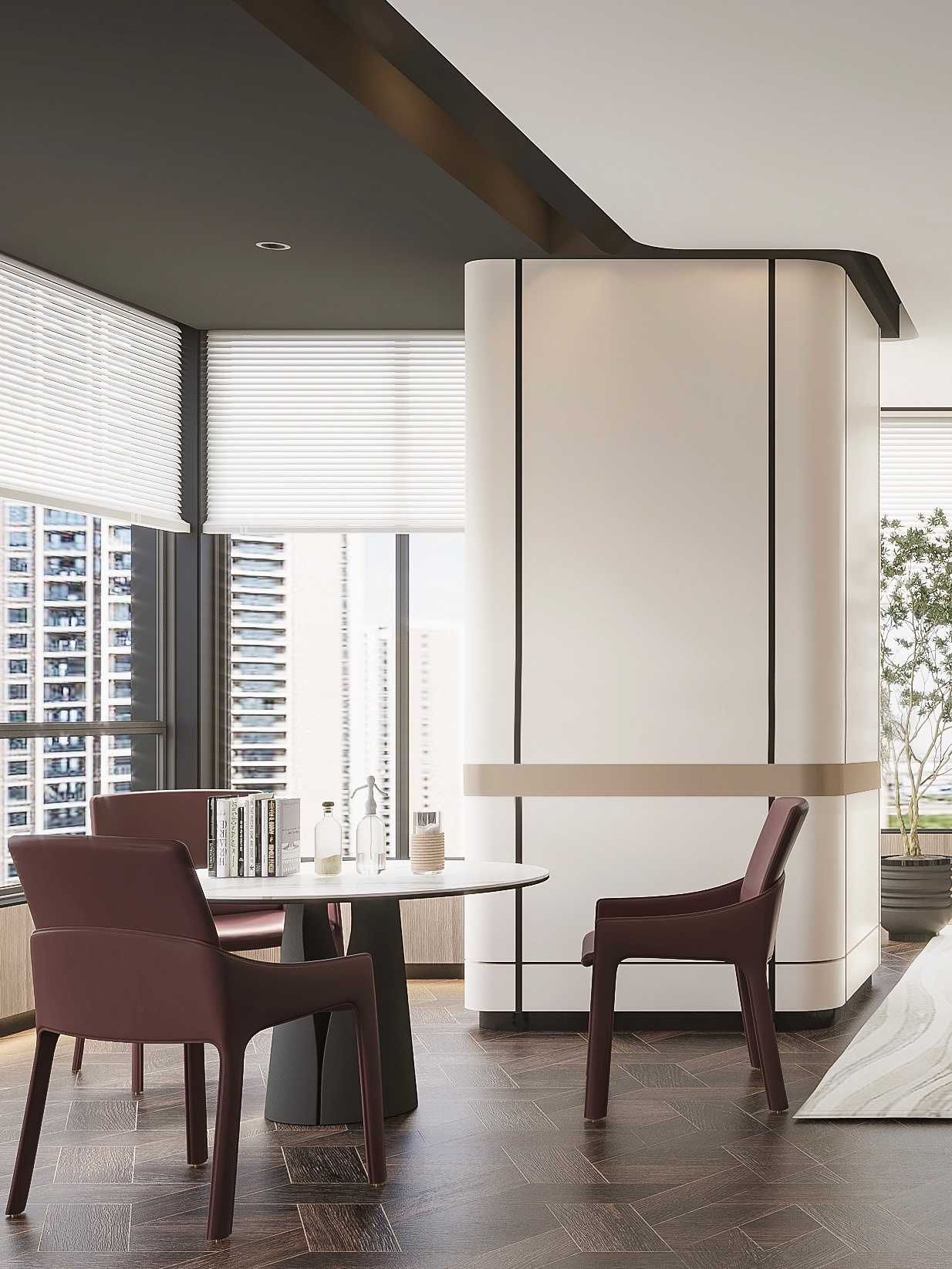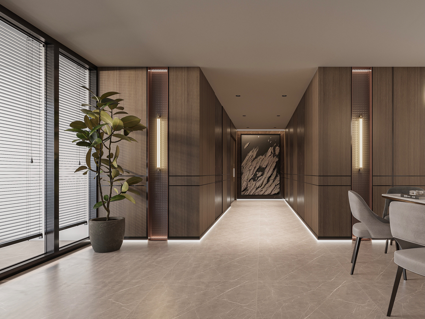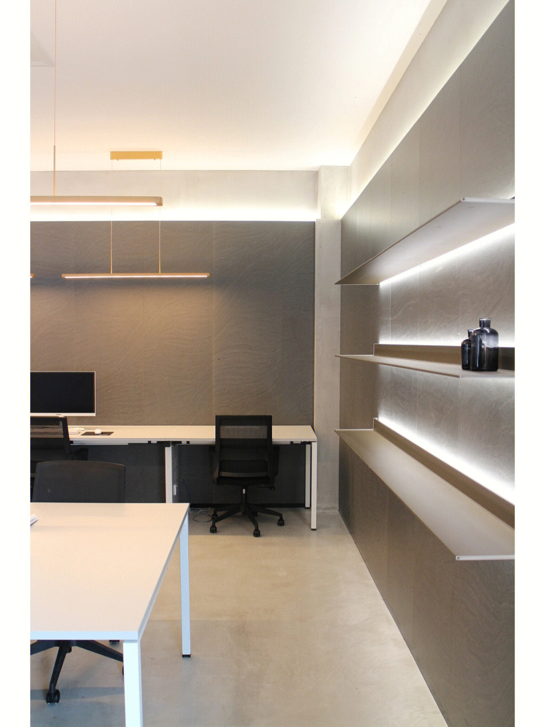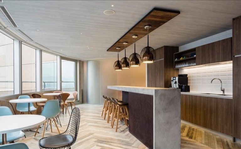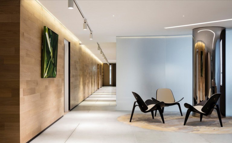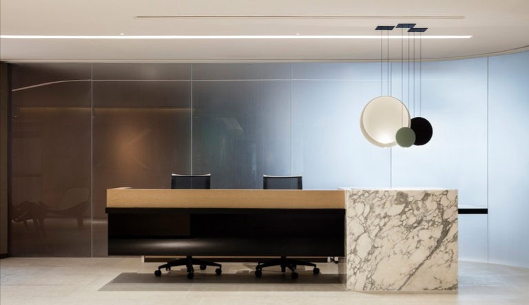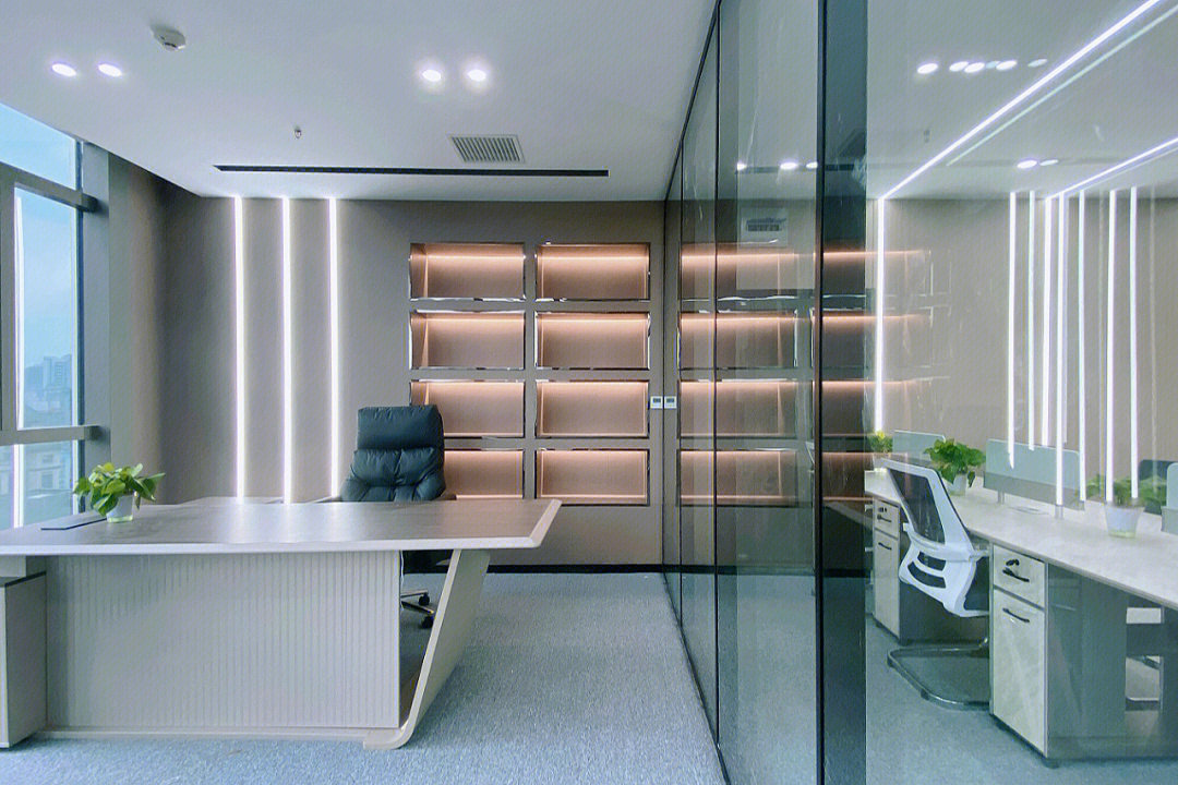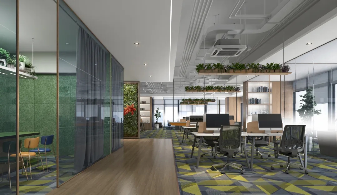 该办公室利用空间来传达年轻、进步和不断发展的公司文化。绿色和自然元素贯穿始终,与透明的材质并置,为办公室营造出开放、连接的感觉,并允许充足的自然光。极简主义的调色板和鼓舞人心的图形激发了创造力并展示了 对创新的承诺。