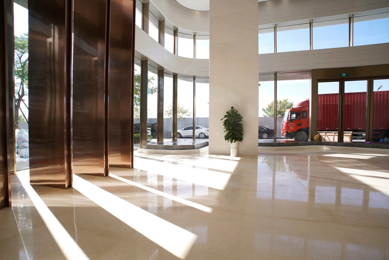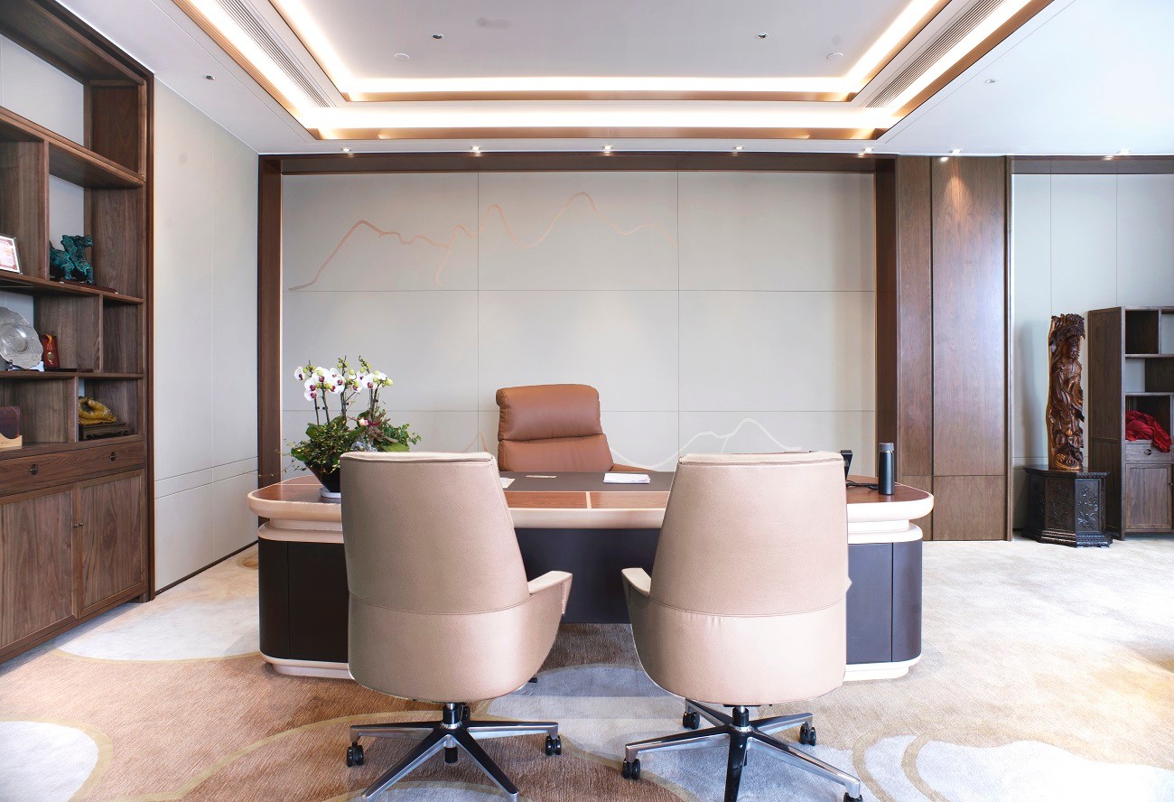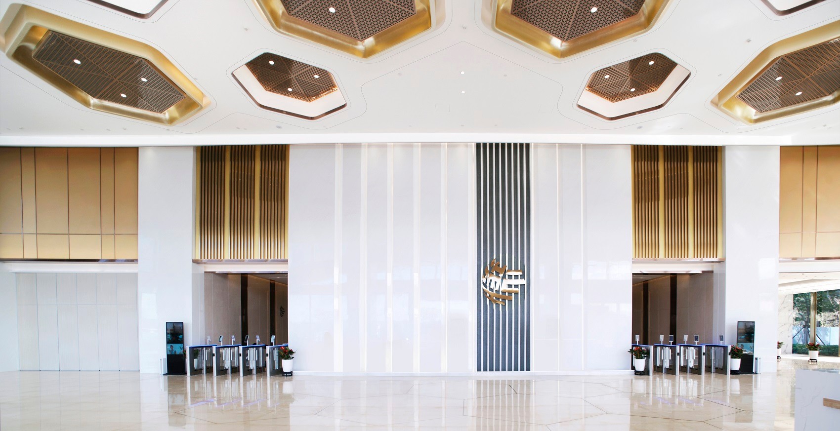 设计师在该项目中融合了中国传统文化、广州本土文化和华美企业文化的设计元素,以“上善若水,厚德载物”的水文化为核心,得出了一个设计理念!“三川银河通六脉,九珠连环纳四方。脚踏祥云生瑞气,万物化作金镶玉”设计师运用六脉通衢的设计概念,表达了坐落在广州这个风水宝地的华美总部的美好愿景,也展现了珠江水养育的广州人和广州企业未来可期!历时大半年的设计与大半年的施工,华美国际总部大楼才终于完工落地展现在世人面前