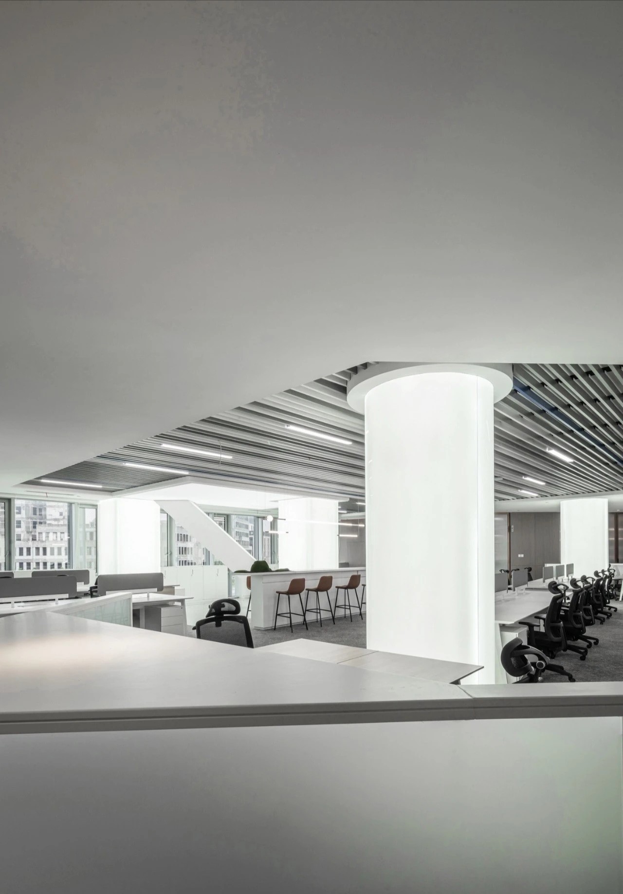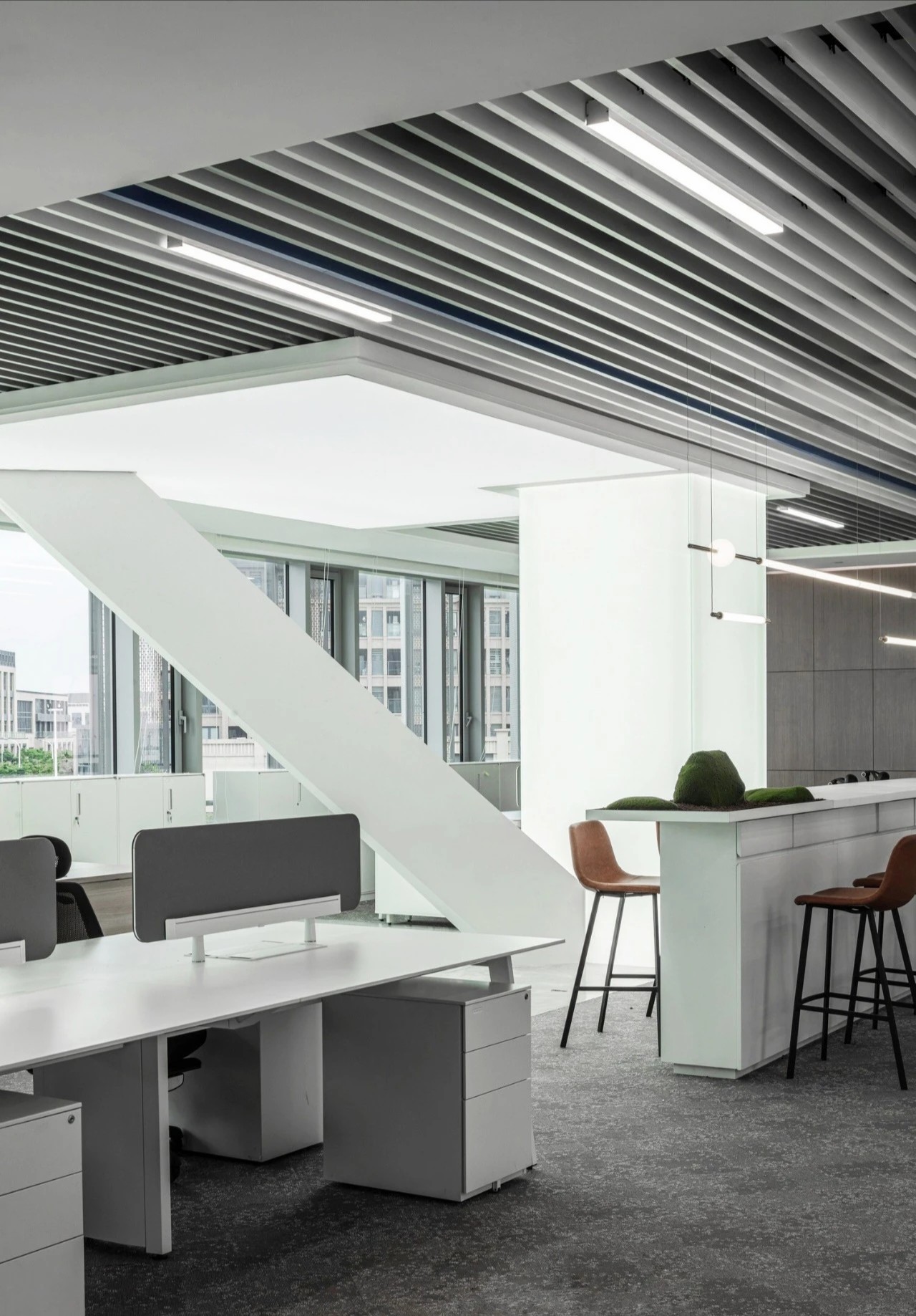 办公区,企业之文化。从空间的形态、构成以及功能布局上,做了更深层次的延展。圆弧的柔和、优美,从感性与理性的角度上,将空间情感表现得深入细腻,刚柔并济,从而使灵动的艺术价值更得以完美表达。