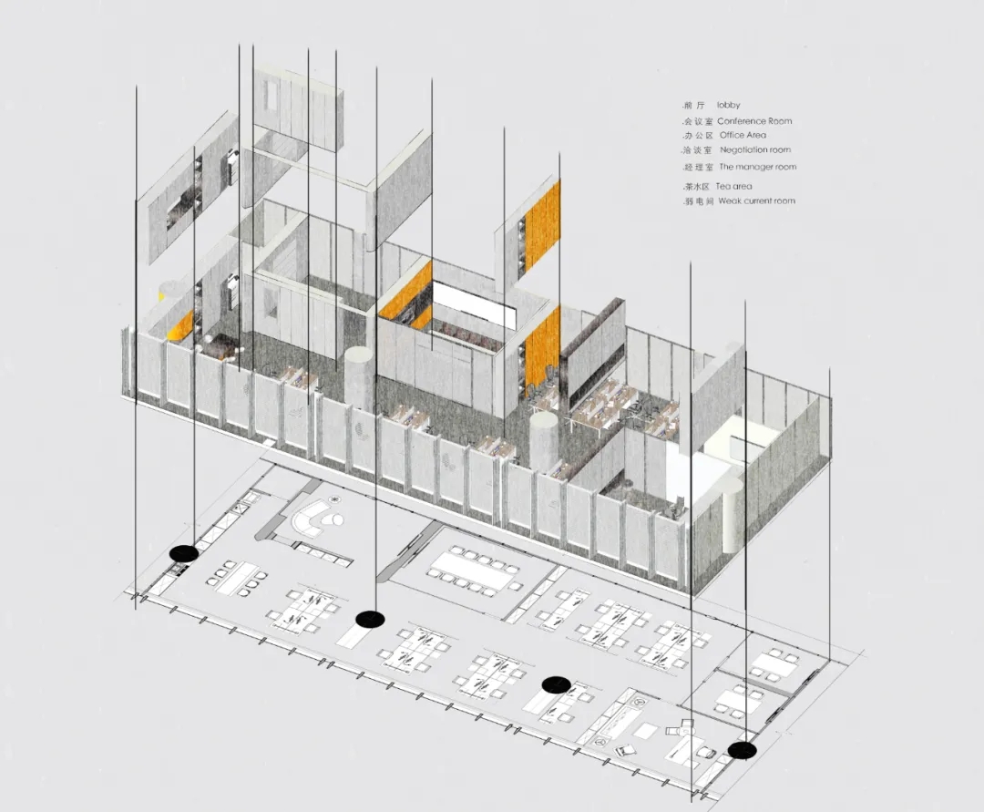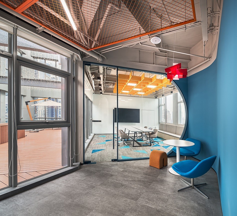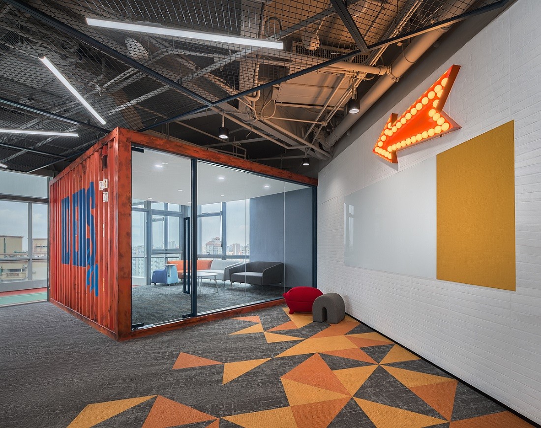 点触科技专注于游戏的开发,因此在空间的设计上更注重创意、工作和休闲的多元结合。“无限之塔”的设计灵感就像创作一个视频游戏一样,创造了一个塔楼的概念,每一层楼都象征着公司团队的一段新征程。并且在塔中,独立及合作型的工作区域化身为看台、头脑风暴集装箱、龙笼等独特的创意。空间的配色方案源于点触科技工作环境中所呈现的趣味化氛围,烘托出设计师想要表达的趣味性创意空间。以使员工和来访的宾客都感到身处其中的每一天及每一步,都是“无限之塔”中新征程的一部分。