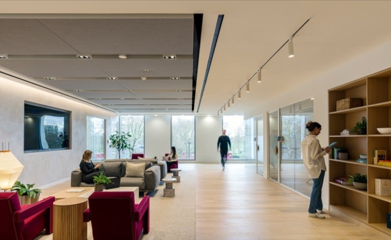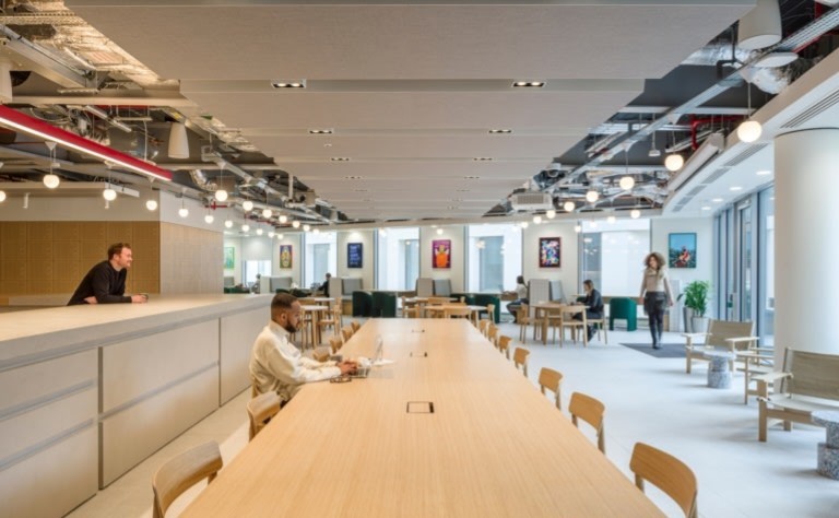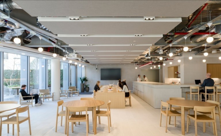 具有协作性的办公空间,可容纳大量混合虚拟和面对面的会议。但在办公环境中,选择多样性和可访问性是围绕使用它的人的需求而设计的,具有现代家居的干净温暖。公共中心是办公室的文化中心。它为人们提供了聚会,联系,社交,分享和庆祝以及工作的空间,可以灵活地举办活动,市政厅和庆祝活动,并在一天中过渡其使用。从茶点酒吧,由光滑粗糙的浇铸混凝土和橡木组成,到“家庭餐桌”,也有橡木到展位座位的混合座位。该中心的定位是最大化与露台的连接