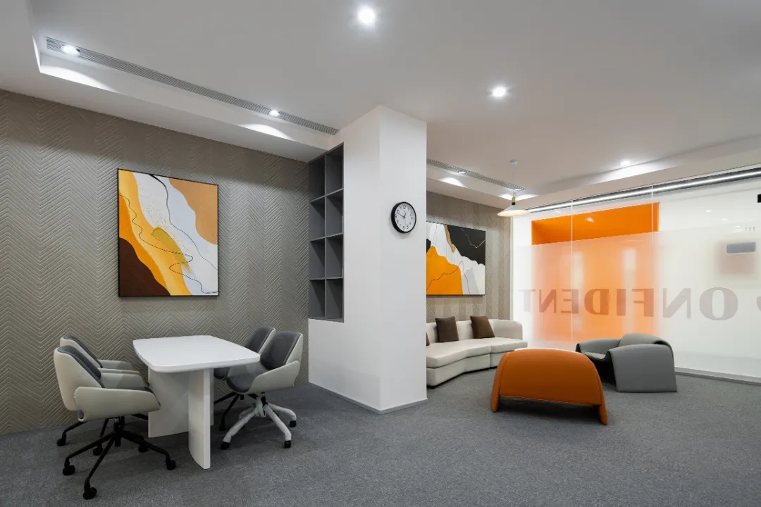 色彩与空间的纵深外部的视觉感官体验,与内部的品牌内核本质,在空间中产生了微妙连接,在空间中得到创意重构,通过提取与品牌产品形态相关的,原始形式置入空间,并且设计团队使用Mclaren那极具代表的橘,色贯穿与整个设计空间中,视觉对撞 产生戏剧性的空间体验。