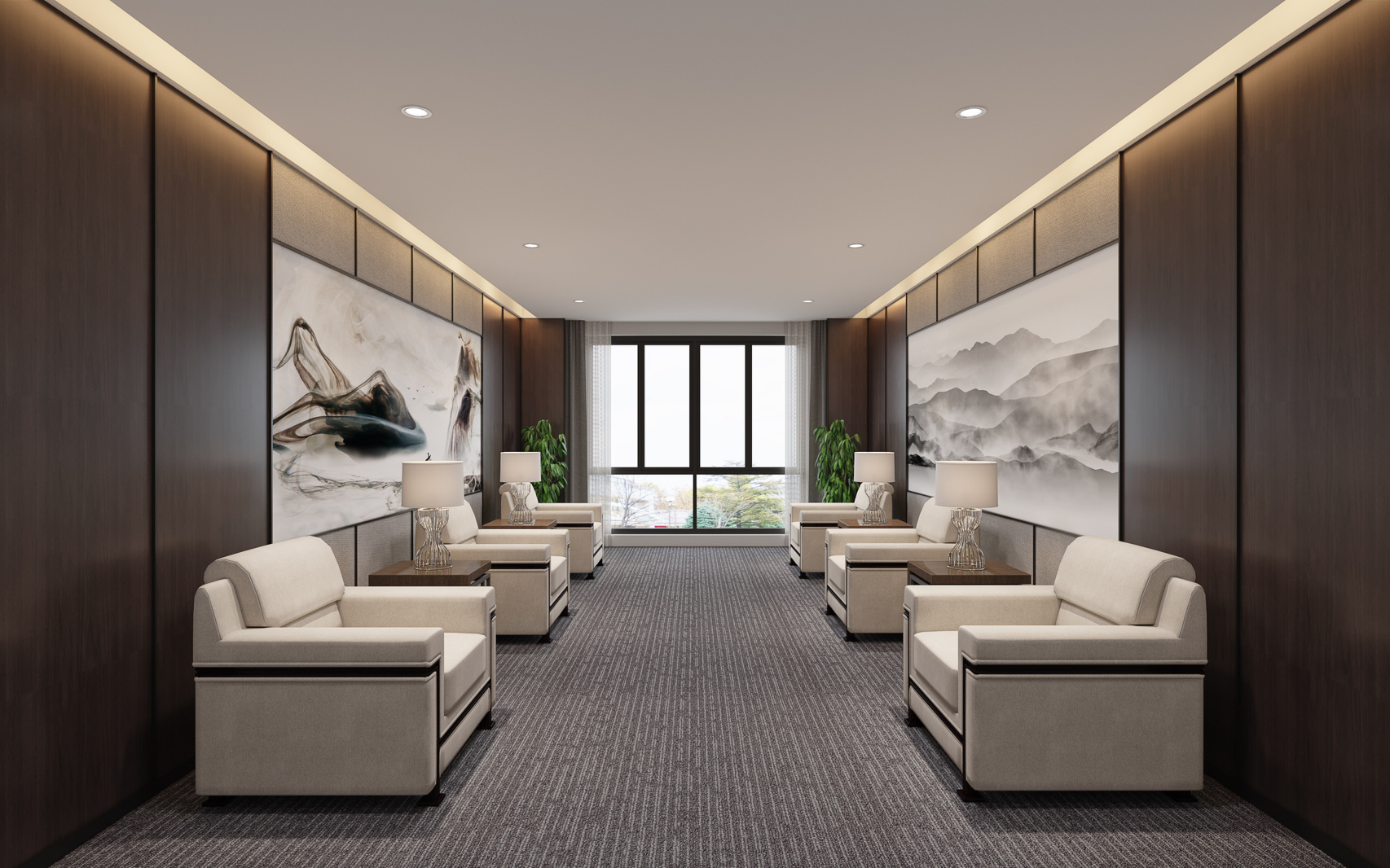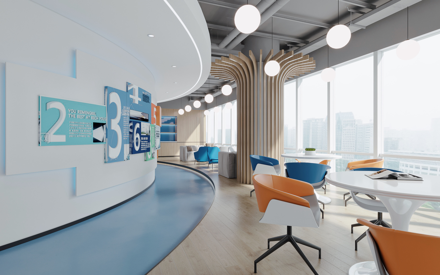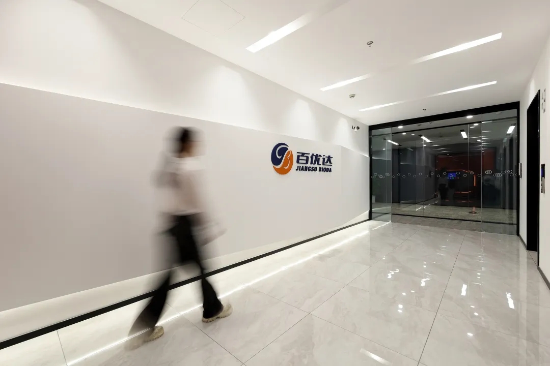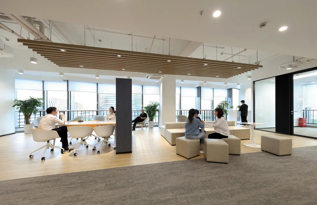 当访客走出电梯厅,开敞明亮的接待空间和logo墙映入眼帘,接待空间最里边是一间接待室用于访客等待和面试,这块空间设计师用创新的手法让整个空间像一只手一样把人才招揽进来,以表达百优达对人才的重视,再通过以人为本的办公环境,提升员工满意感,助力吸引和留住人才。进入办公层迎面是一间会客室,会客室用于来访客户接待,及百优达荣誉展示。除了传统的会议室布局,还用了大量的吸音材料,大大缩短了会议交谈的声音传递,为整个空间赋予独一无二的声学体验。