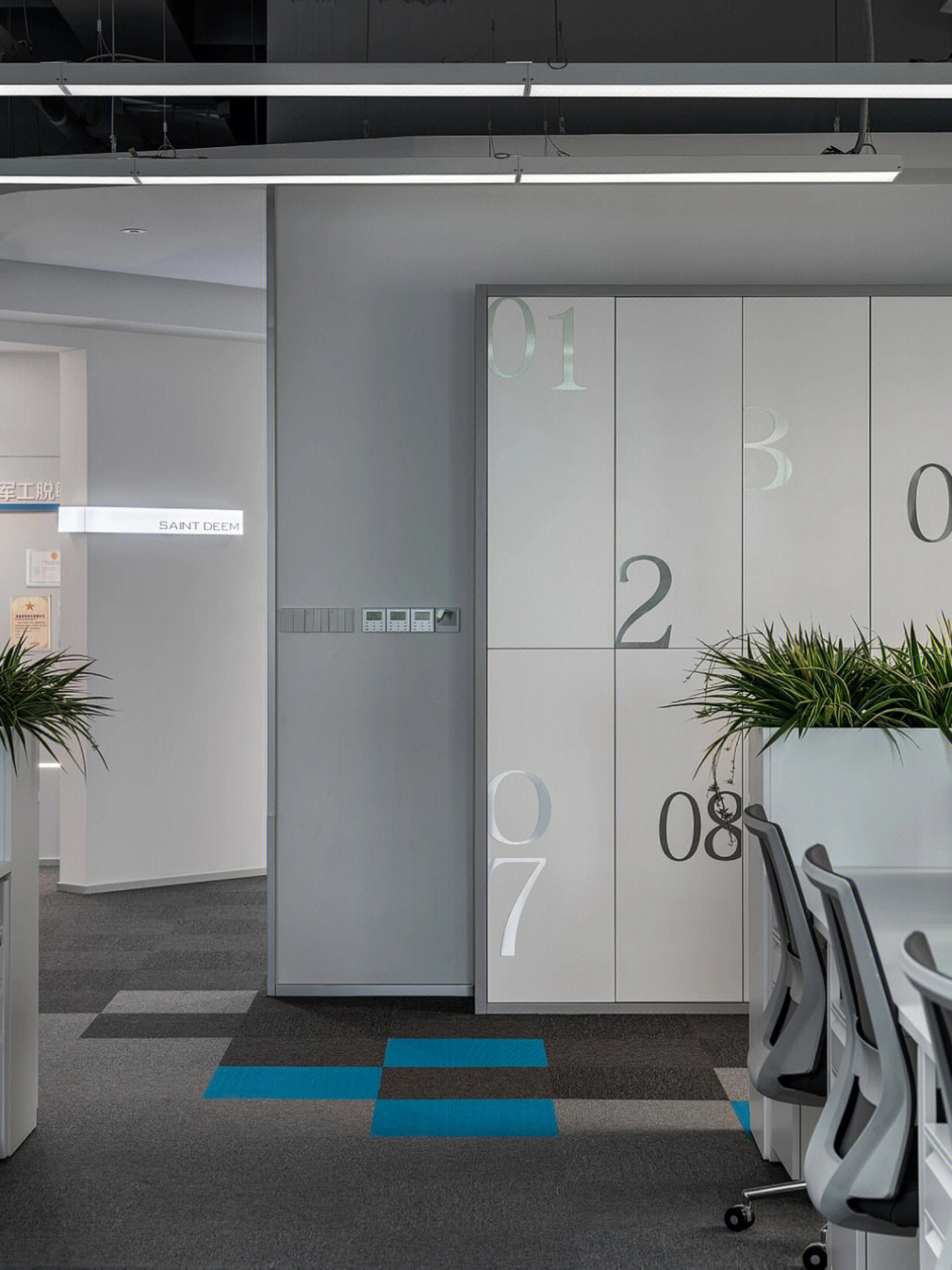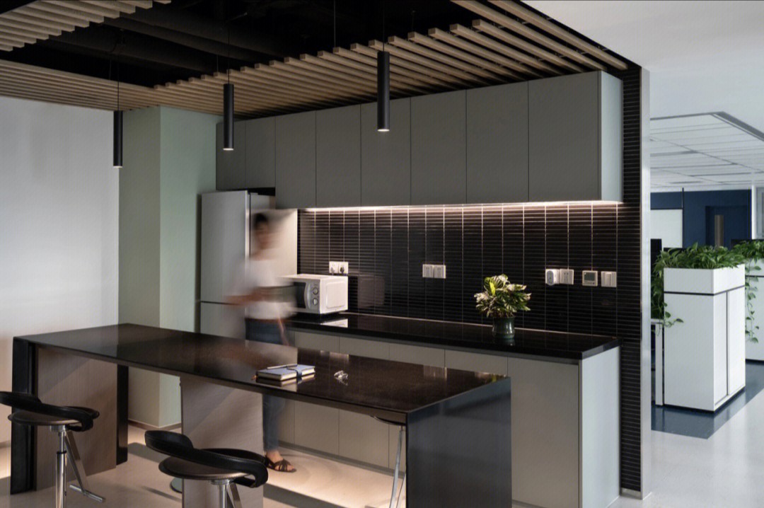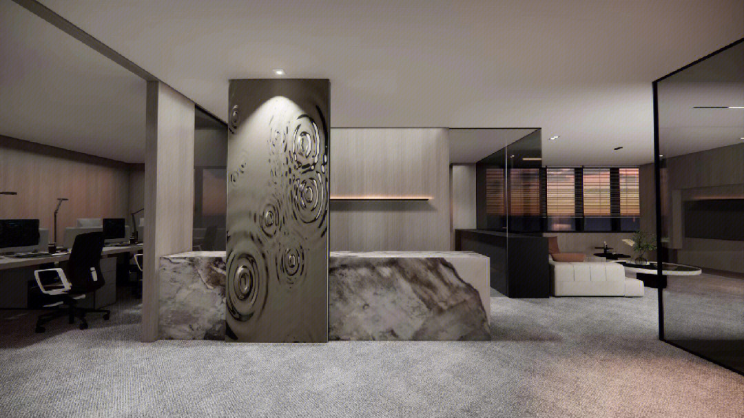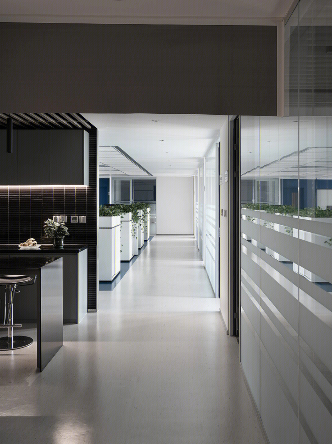 在空间的构成上,通过对称 错位 穿插 悬空等设计手法,实现现代语境中办公环境的视觉效果,空间强调品质生活体验,扩大了公共开放区域,提高了生活化的配置,通过生活品质和艺术修养的连接,让进入新环境的人们,能从中感受到愉悦感,从入口走进办公空间,钢板 涂料 瓷砖这些不同肌理的材质,于不同时段的光线中,线条与块面的明暗变化尤为强烈