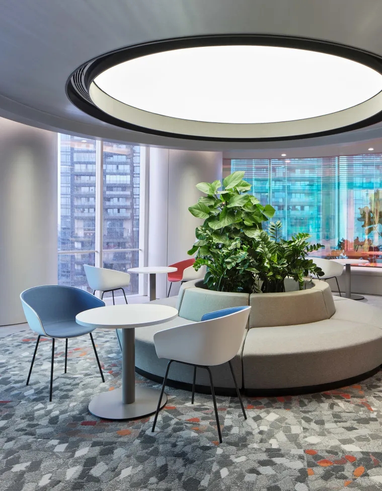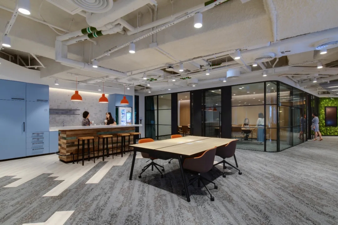 设计理念是将该项目打造为一个“心仪之所”,同时营造热情好客的空间氛围。在设计策略方面强调开放性、连通性和灵活性,同时在视觉上参考了工业化的城市生活主题和风格,整个空间可为渣打银行年轻而又充满活力的员工注入活力和生机。