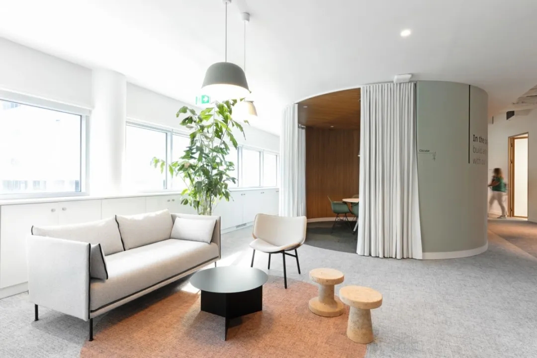 按照公司的内部指导方针,翻新后的工作空间包括三个相辅相成的区域:一个安静的区域,员工在这里全神贯注地进行个人活动;一个动态区域,团队成员可以在其中执行个人操作,但可以与同事互动;和一个协作区域,用户可以在这里非正式地见面以作为一个团队工作。