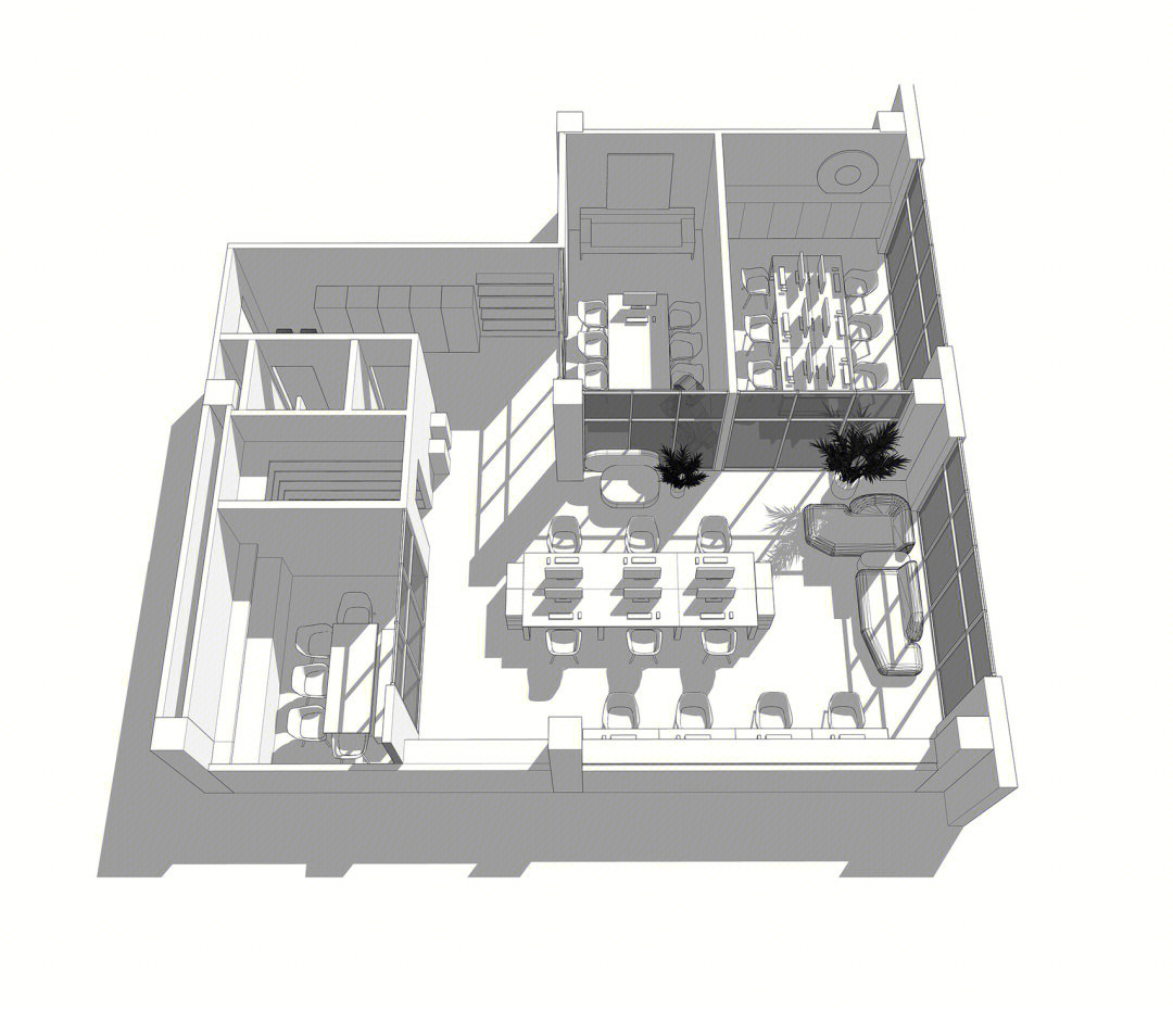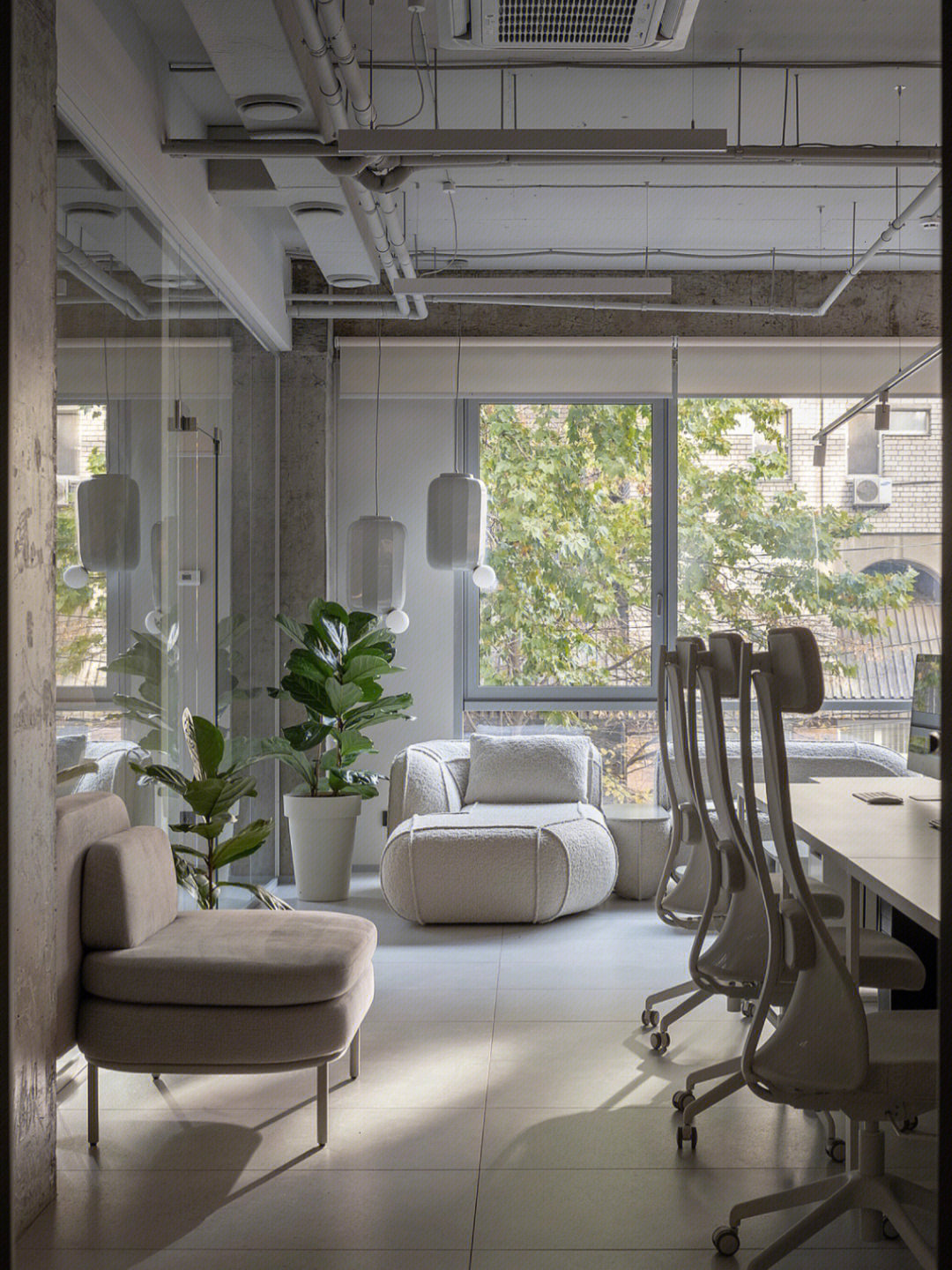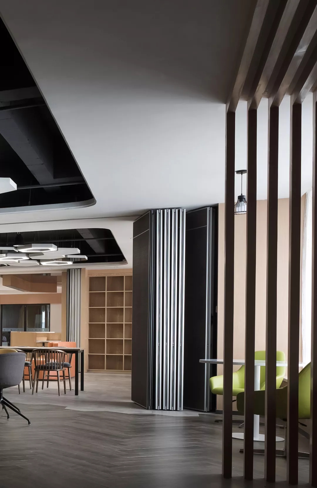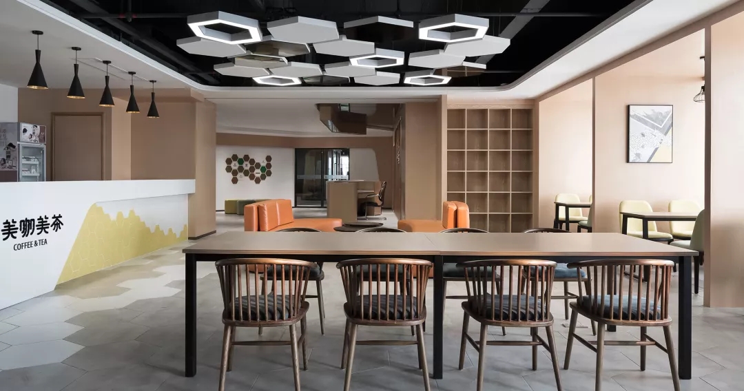 几何构筑,互动多元,自由变换的设计概念,模糊各个工作区域的界限,实现共享、交流、工作的自由切换,从而实现个人工作或团队工作共享共赢的模式。