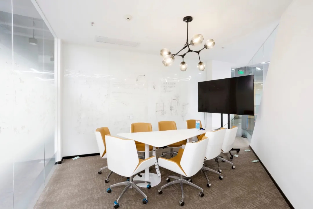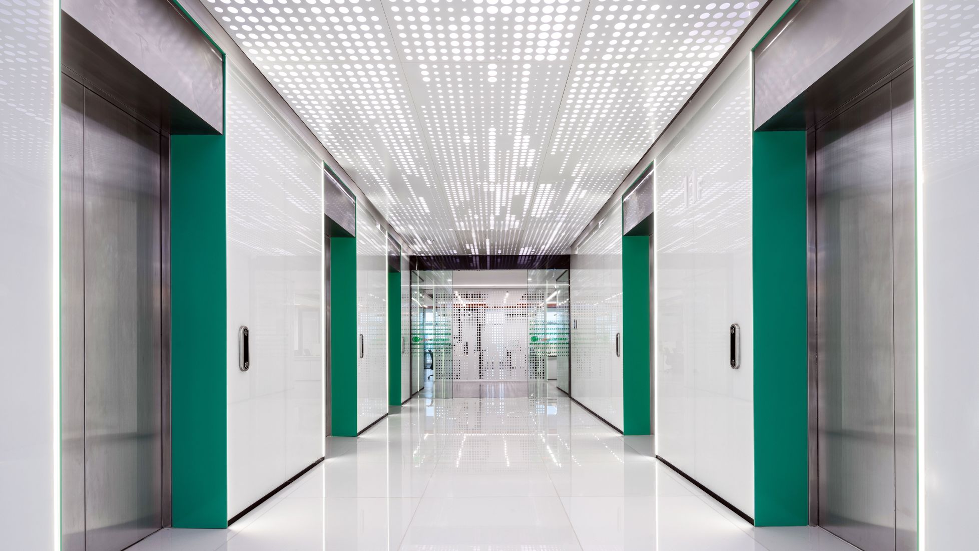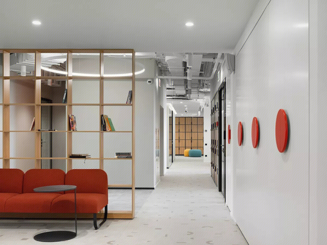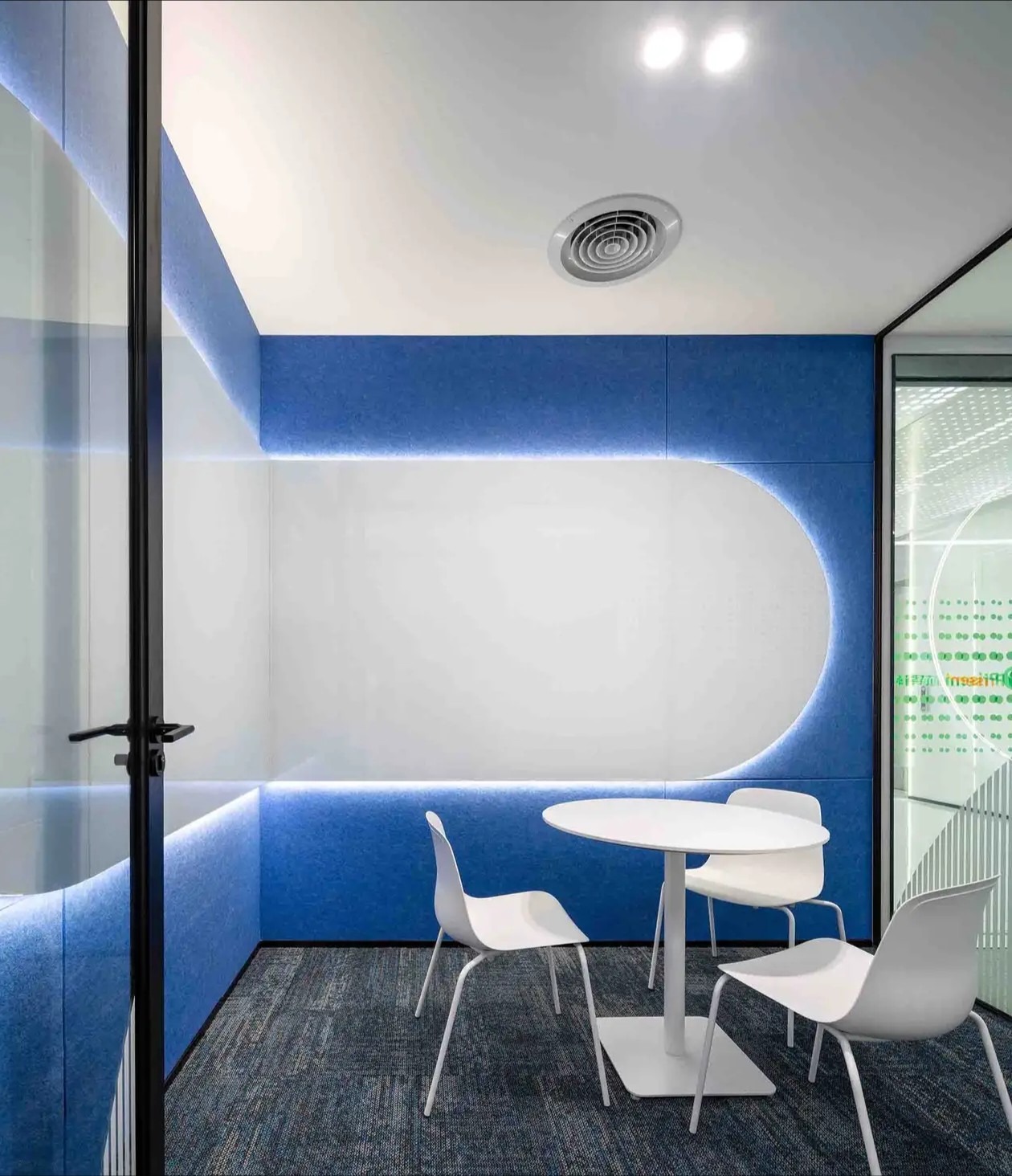 由于公司发展迅速,原来的空间已经太小。这项任务不仅是空间的扩展,还包括研究人与空间环境互动。设计师需要在尊重和反思擎朗的品牌形象的同时,与客户一起,创造一个开放和封闭的混合空间。开放性:没有独立的单人办公室,所有人员都在开场时办公区;独立性:会议室、咖啡吧、科技小院的洽谈区,设置各种空间以鼓励开会或者作为私人空间,让员工可以自由使用。