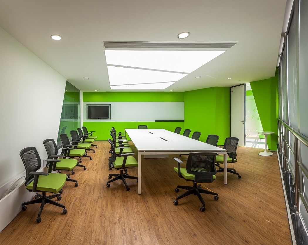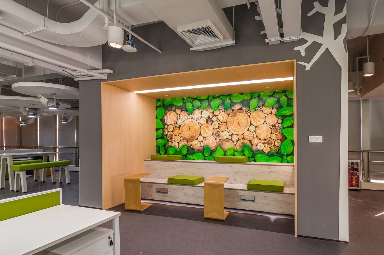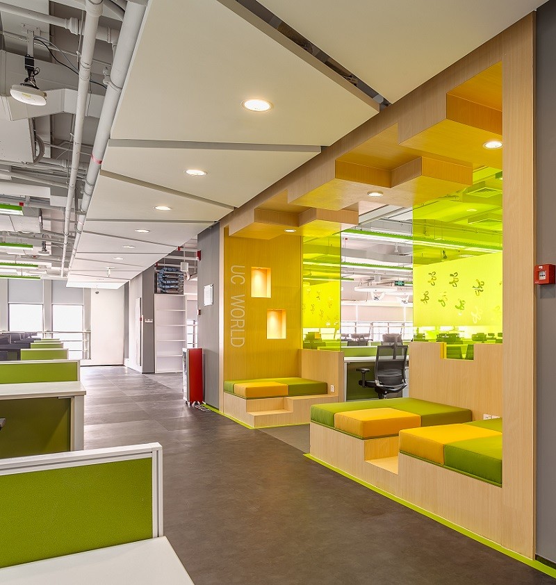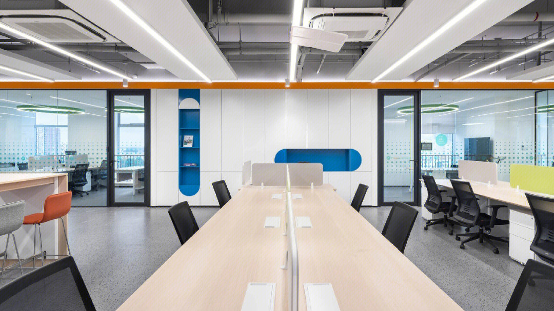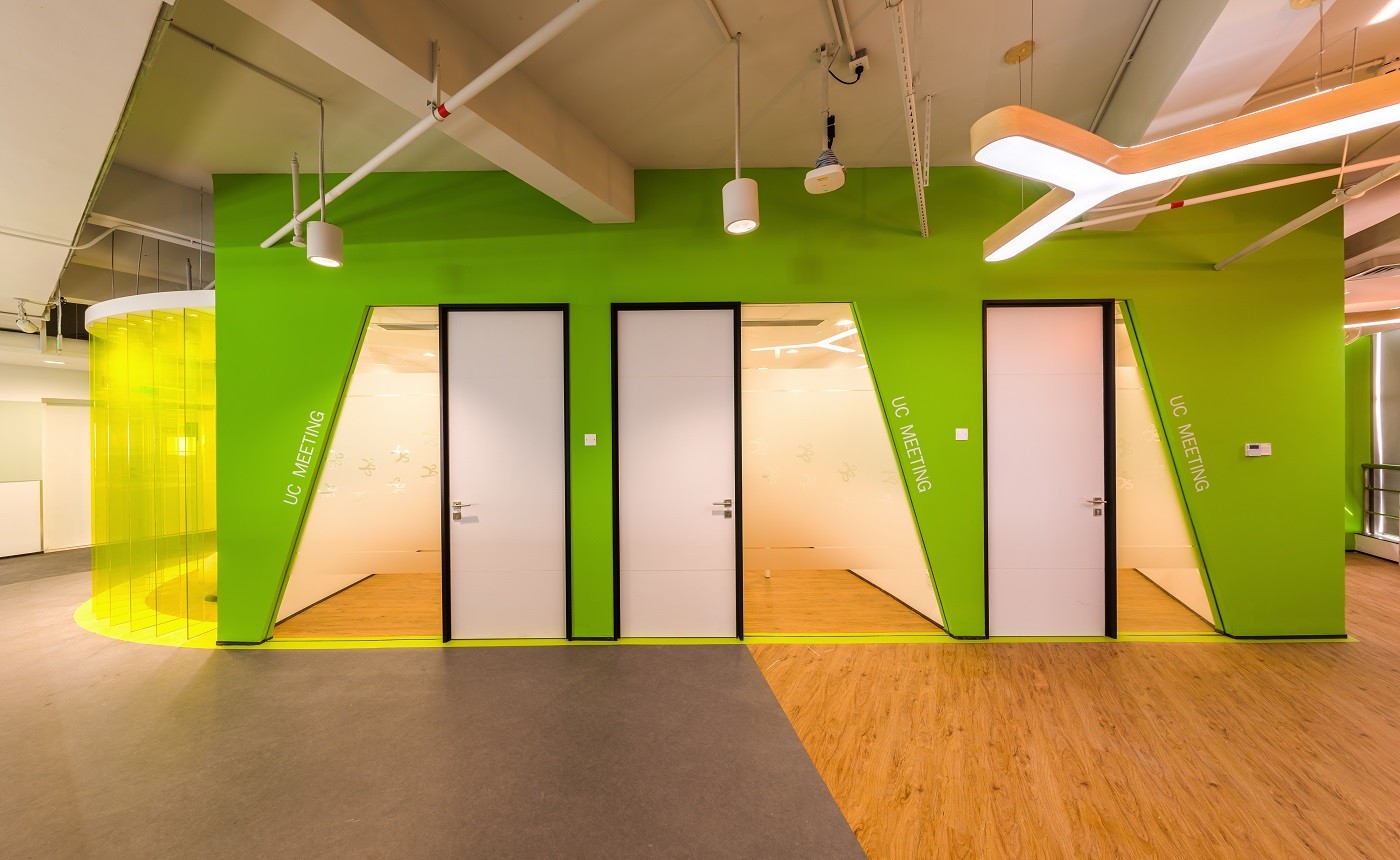 设计师通过醒目却又不过分夸张的颜色和木质面板的折叠形态来反映企业文化的演变。为了使员工能更好地专注工作,我们在开放区域的周边安置了许多电话室和私密工作区。这些灵活的空间既可以支援因机动员工数量增加而带来的多种新工作模式,还能化零为整用作固定团队的开放式办公空间。