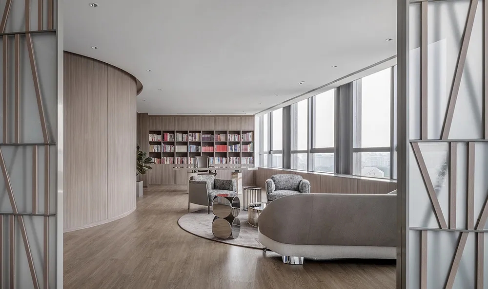 本案的设计以“雅”、“静”、“润”为主题,这种氛围感的表达是希望大家进入空间时,乐于身处其中、并能感受到空间的舒适与遐意。同时本案设计中,针对大厦原有条件对空间设计规划的限制,也都一一化解,巧妙地将不利条件转变为空间中的亮点。