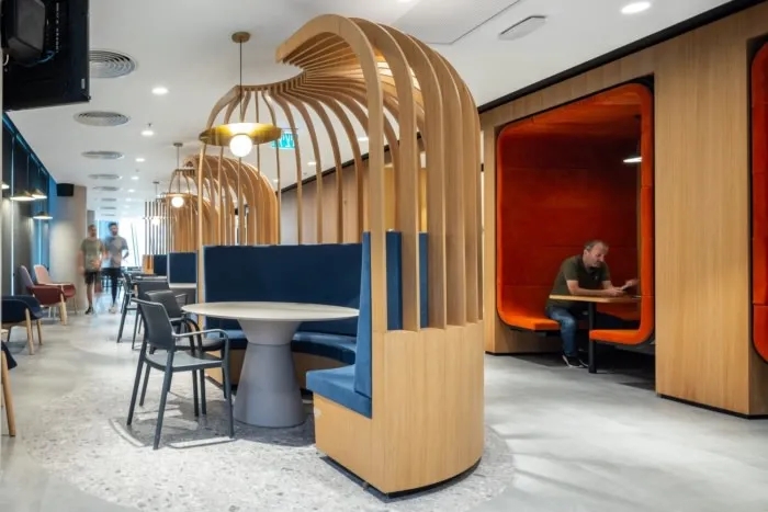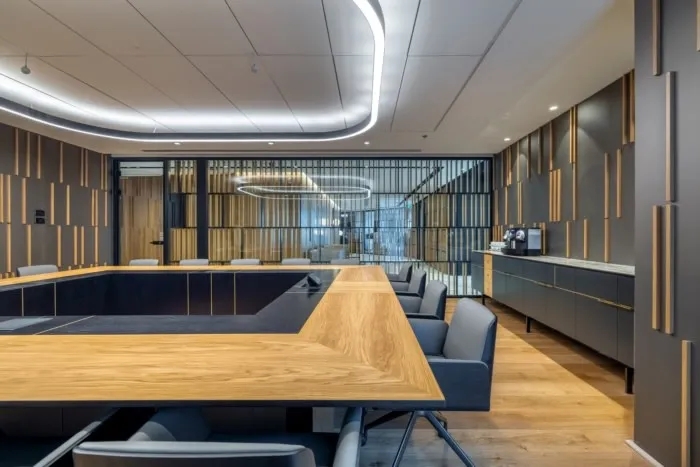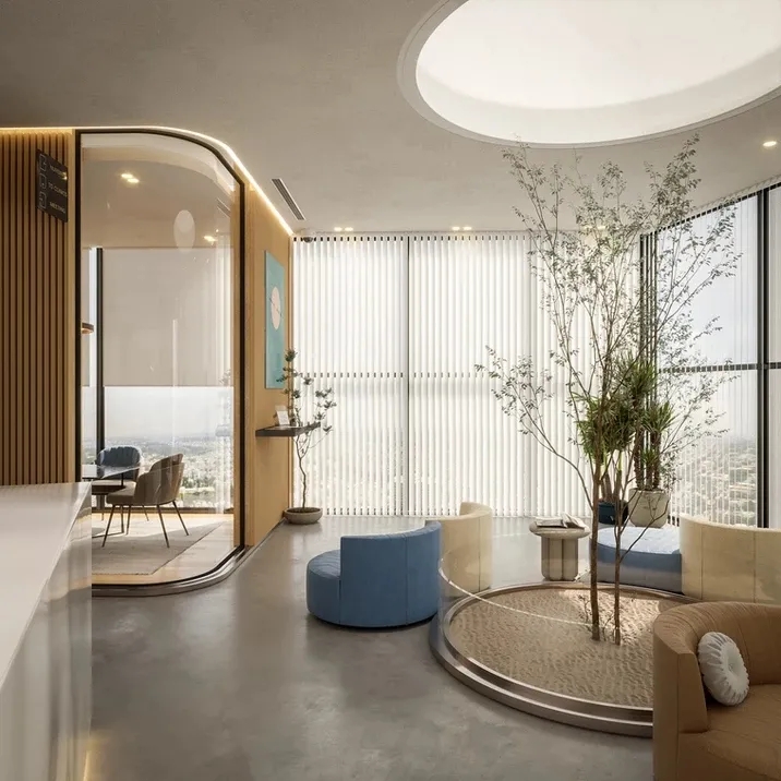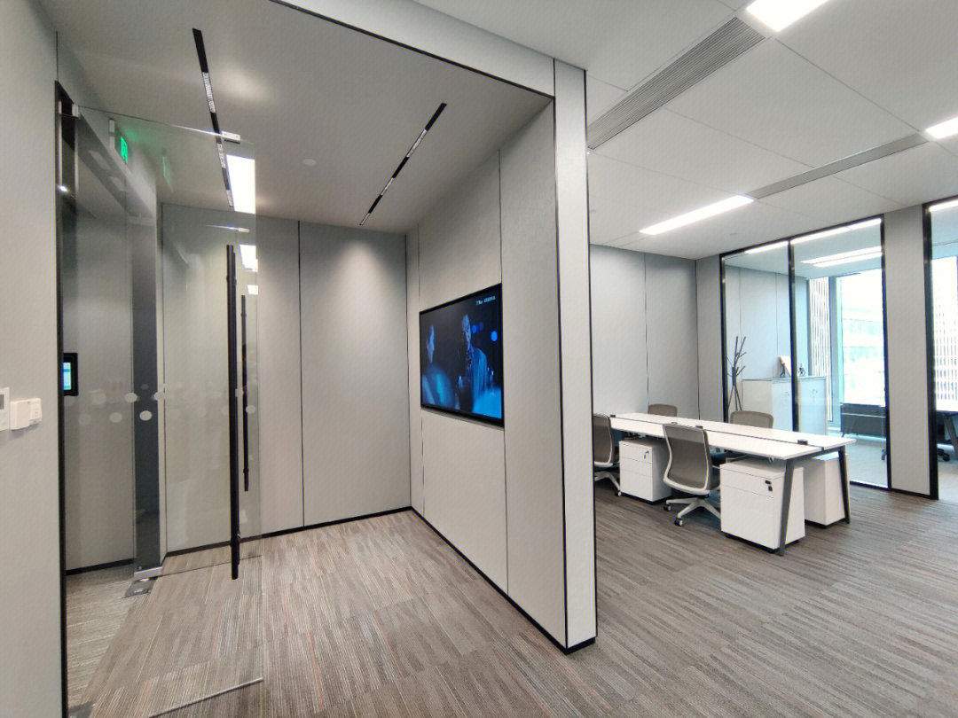 银星智能办公室外观空间的材质感展现科技办公室的神秘与商务,内在的智能化系统不仅为银星智能日常便利办公提供无限可能,还延续了银星智能“让人类分享智能科技的便利”的办公理念,从内到外地打造一个高级的科技新空间。
